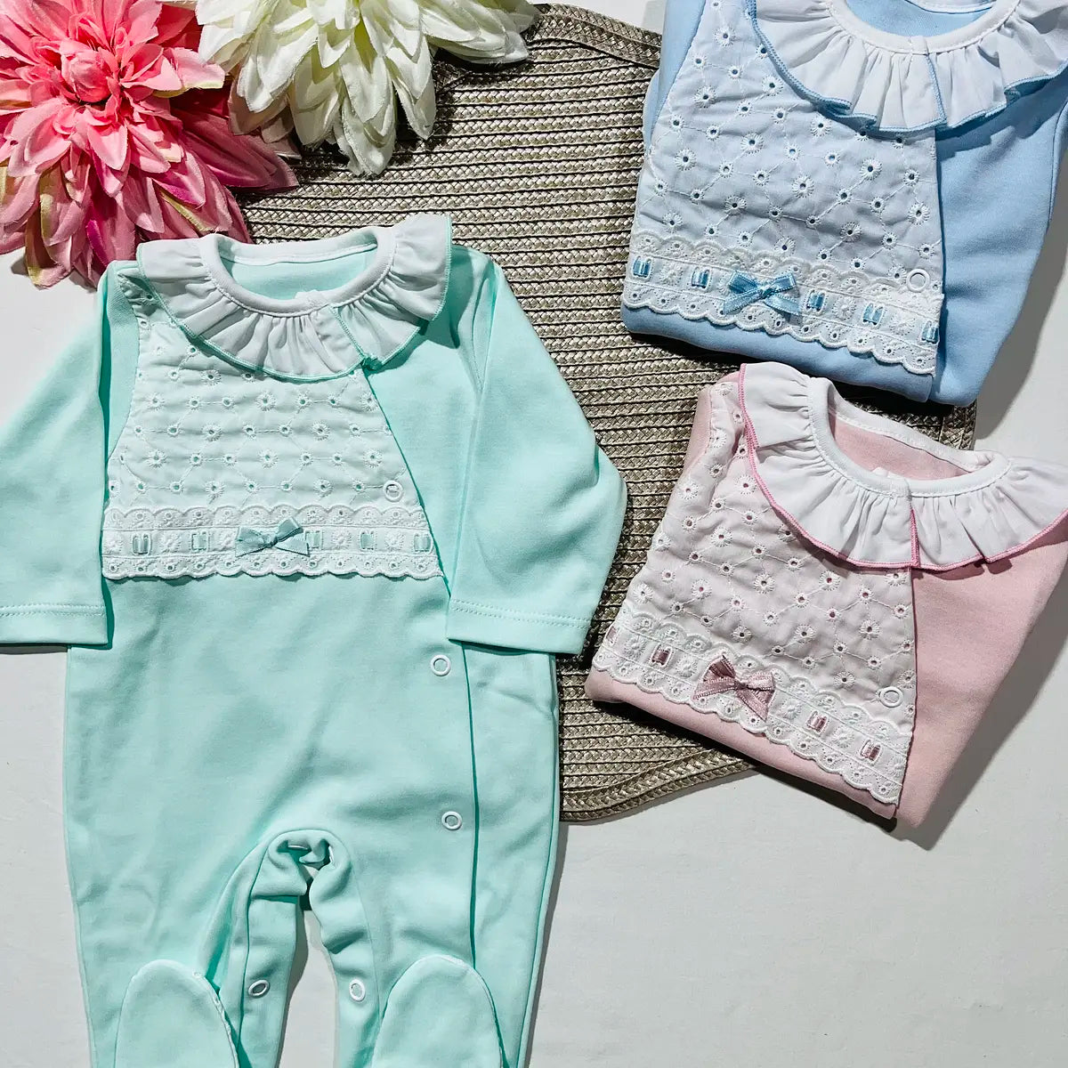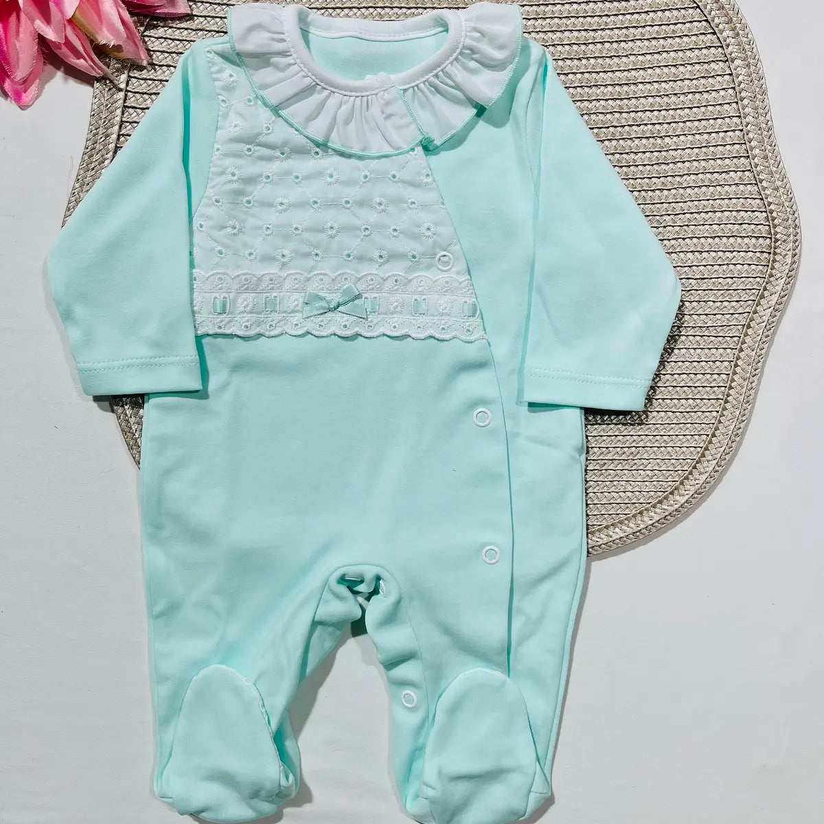 Babygrow recém-nascido - Algodão com bordado inglês