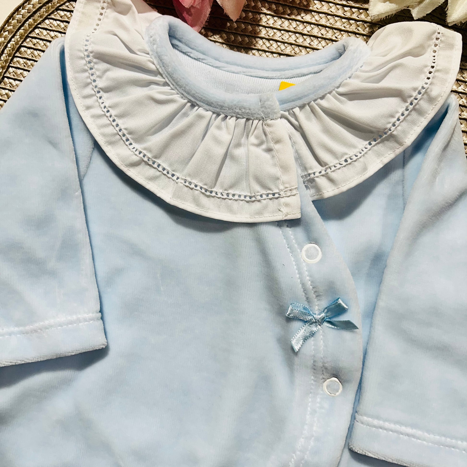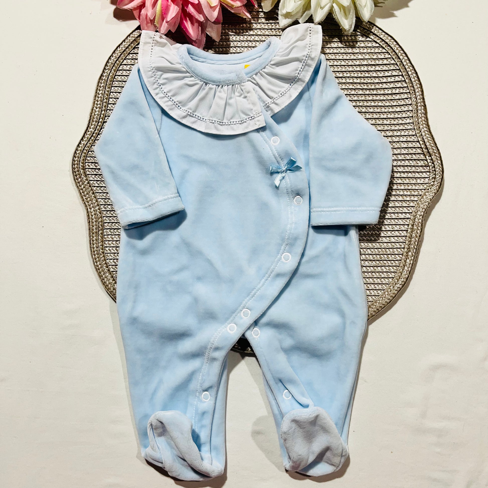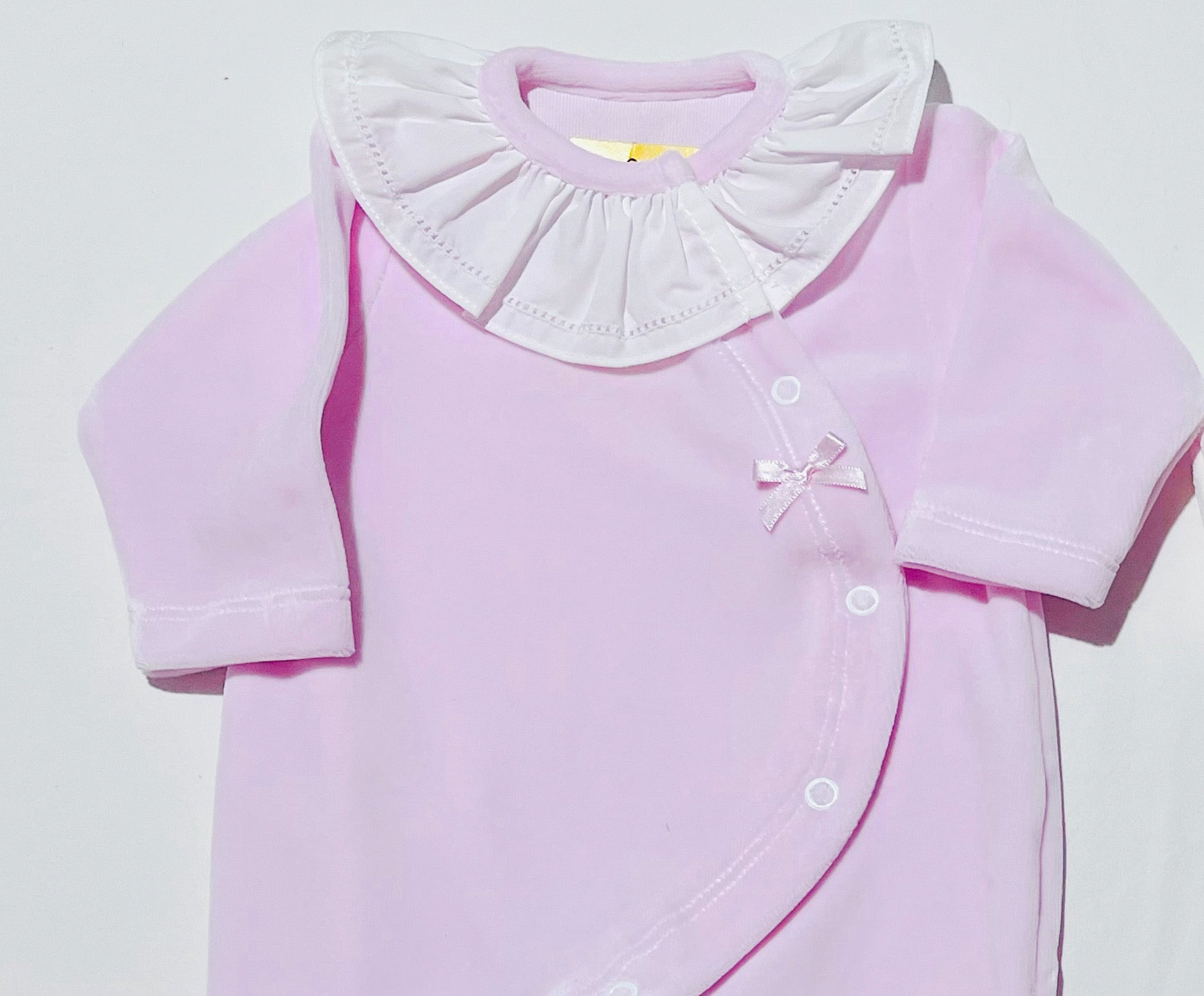 Abotoa em todo o comprimento e entre as pernas, facilitando assim a troca de fraldas.