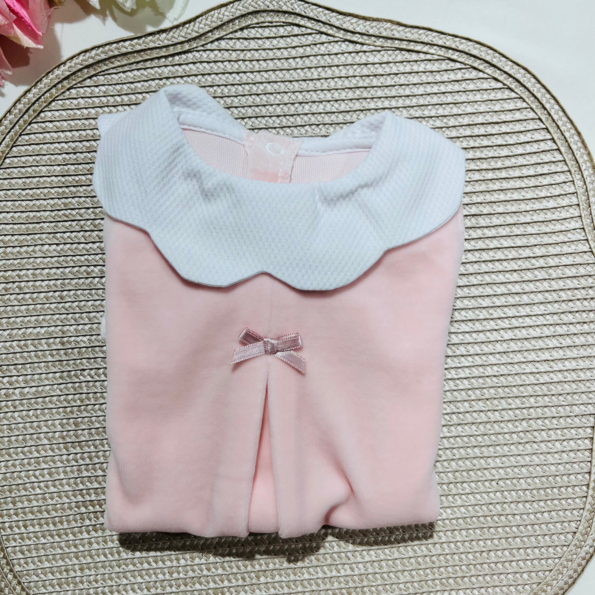 Um lindo babygrow em veludo com gola pique.