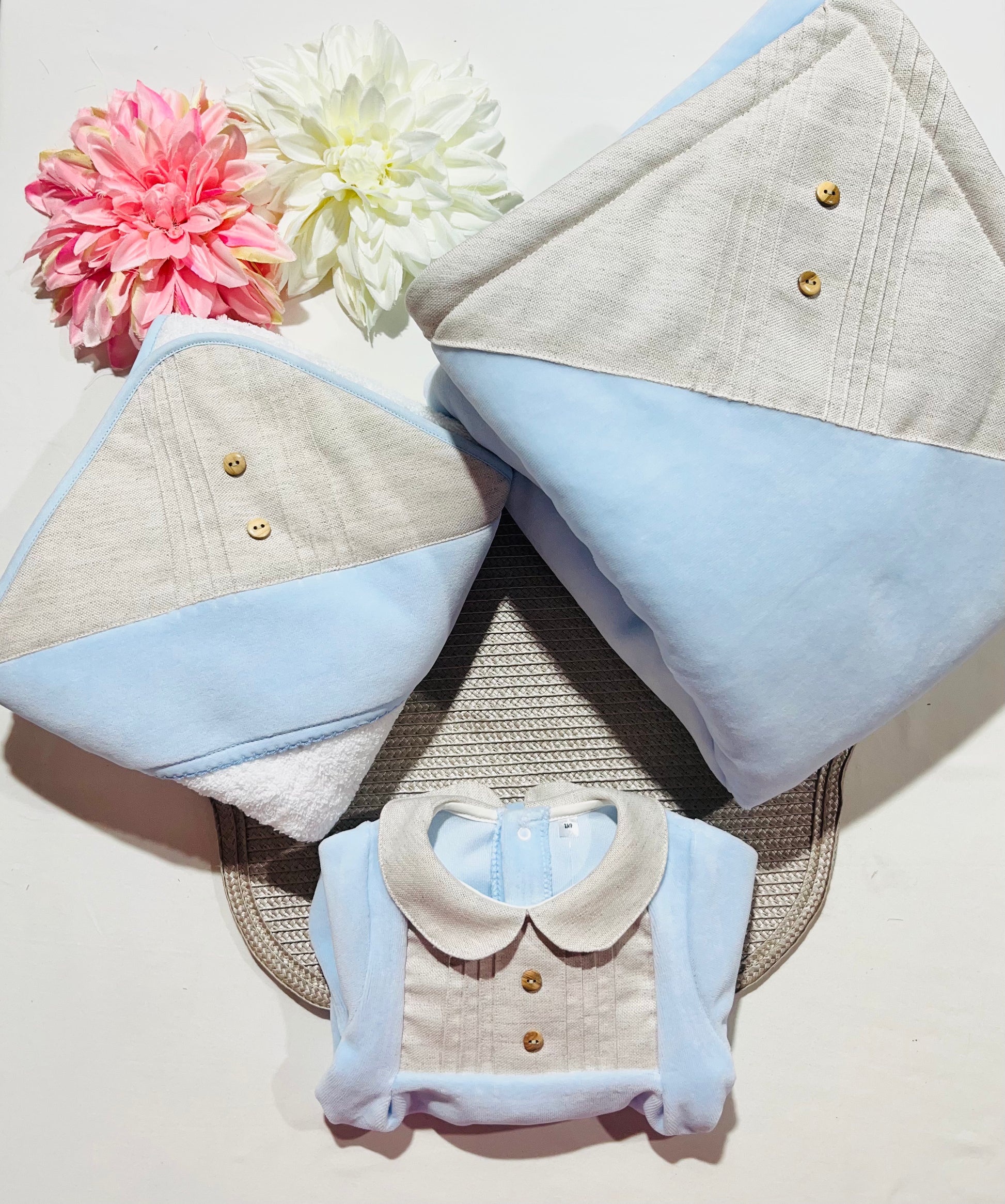 Babygrow em veludo - Linho - Qualidade PREMIUM - 1 e 3M - Azul