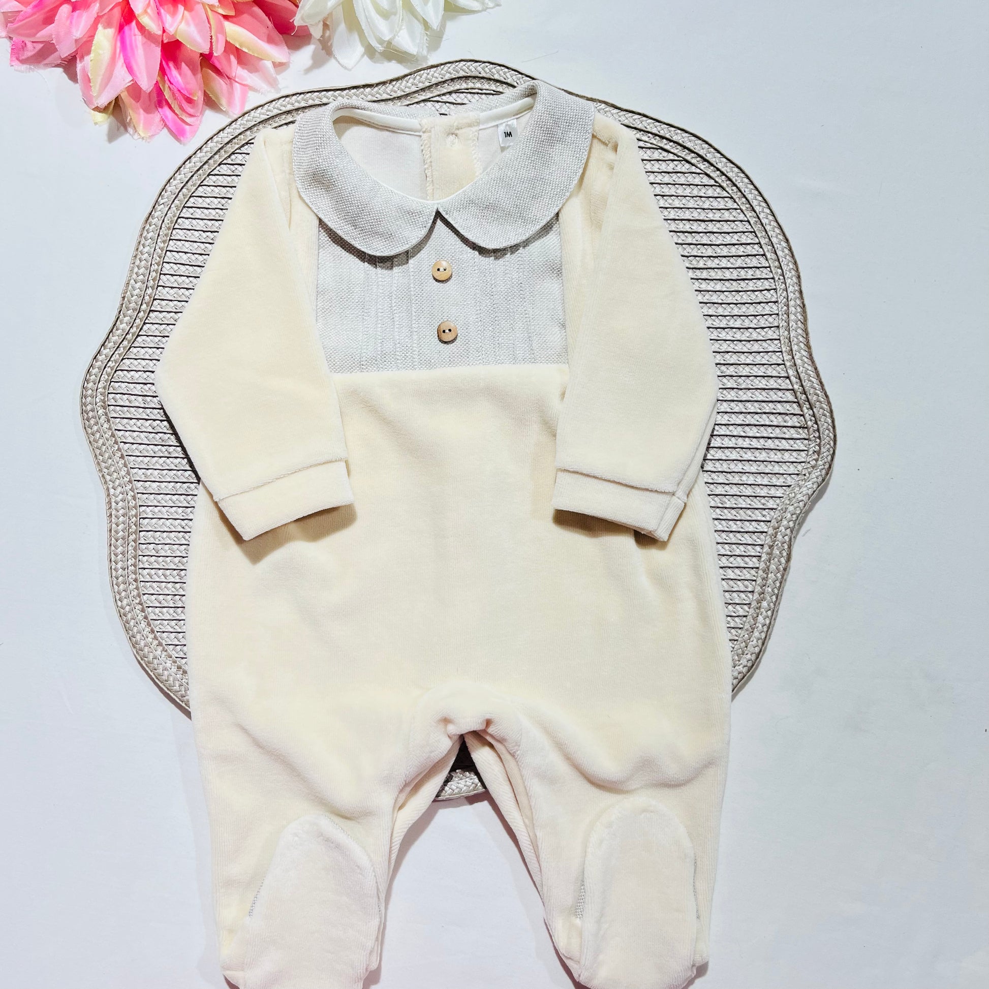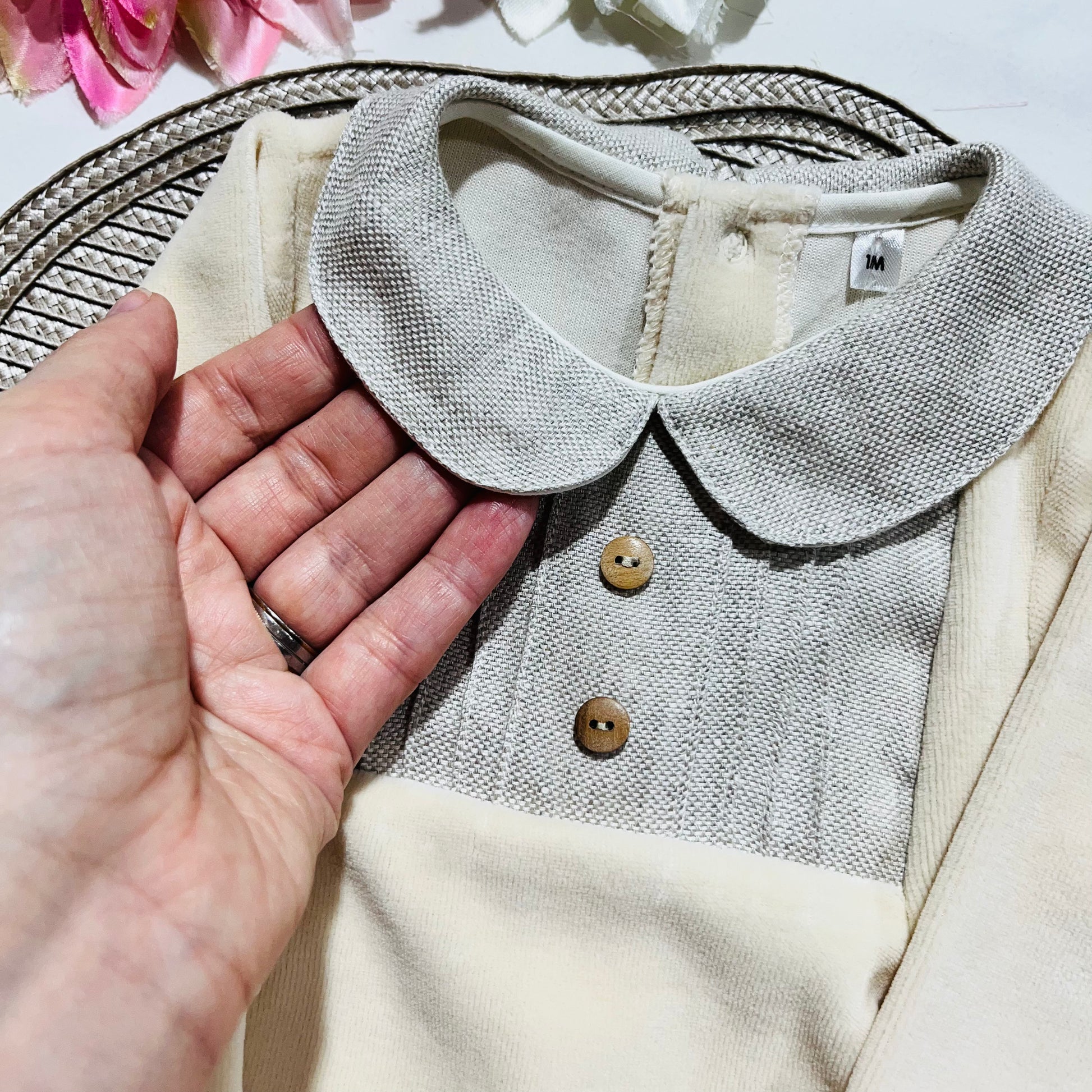 Babygrow em veludo - Linho - Qualidade PREMIUM - 1 e 3M - Bege
