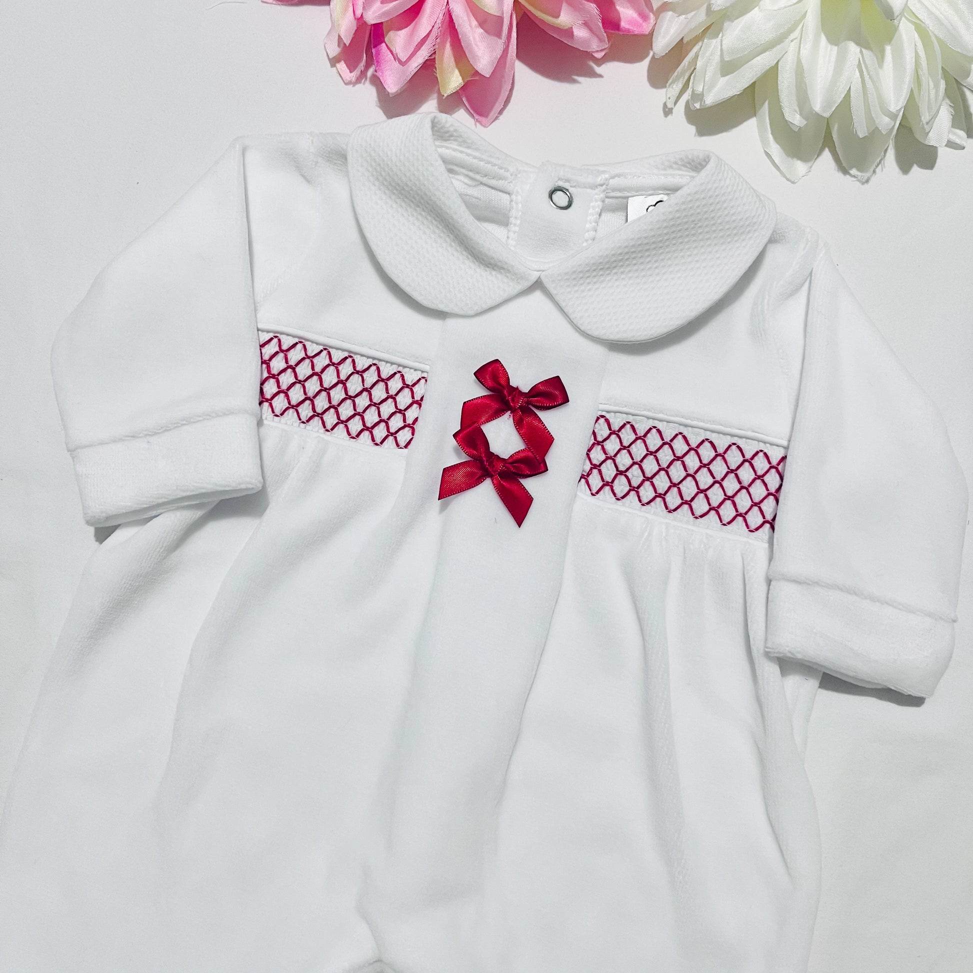 Com golinha, favo de mel e lacinhos no peito em vermelho