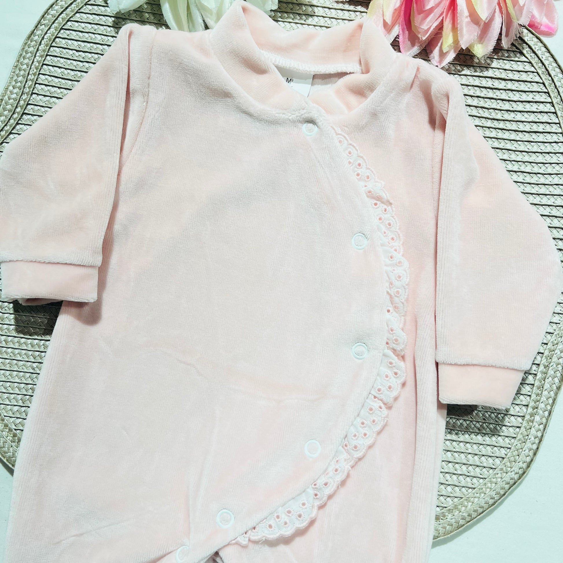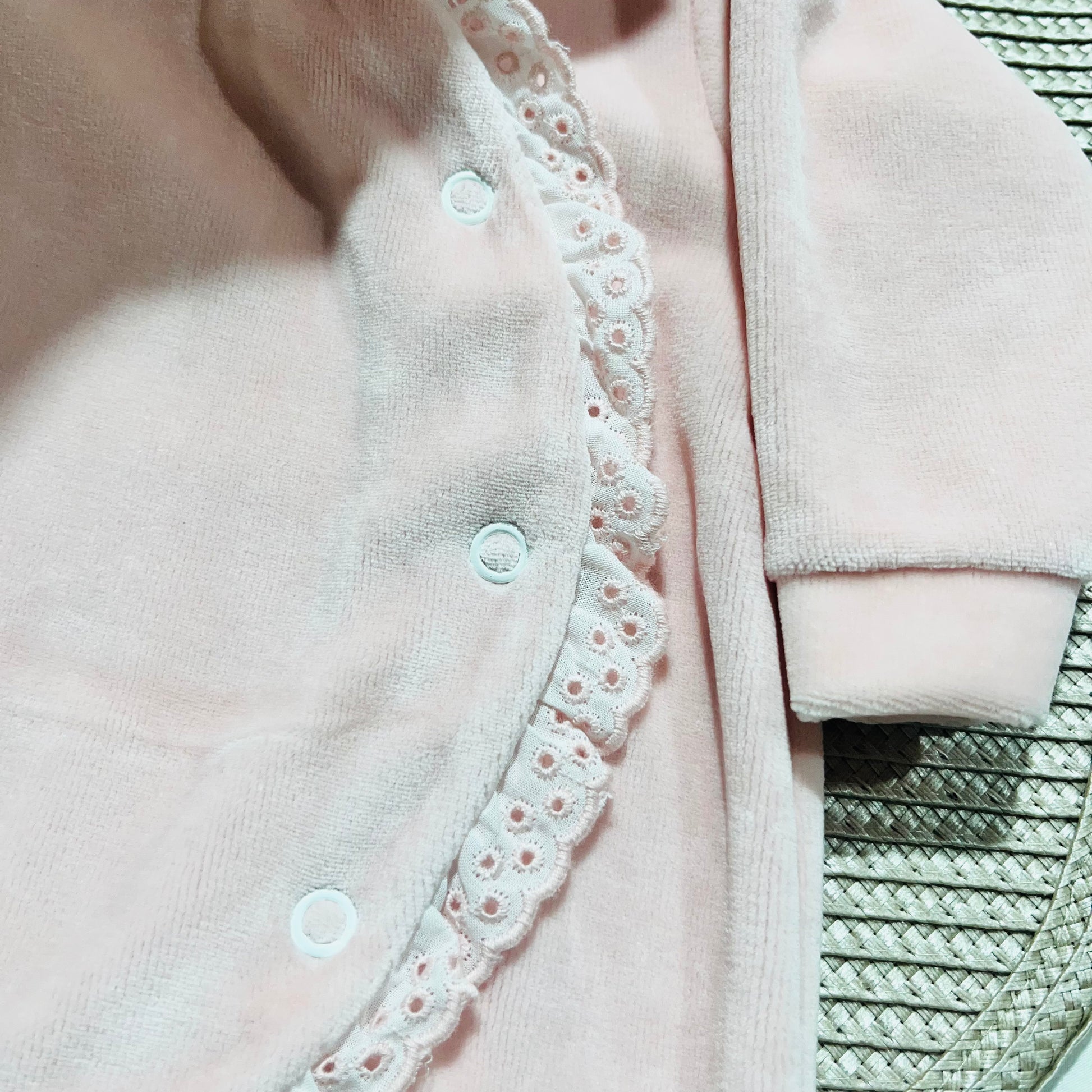 Abotoa no comprimento e entre as pernas, facilitando assim para vestir.