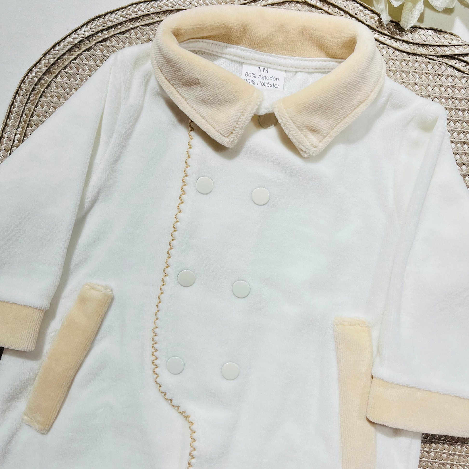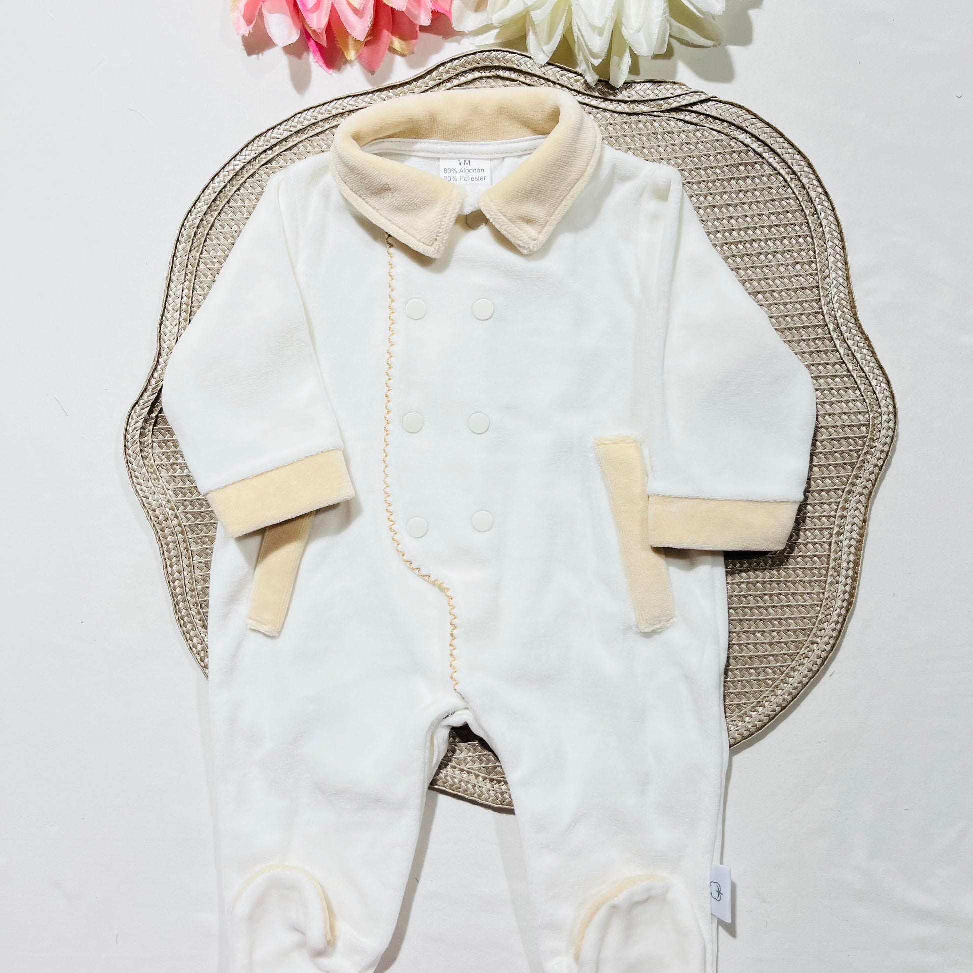 Babygrow Pedro em veludo - Pérola - 1 e 3 meses