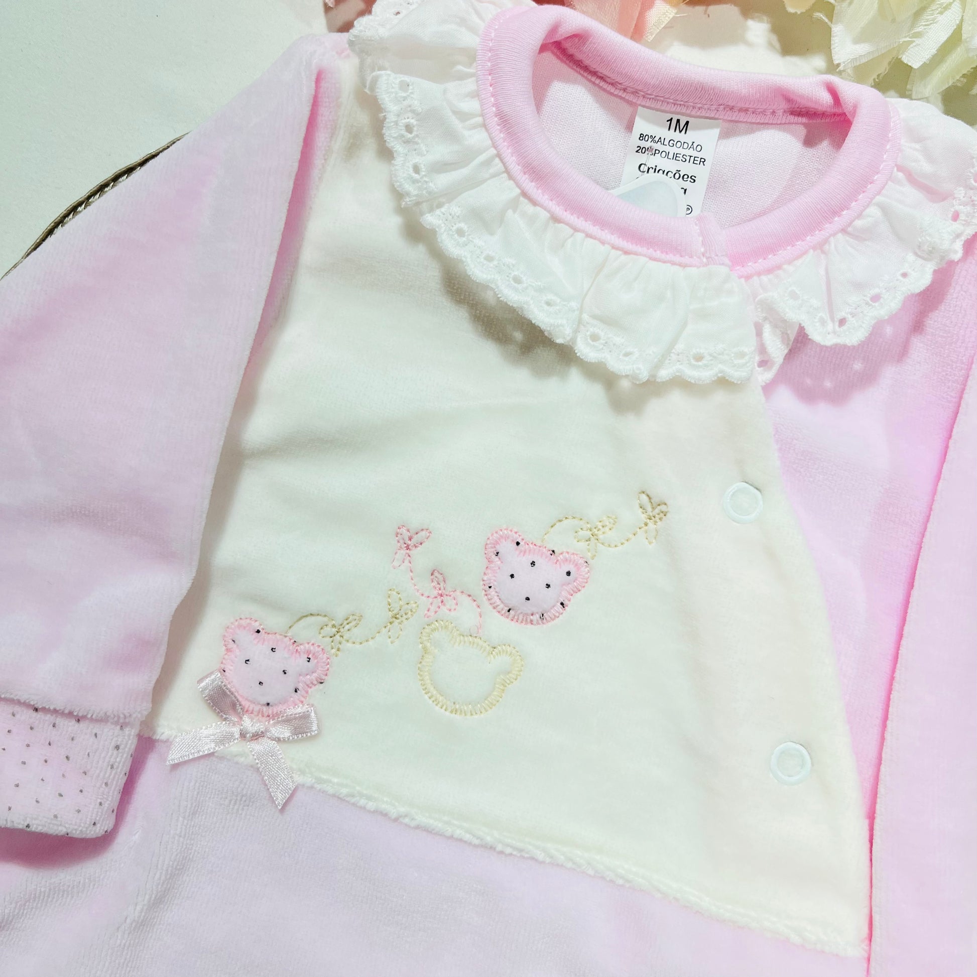 Babygrow recém-nascido Veludo - 3 ursos - Rosa e Azul