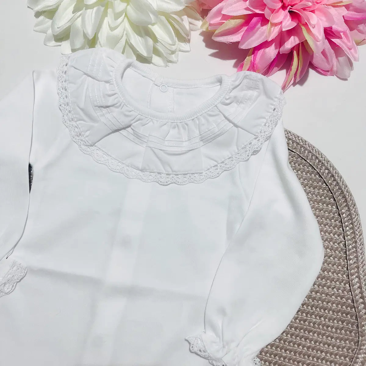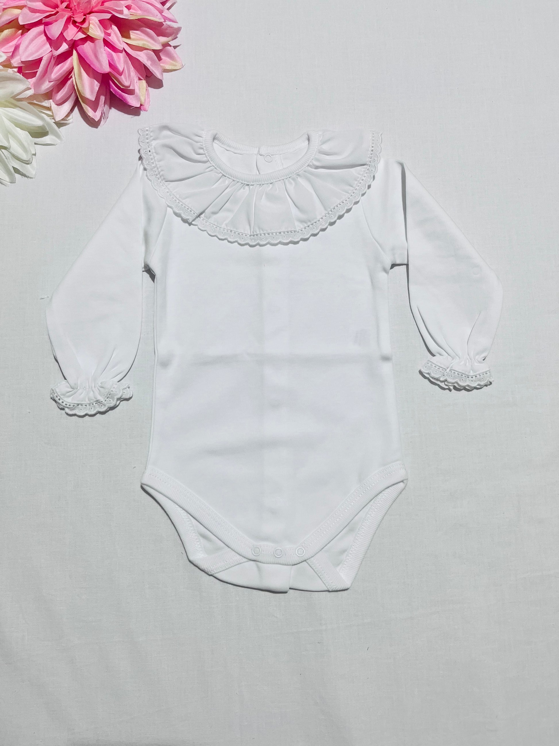 Body de manga comprida com gola de renda.