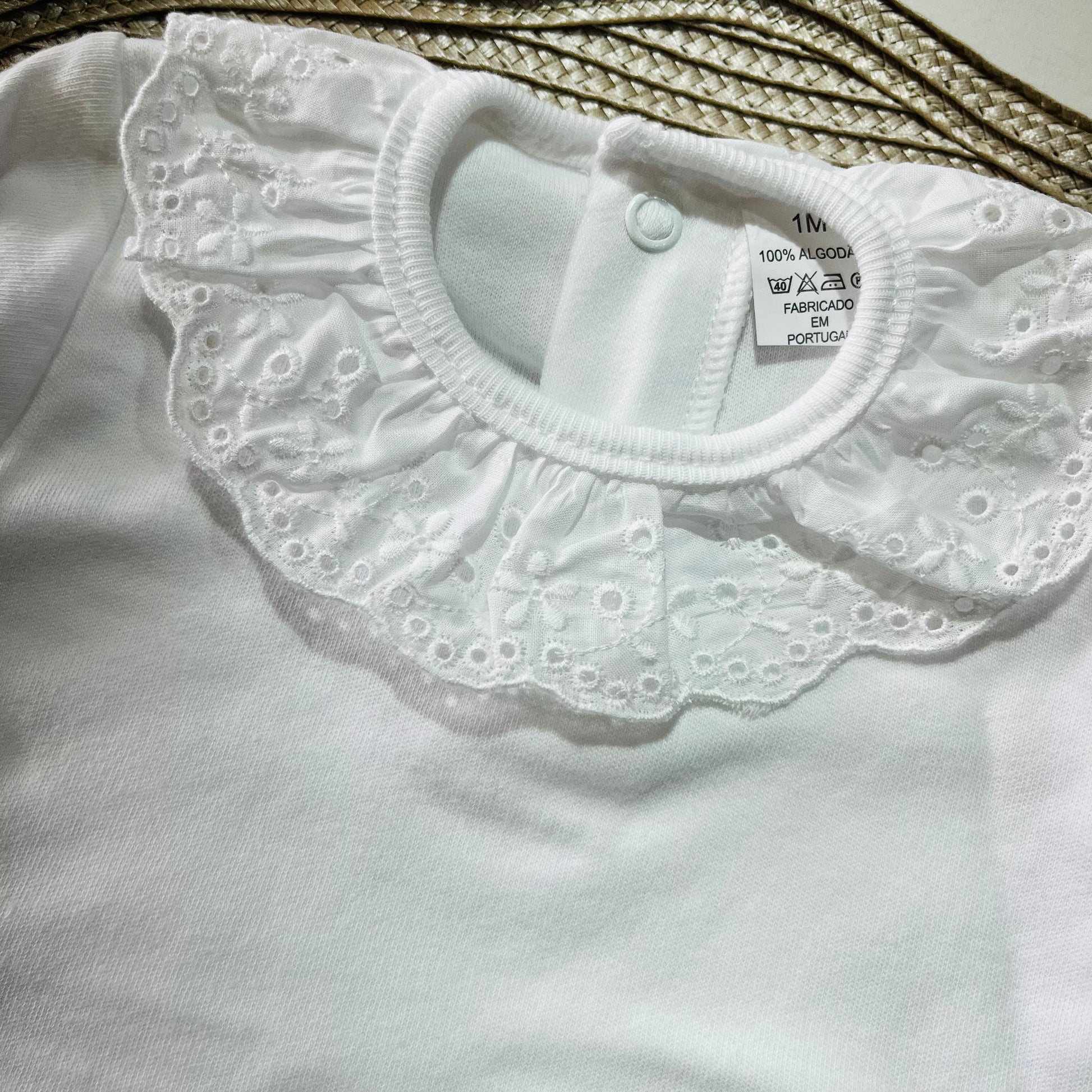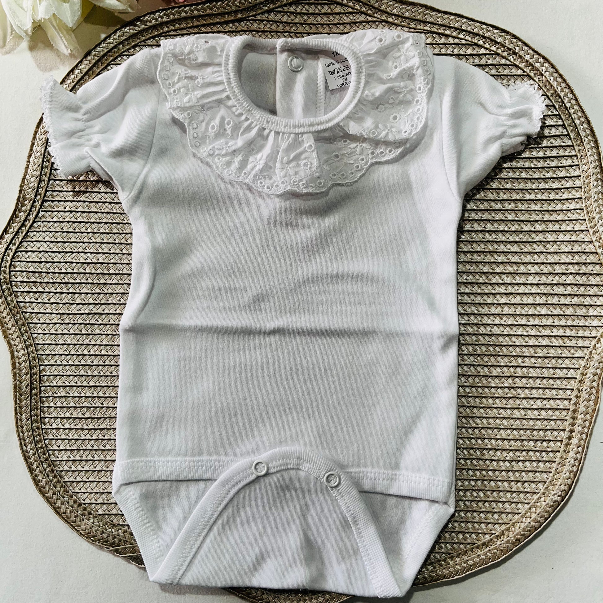 Body para bebé com gola de renda e manga curta sem carda, algodão