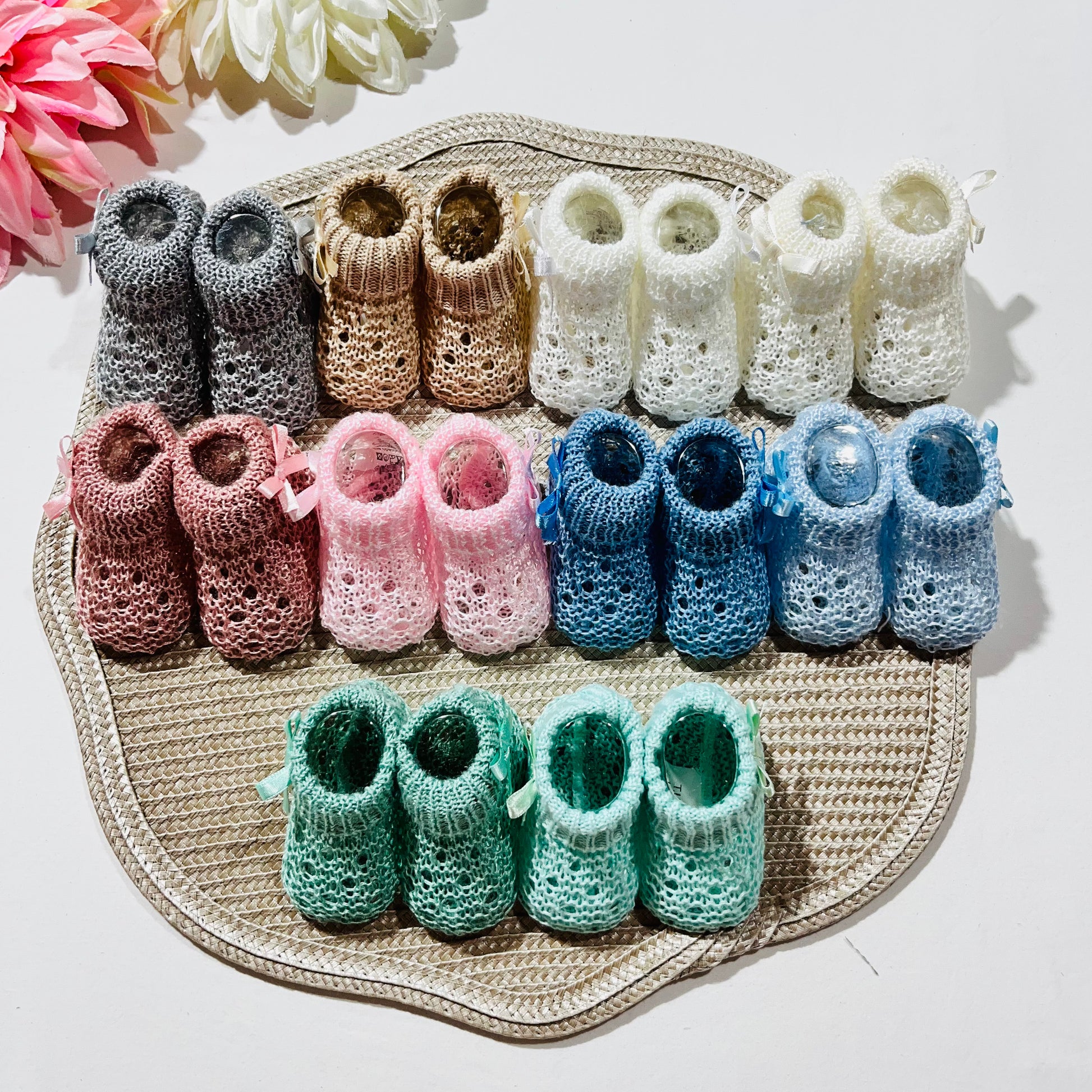 Carapins em malha são sapatinhos feitos de malha para o bebé