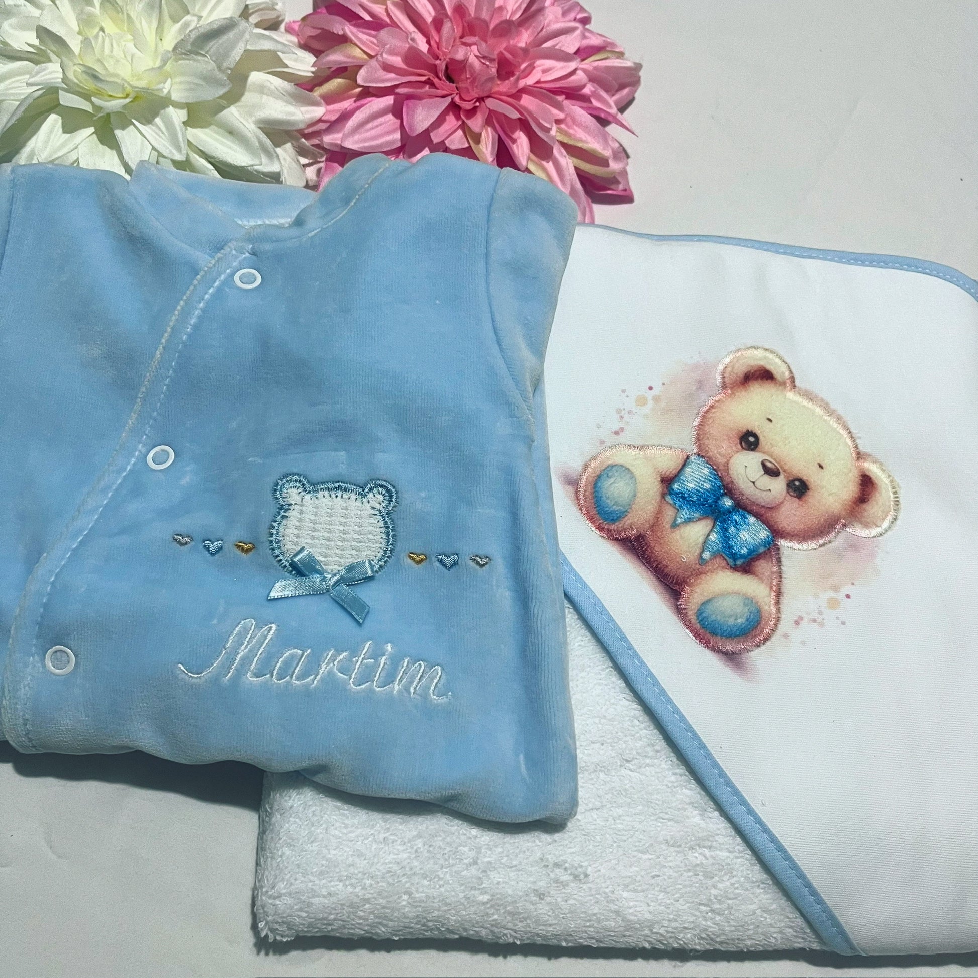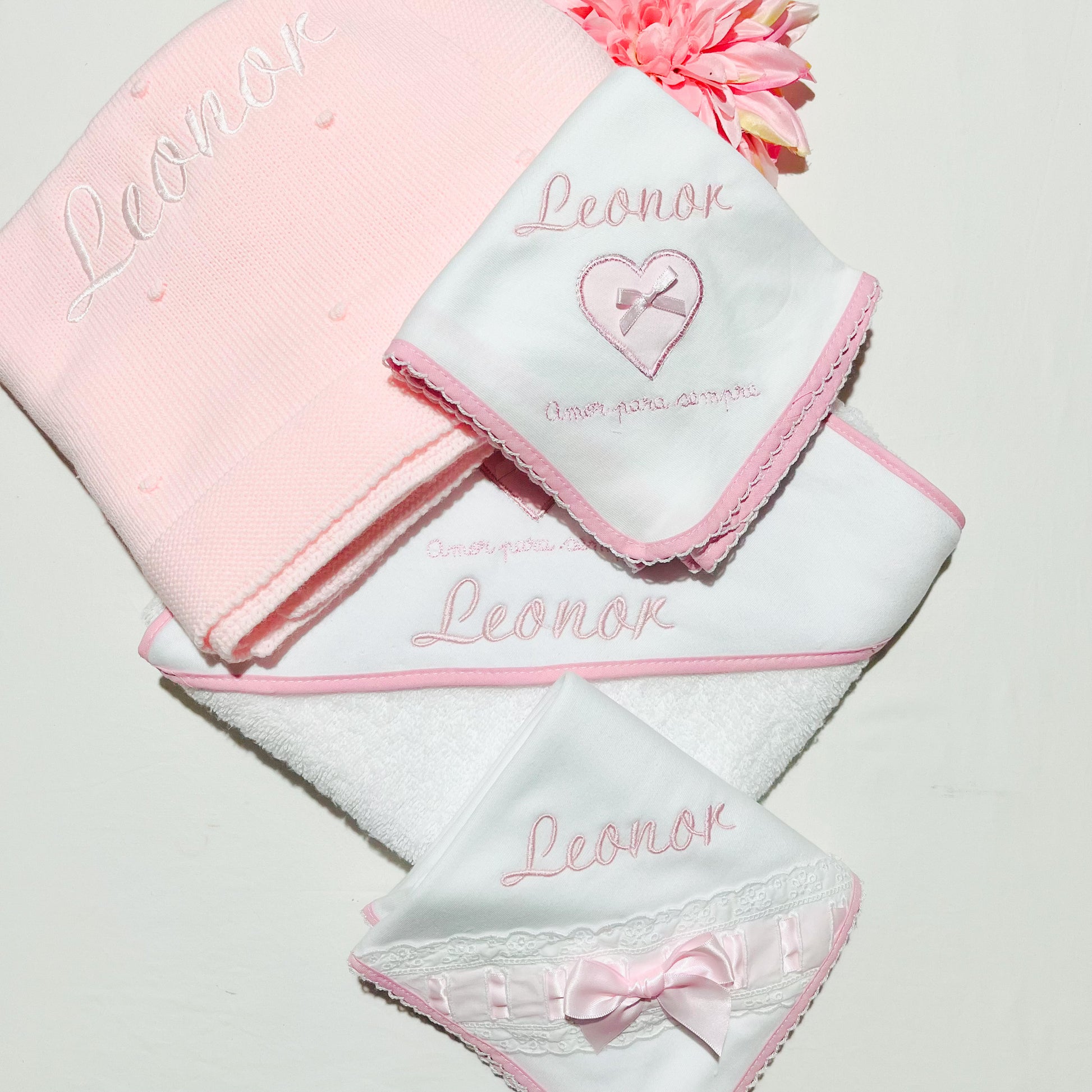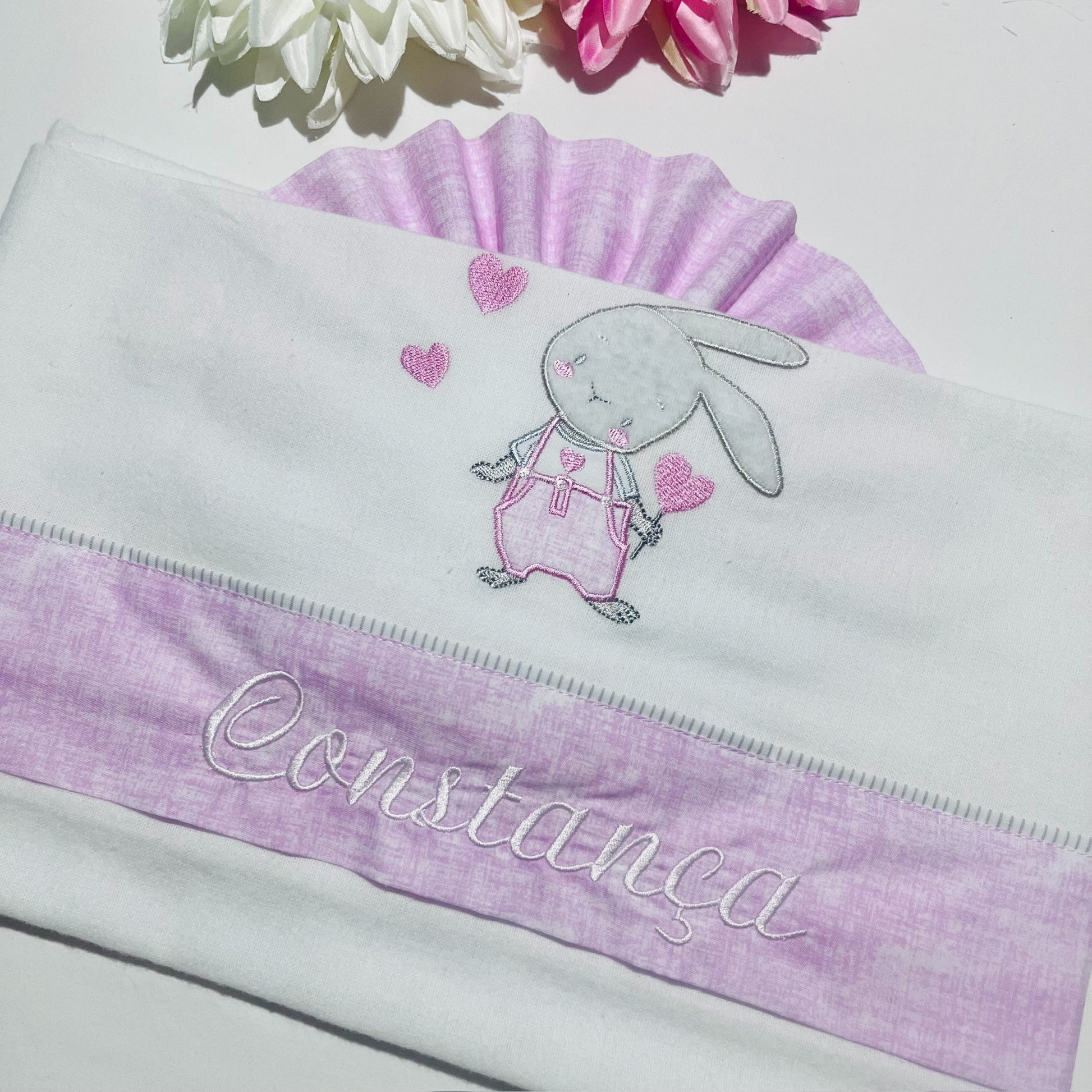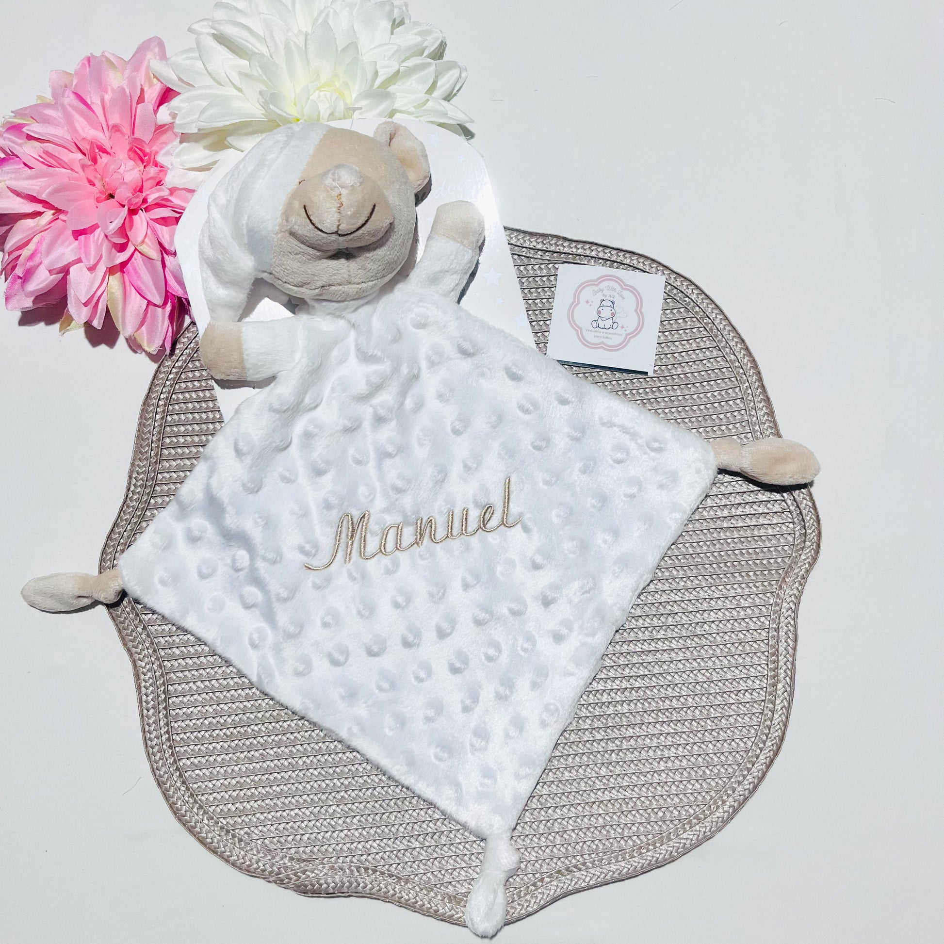 Fazemos personalizações em: Mantas, fraldas, toalhas de banho, babygrows, babetes, body interior, body de gola, tapa-ovo, Dou Dou e lençóis sempre com o nome do bebé.