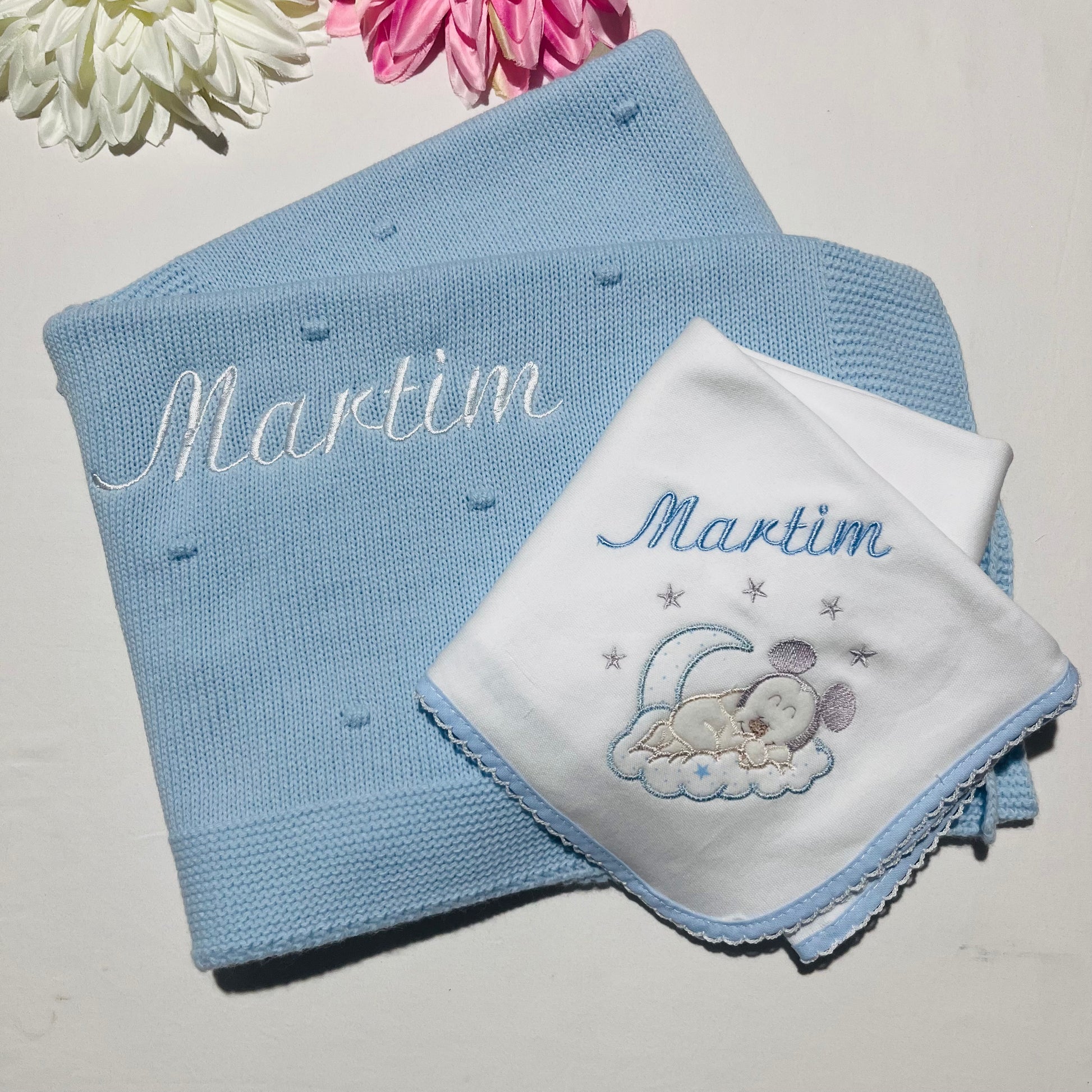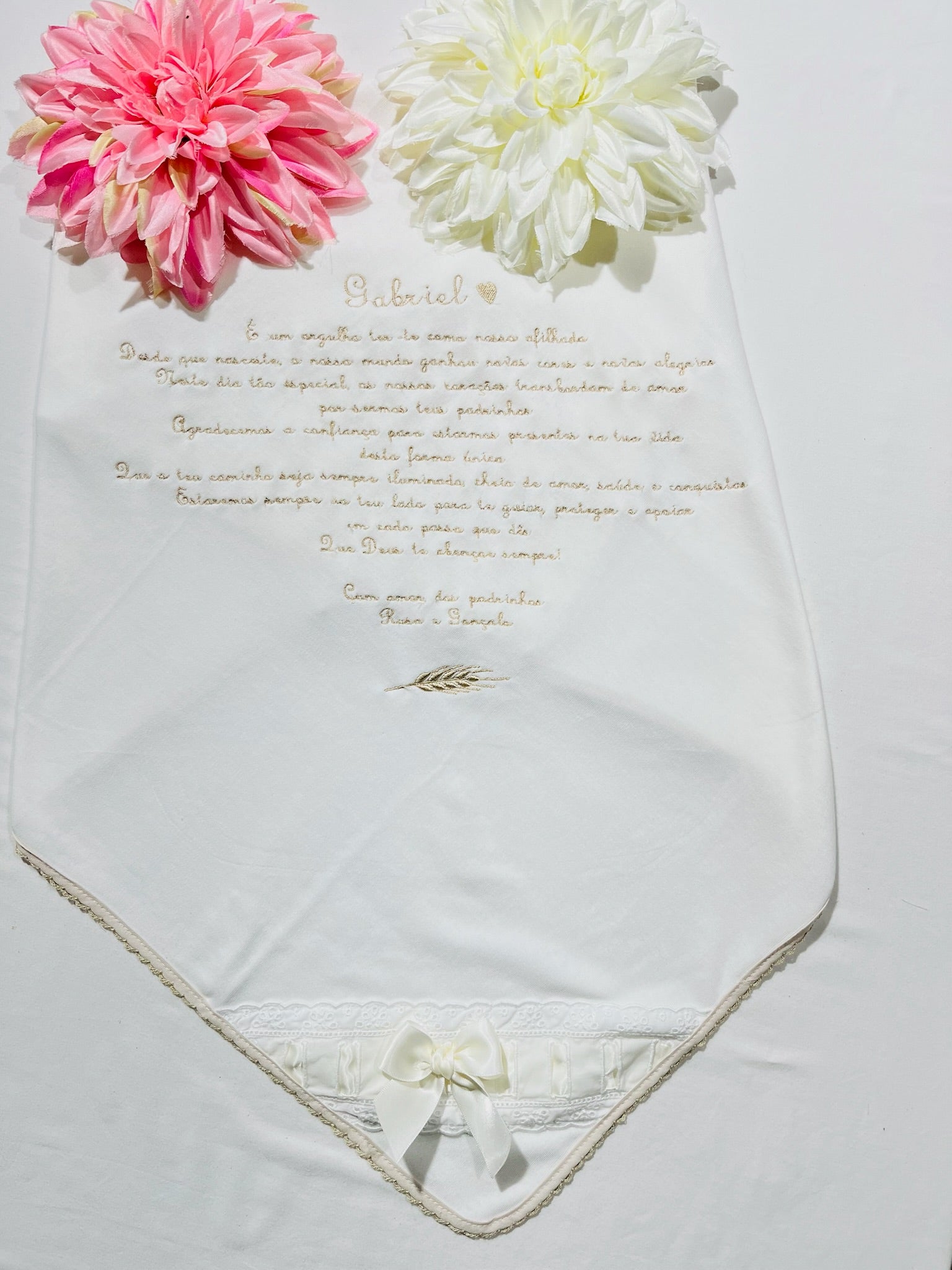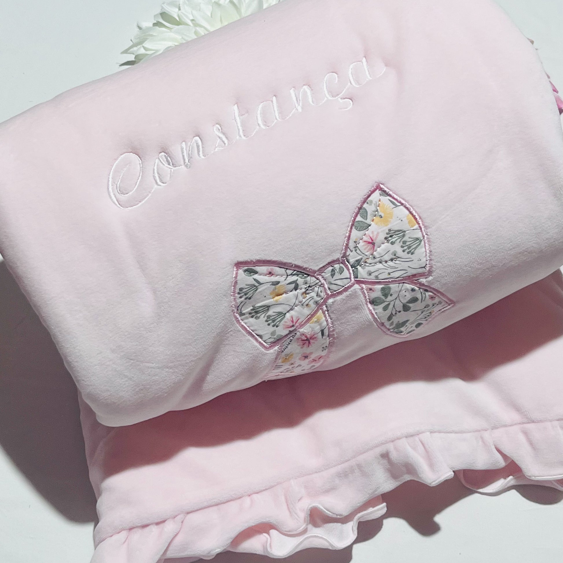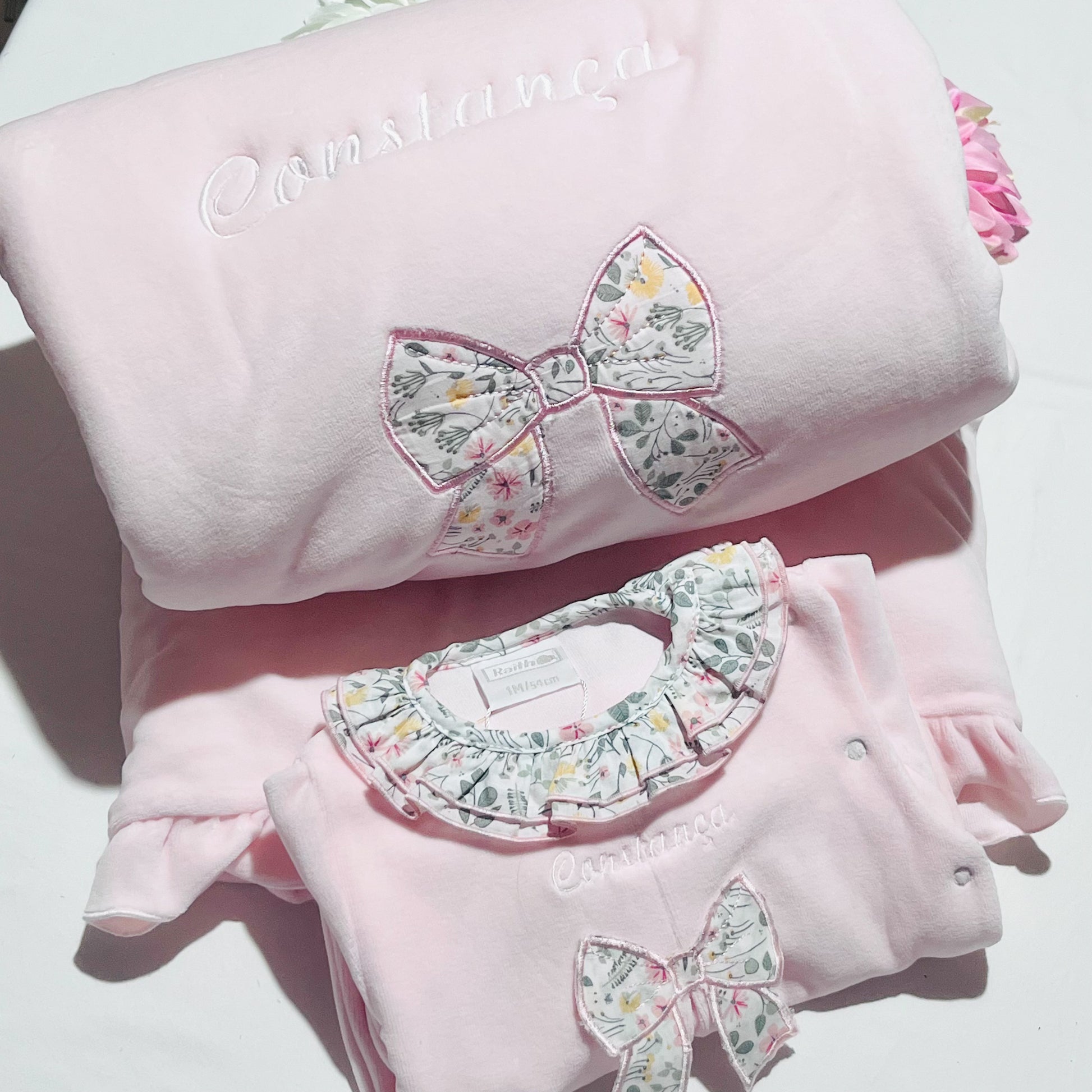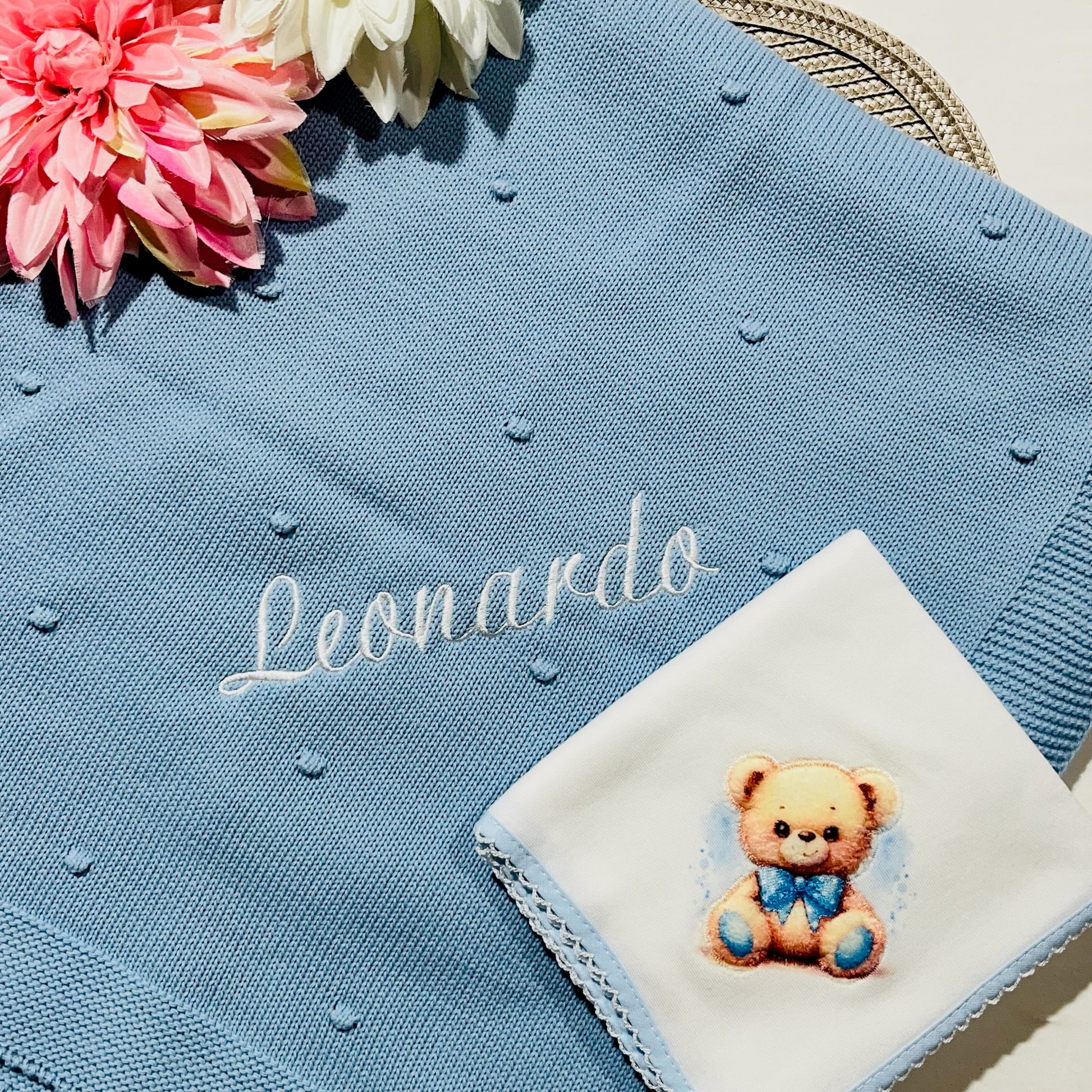 Fazemos personalizações em: Mantas, fraldas, toalhas de banho, babygrows, babetes, body interior, body de gola, tapa-ovo, Dou Dou e lençóis sempre com o nome do bebé.