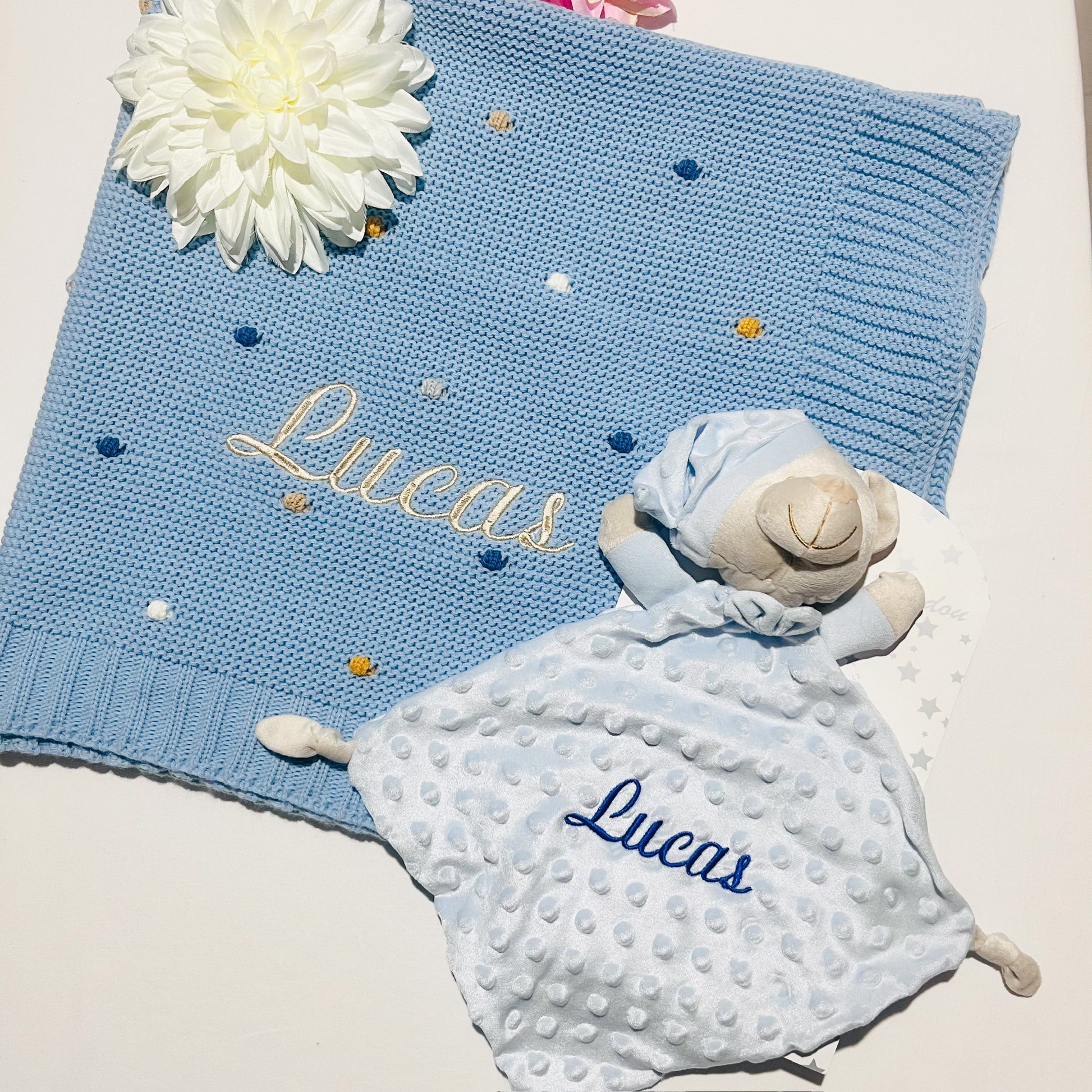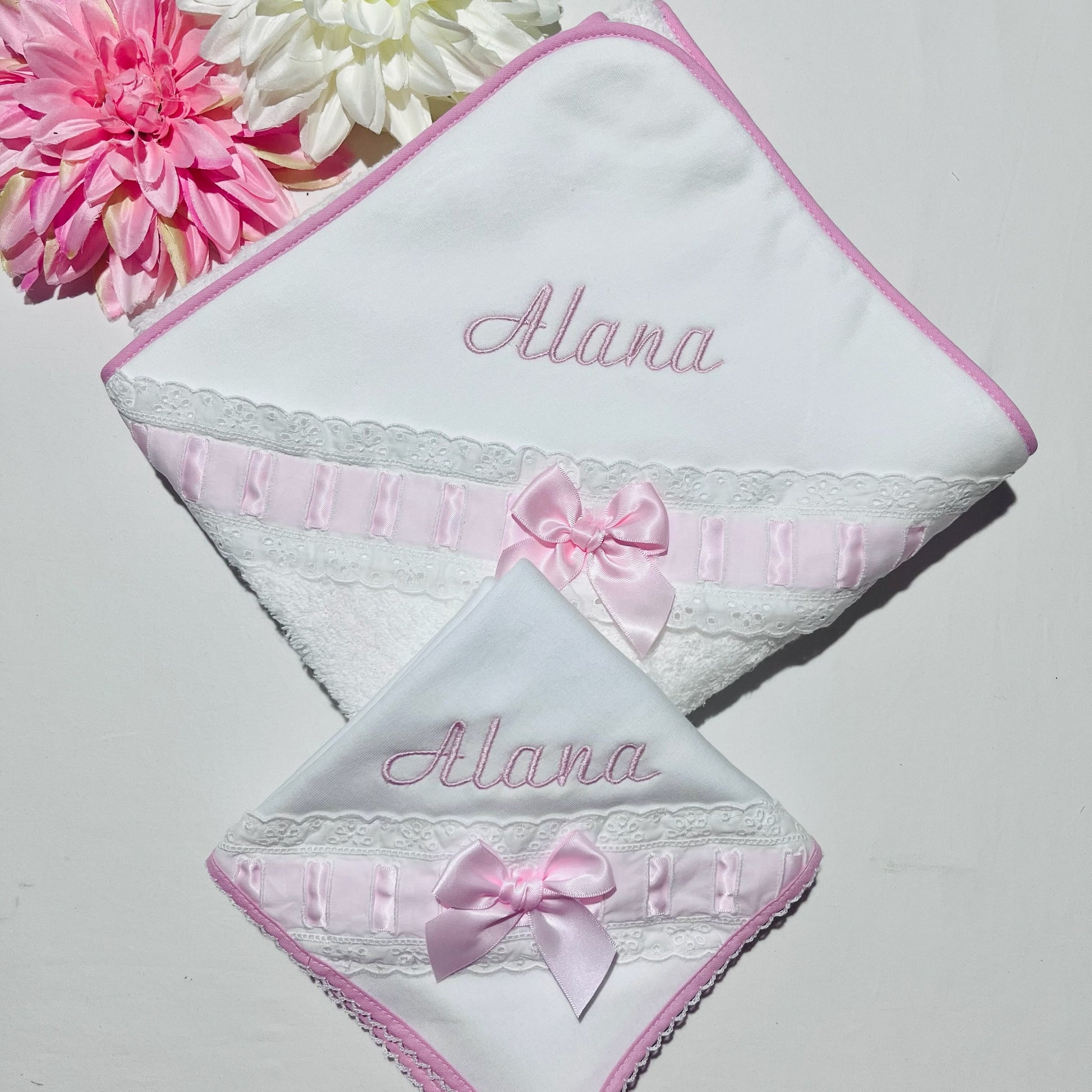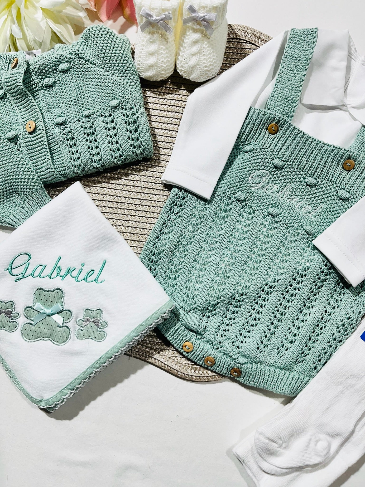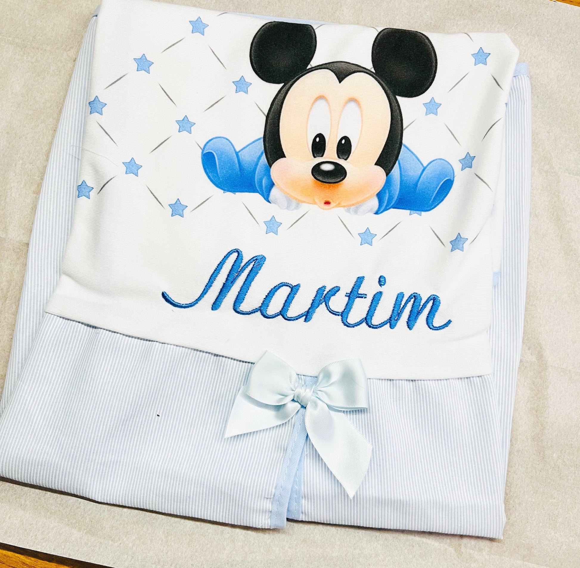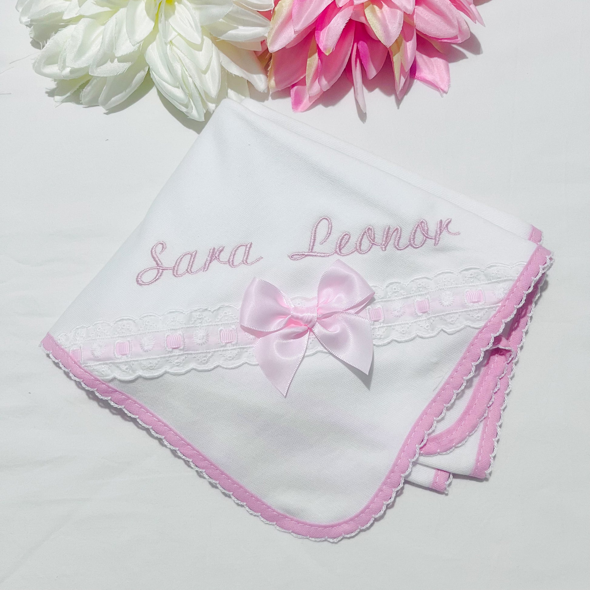 Fazemos personalizações em: Mantas, fraldas, toalhas de banho, babygrows, babetes, body interior, body de gola, tapa-ovo, Dou Dou e lençóis sempre com o nome do bebé.