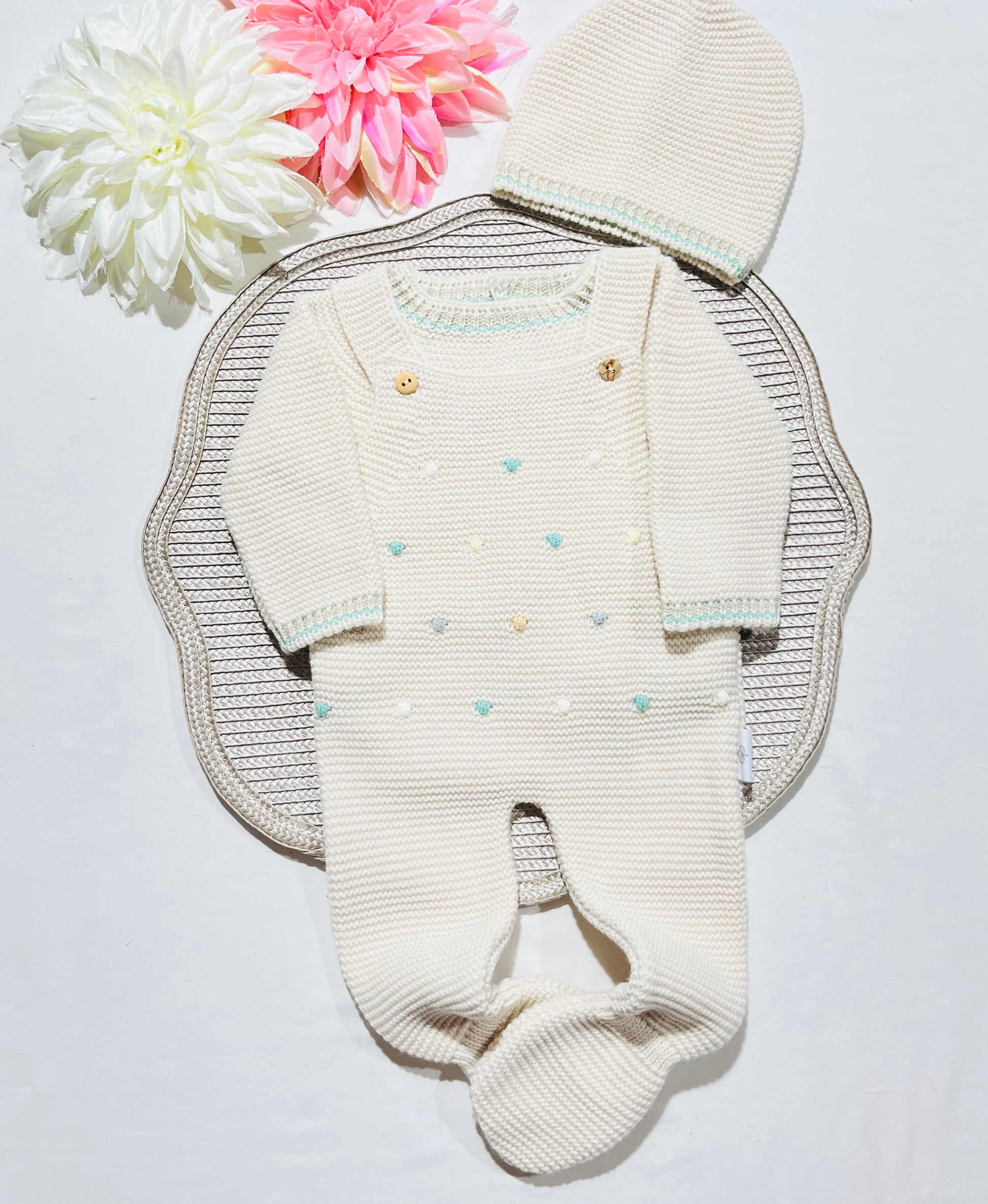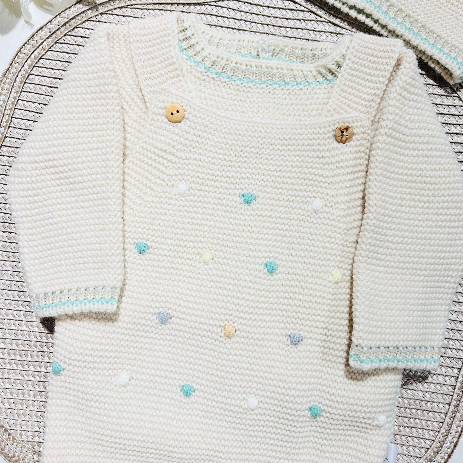 O nosso conjunto arco-iris é muito bonito e a malha é suave e trás o aconchego que procura para o seu bebé.