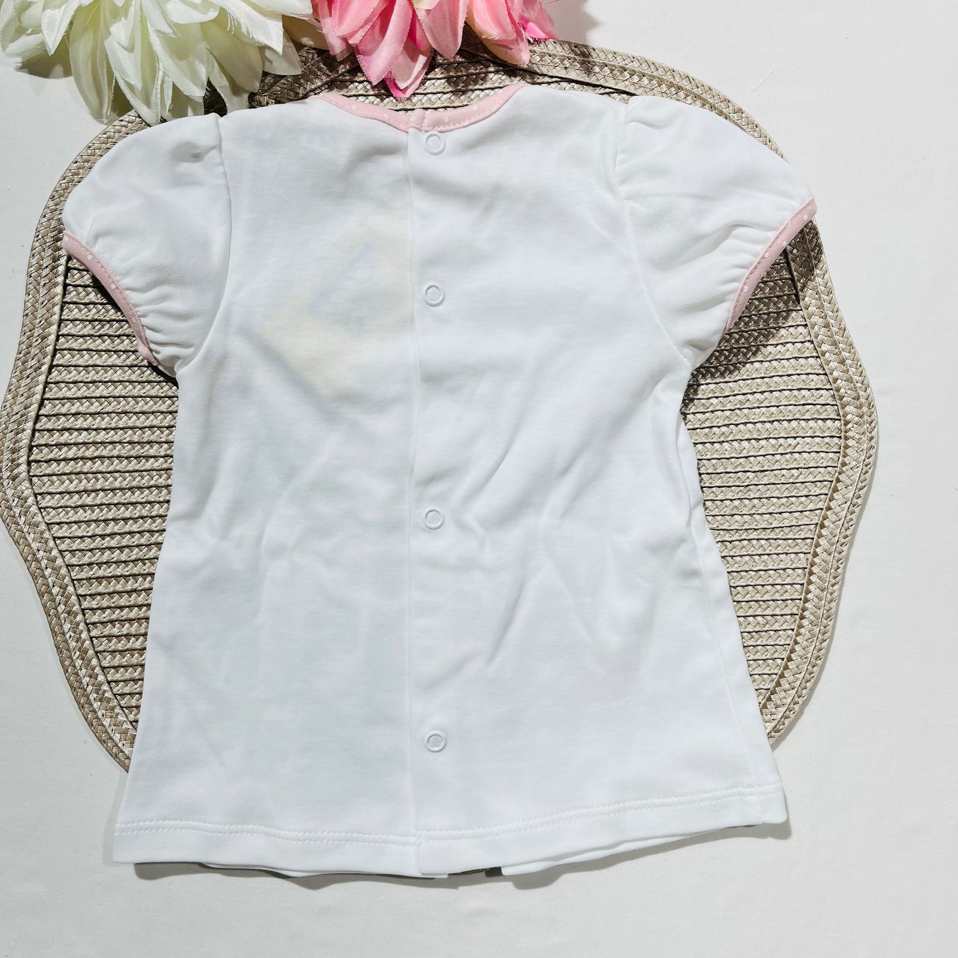 - Camisola abotoa atrás com botões de mola.