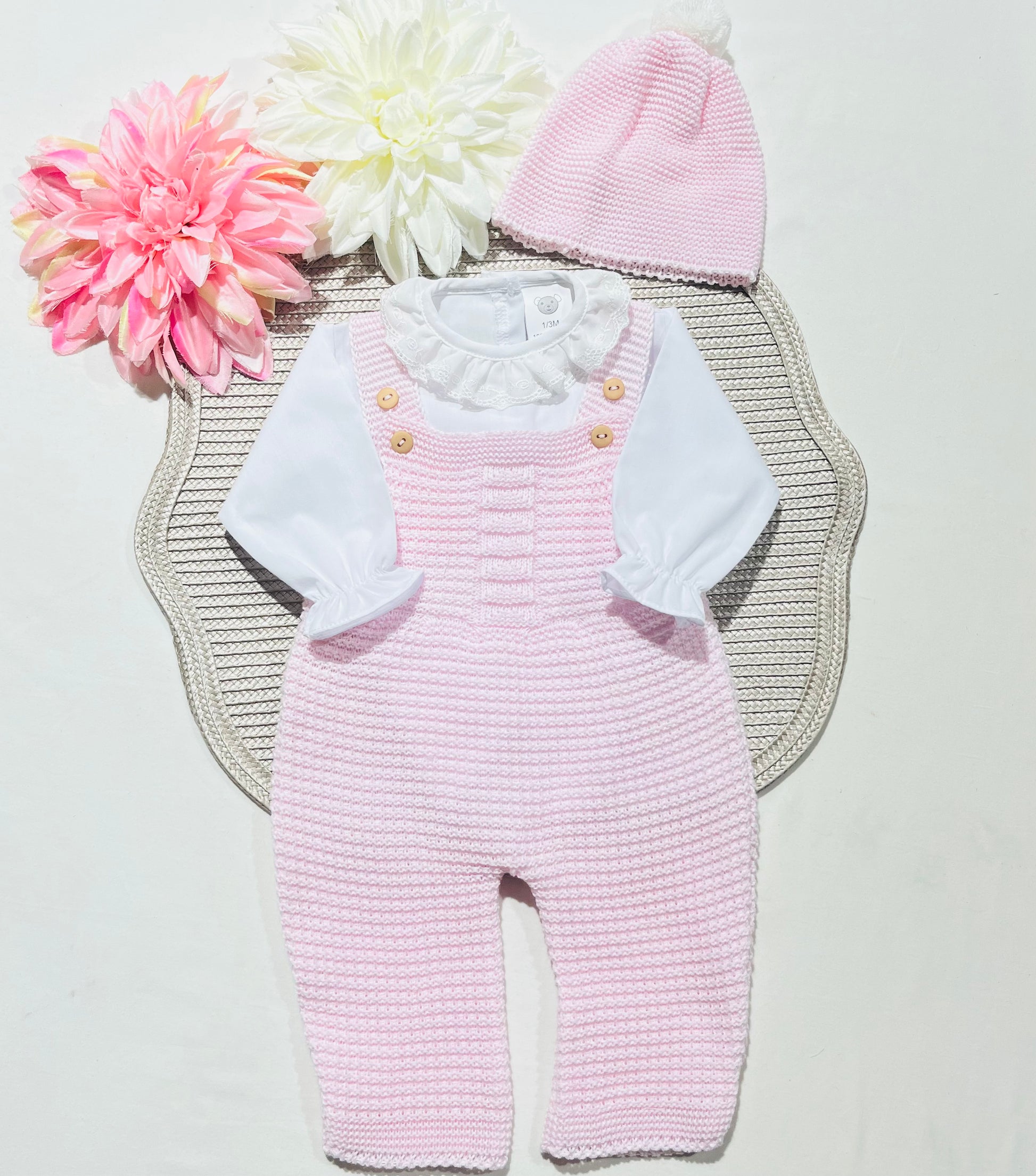 Conjunto de bebé - 3 peças - 1/3M - Rosa bebé