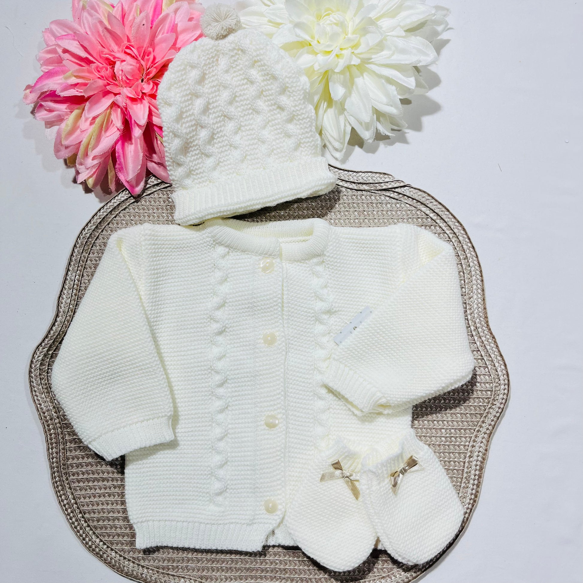 Conjunto de bebé - Casaco + Gorro + luvas - Pérola