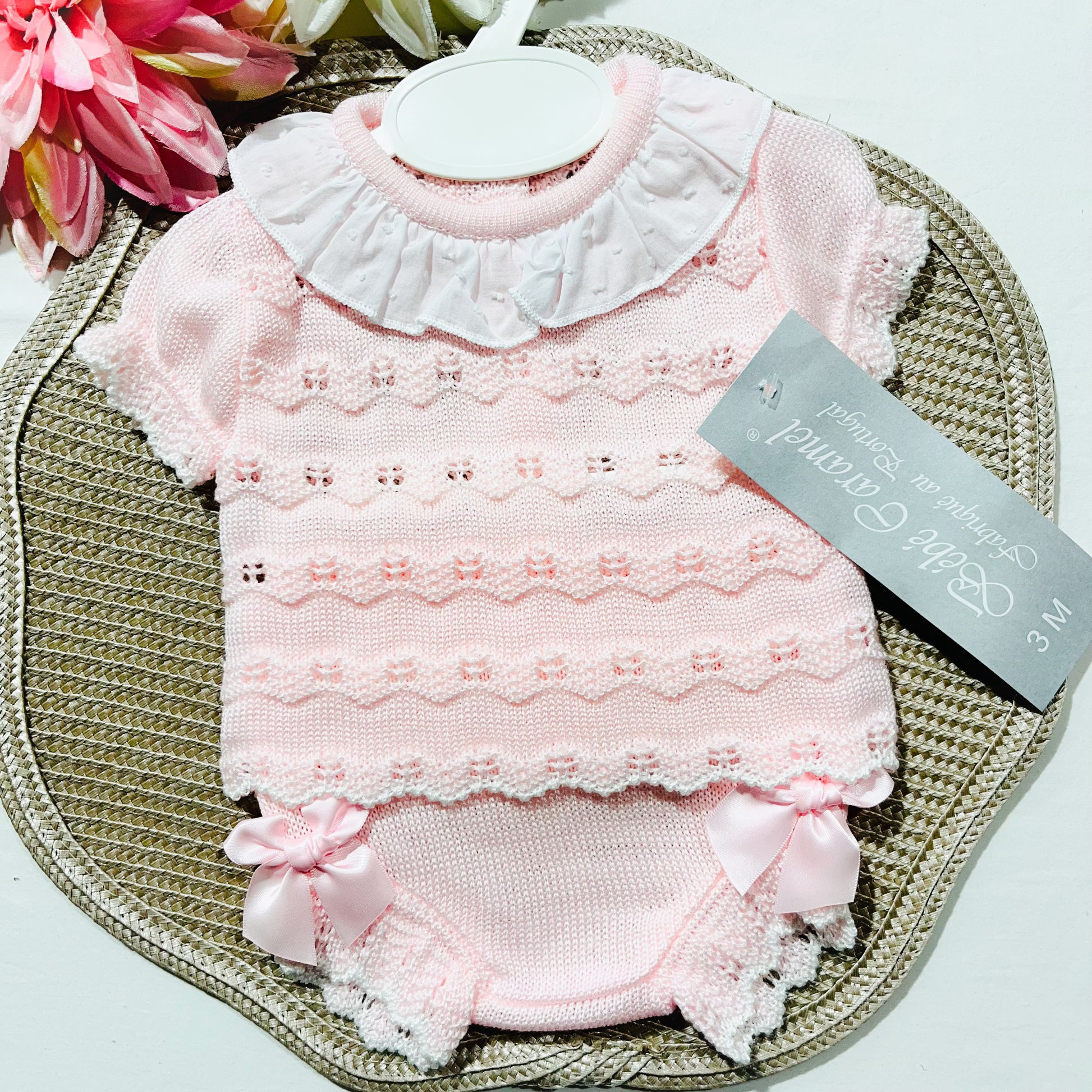 Conjunto de bebé em malha - 2 peças - Rosa bebé