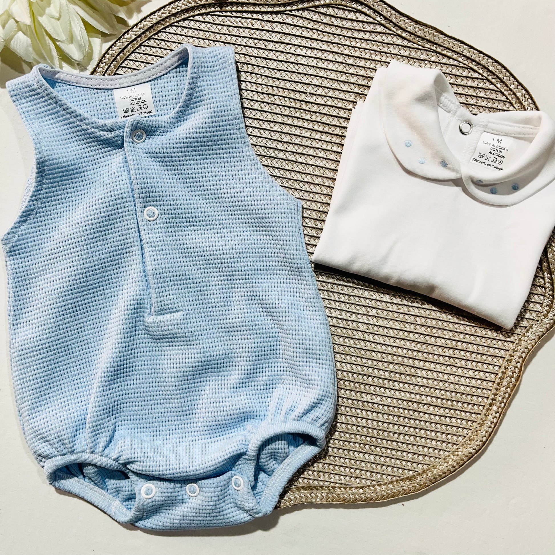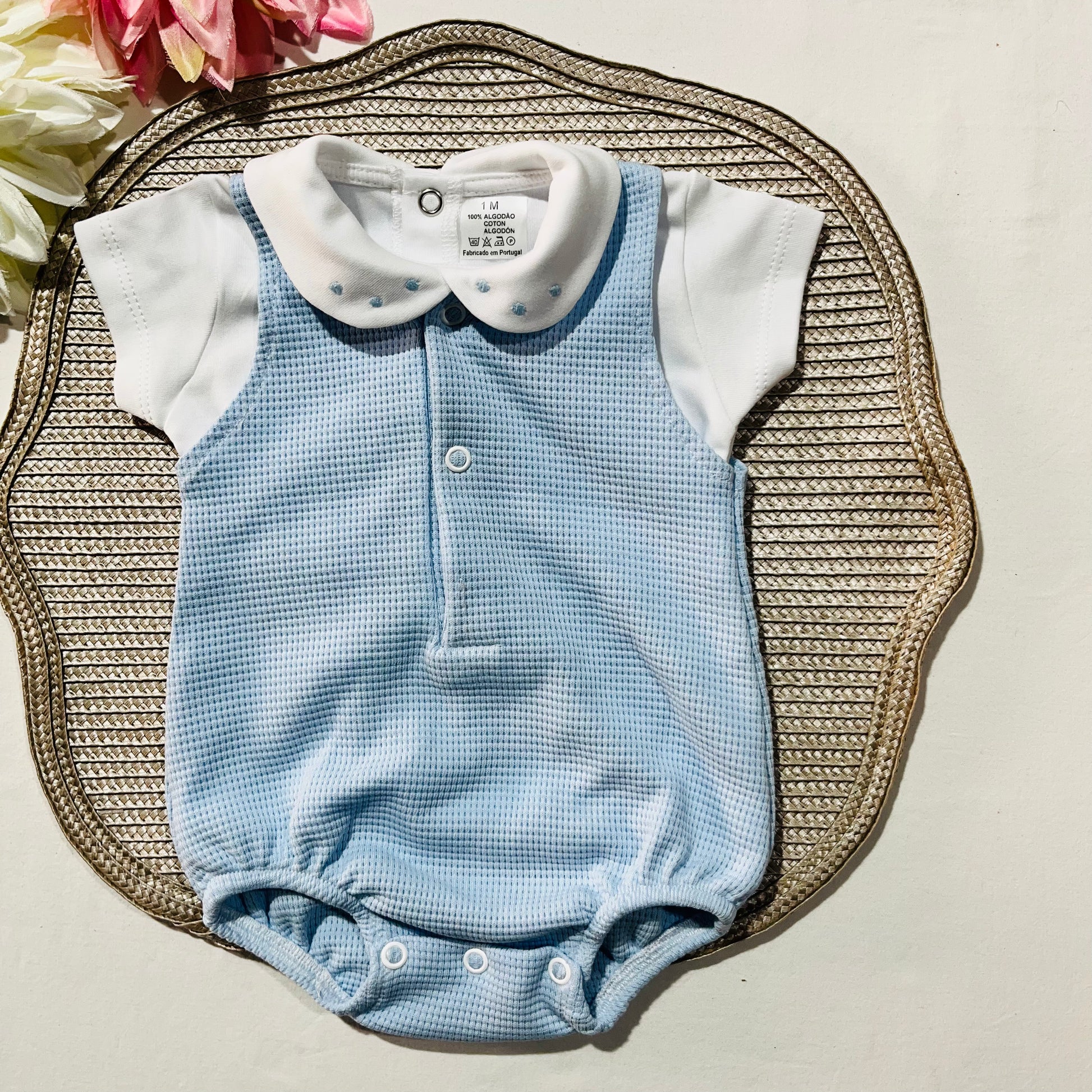 Composto por fofo de malha com elasticidade, abotoa á frente e entre as pernas para troca da fralda.