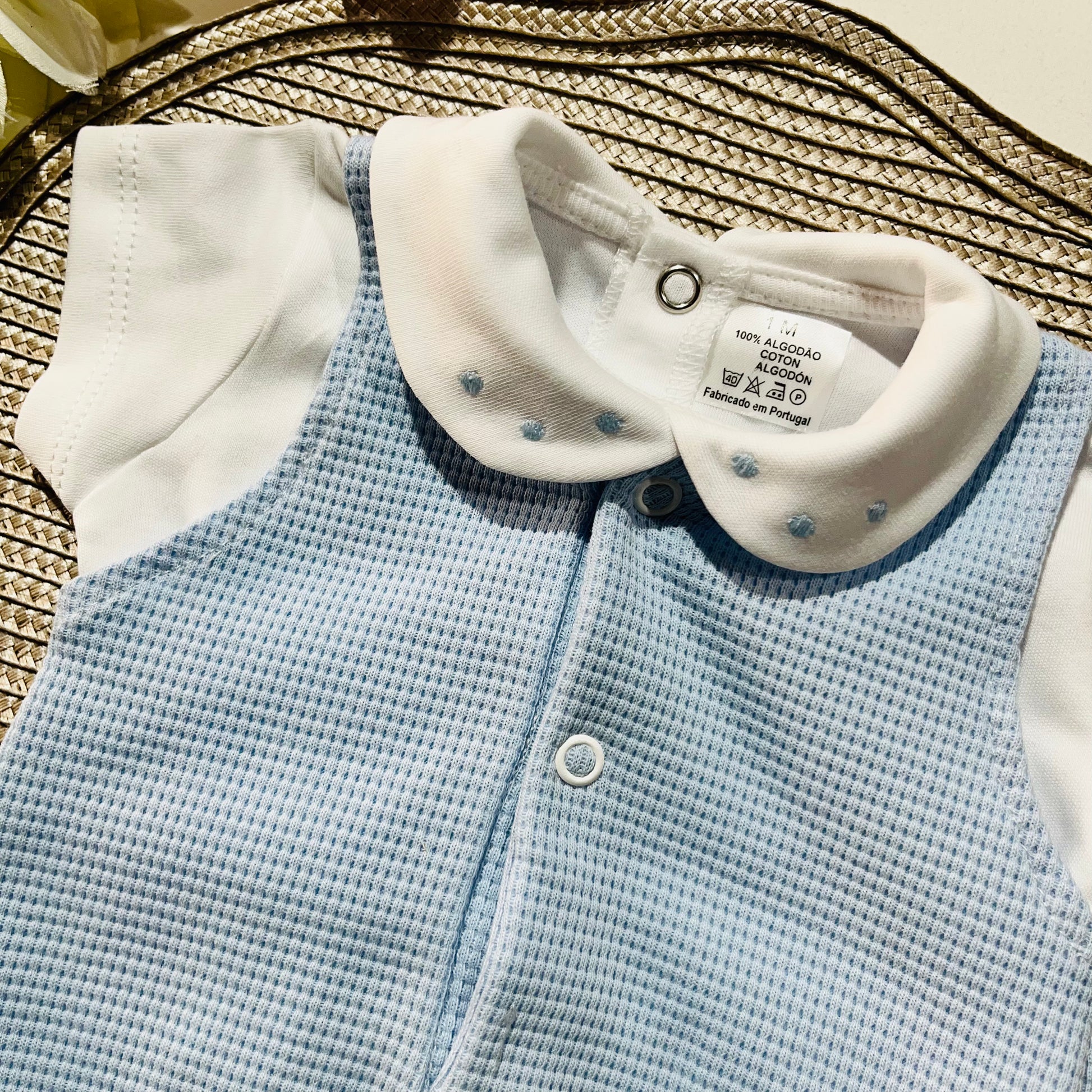 Conjunto saída de maternidade para bebé - Fofo e camisa em azul bebé - Pintinhas