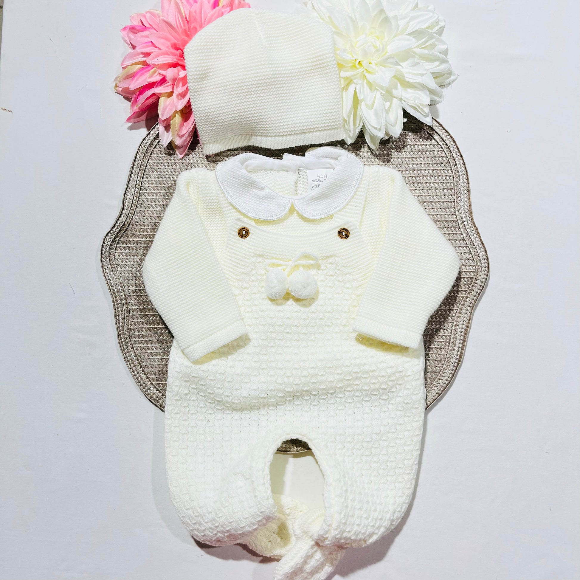 Composto por: Jardineira, camisola com gola e gorro