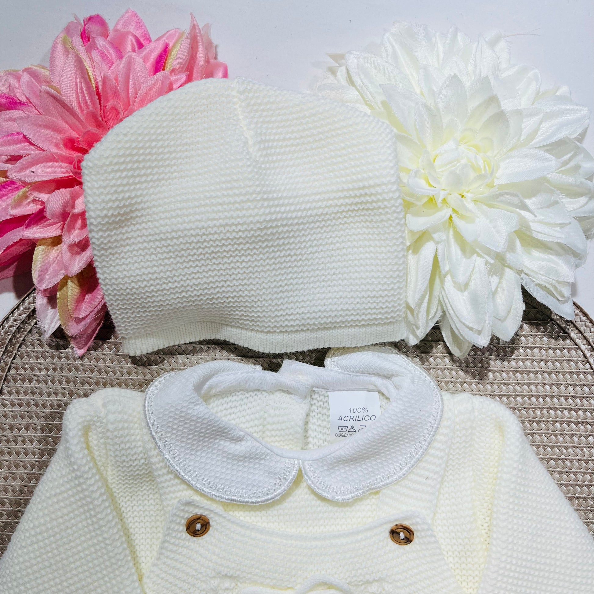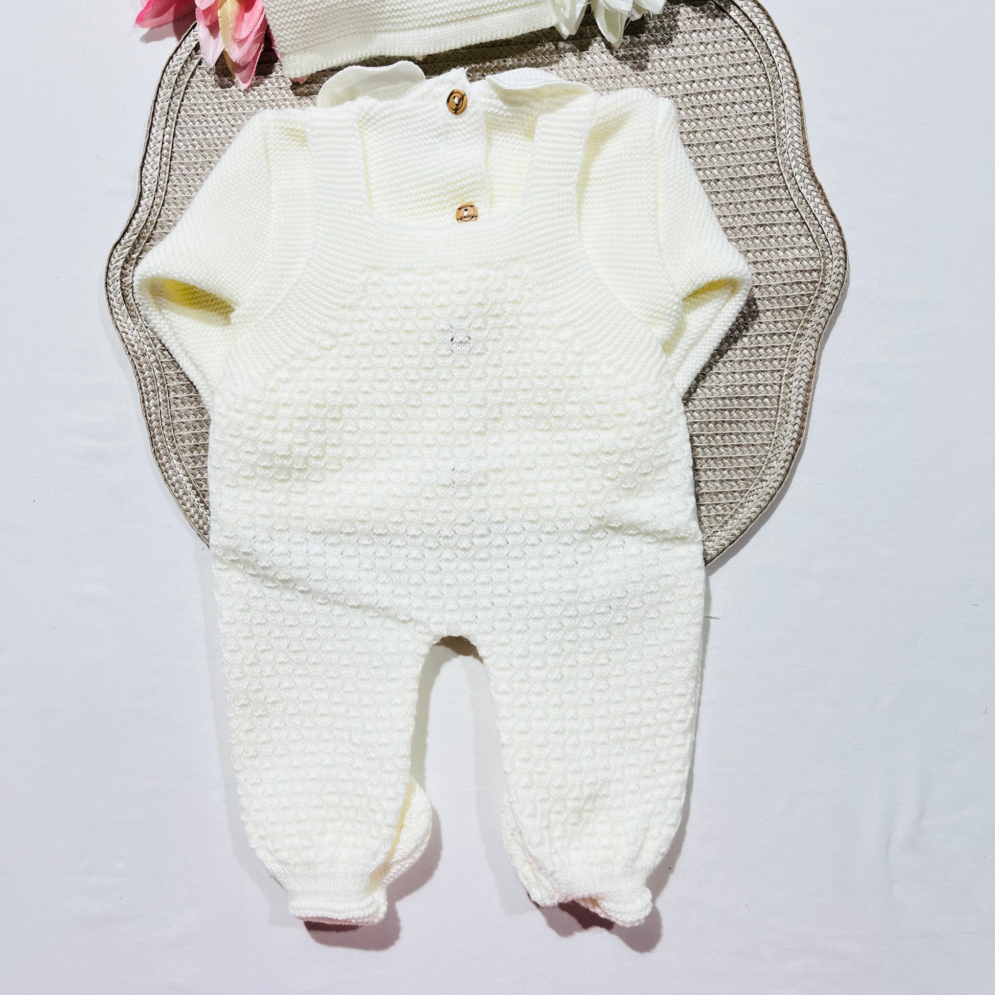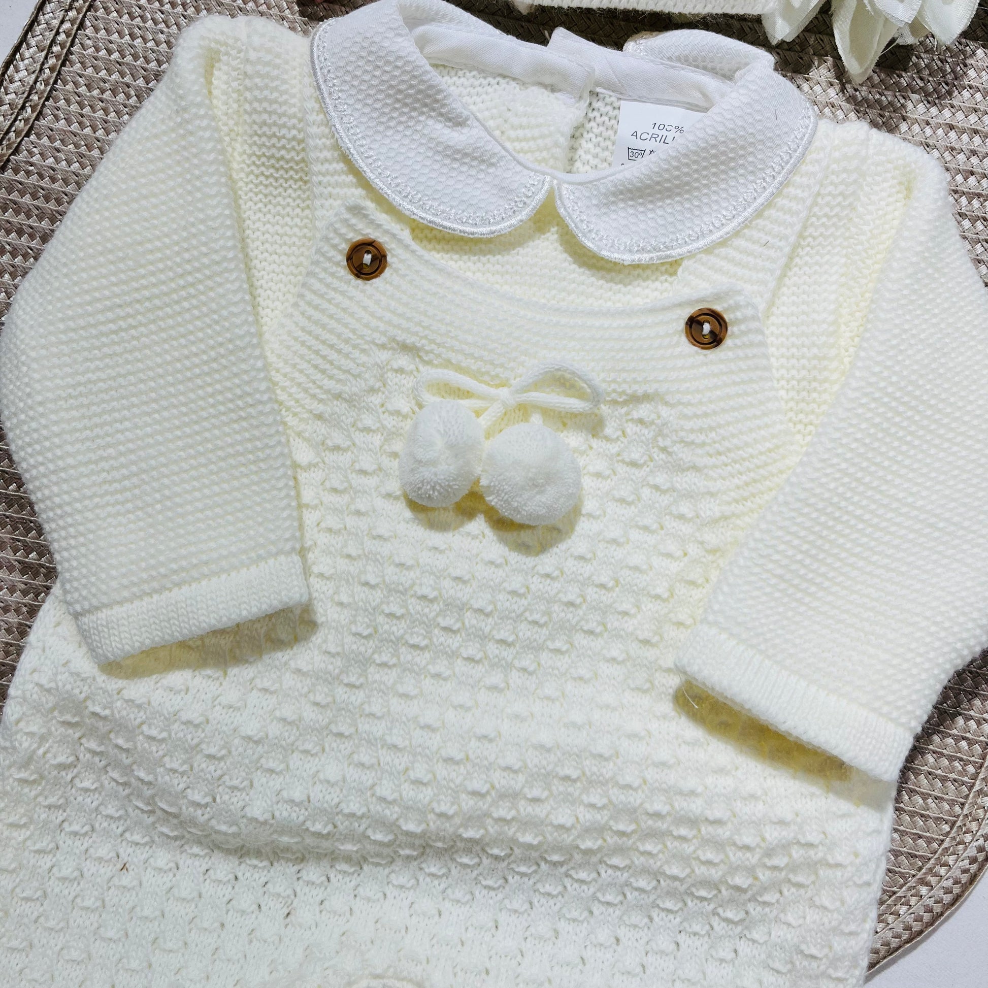 Conjunto todo em malha suave, quentinha e trabalhada o que o torna muito bonito