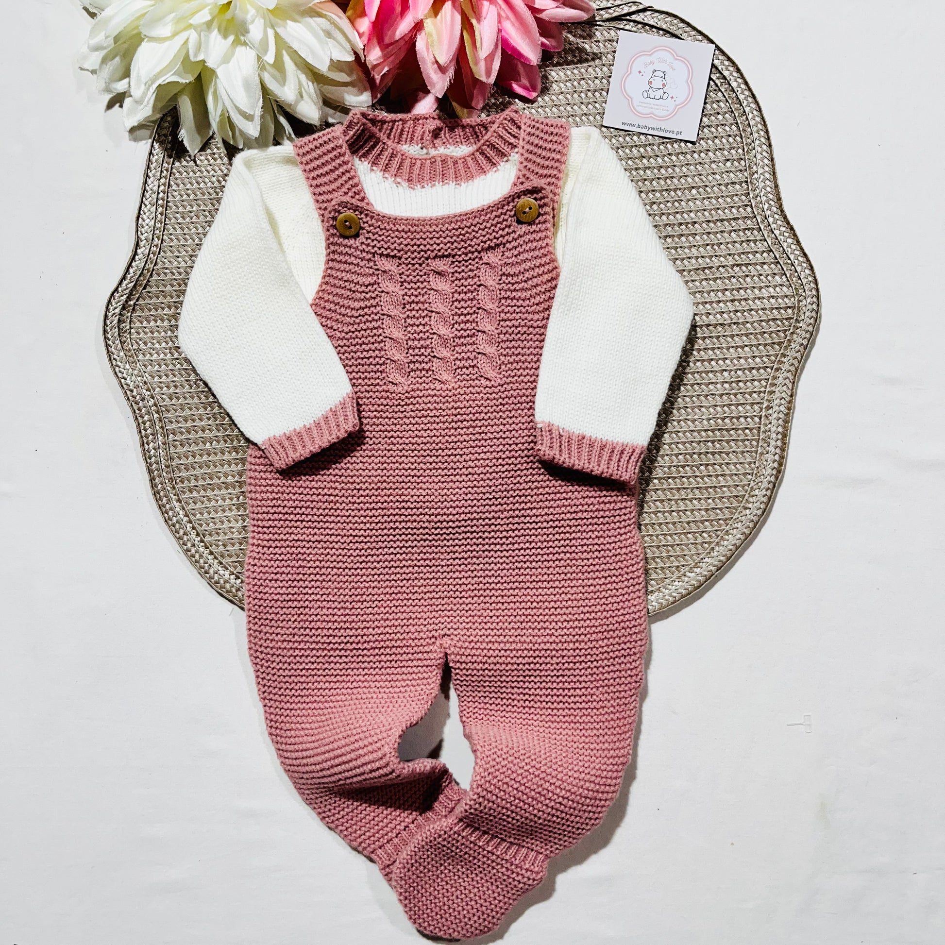 Conjunto de malha para bebé Aconchego - Rosa velho - 1M, 3M e 6M