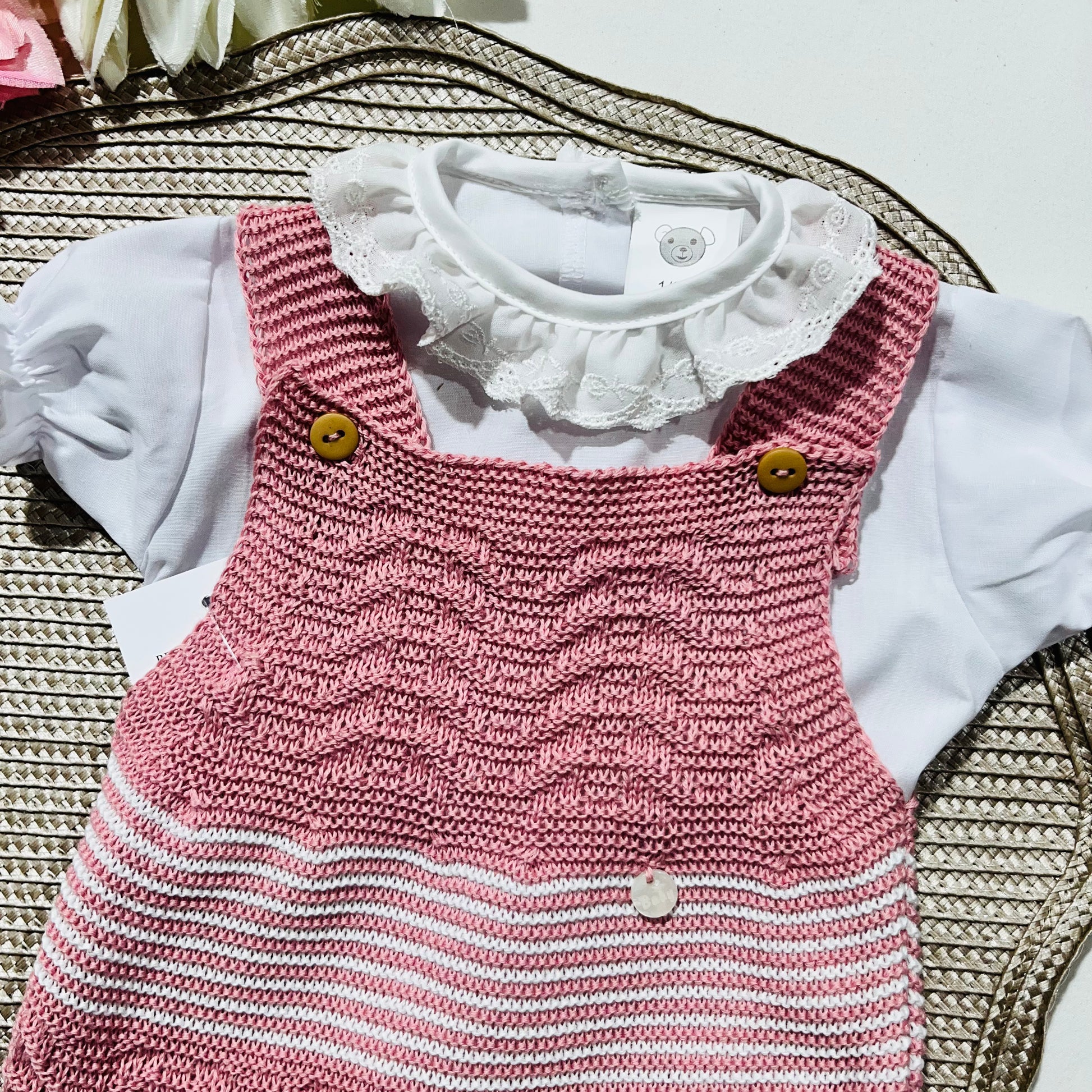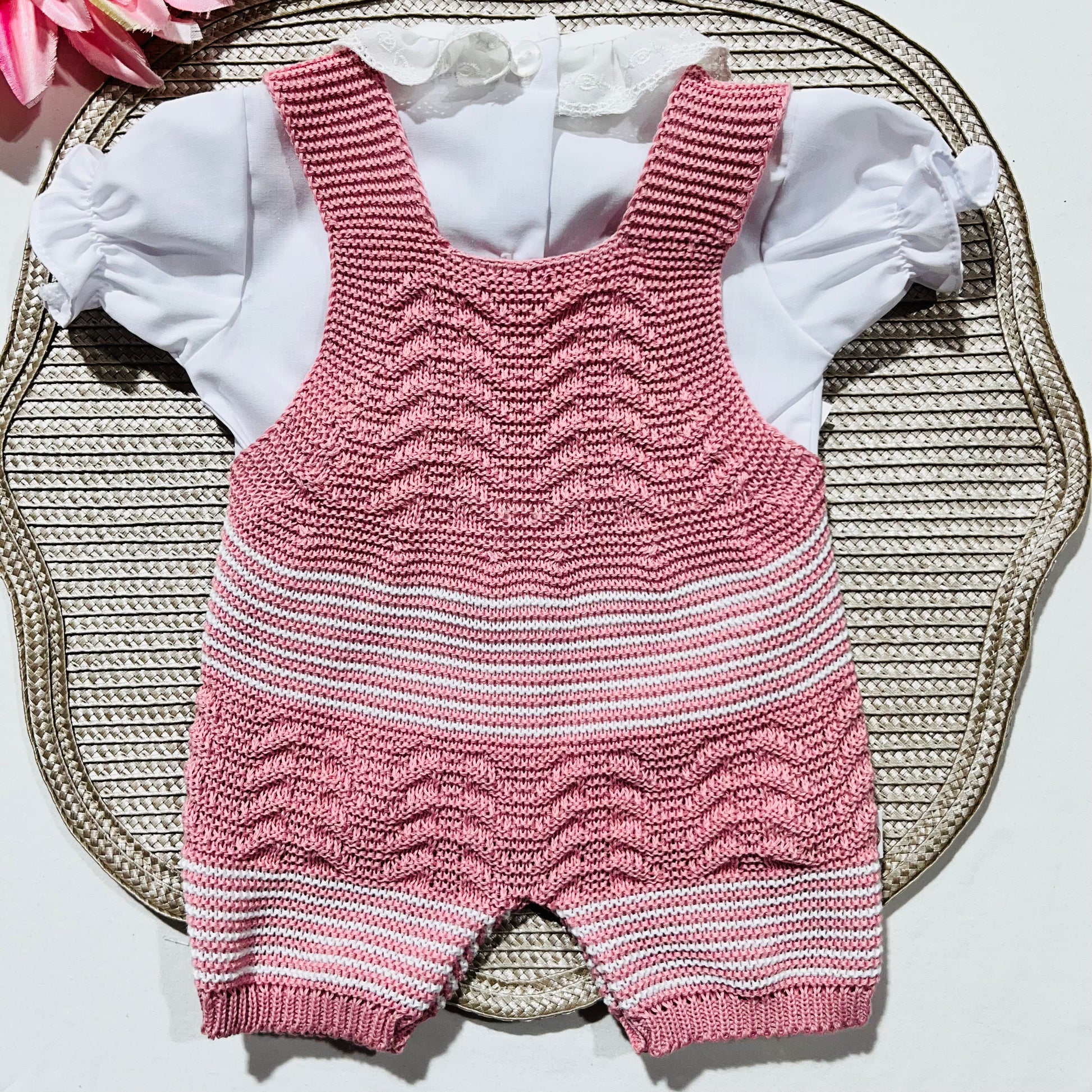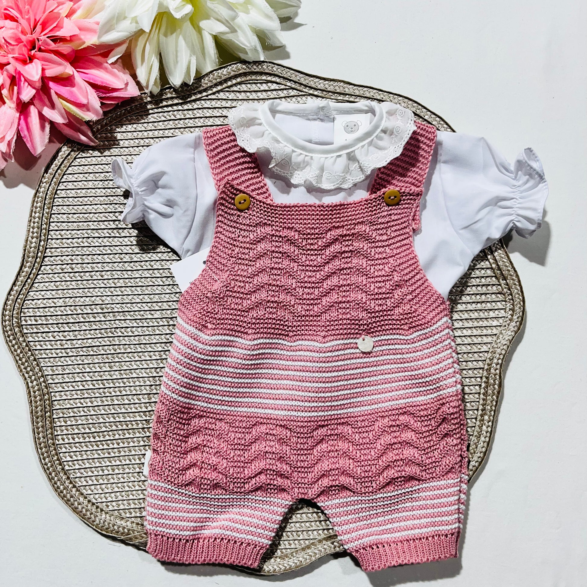 Conjunto saída de maternidade para bebé - Conjunto de Malha para Bebé - Macacão e camisa em Rosa velho