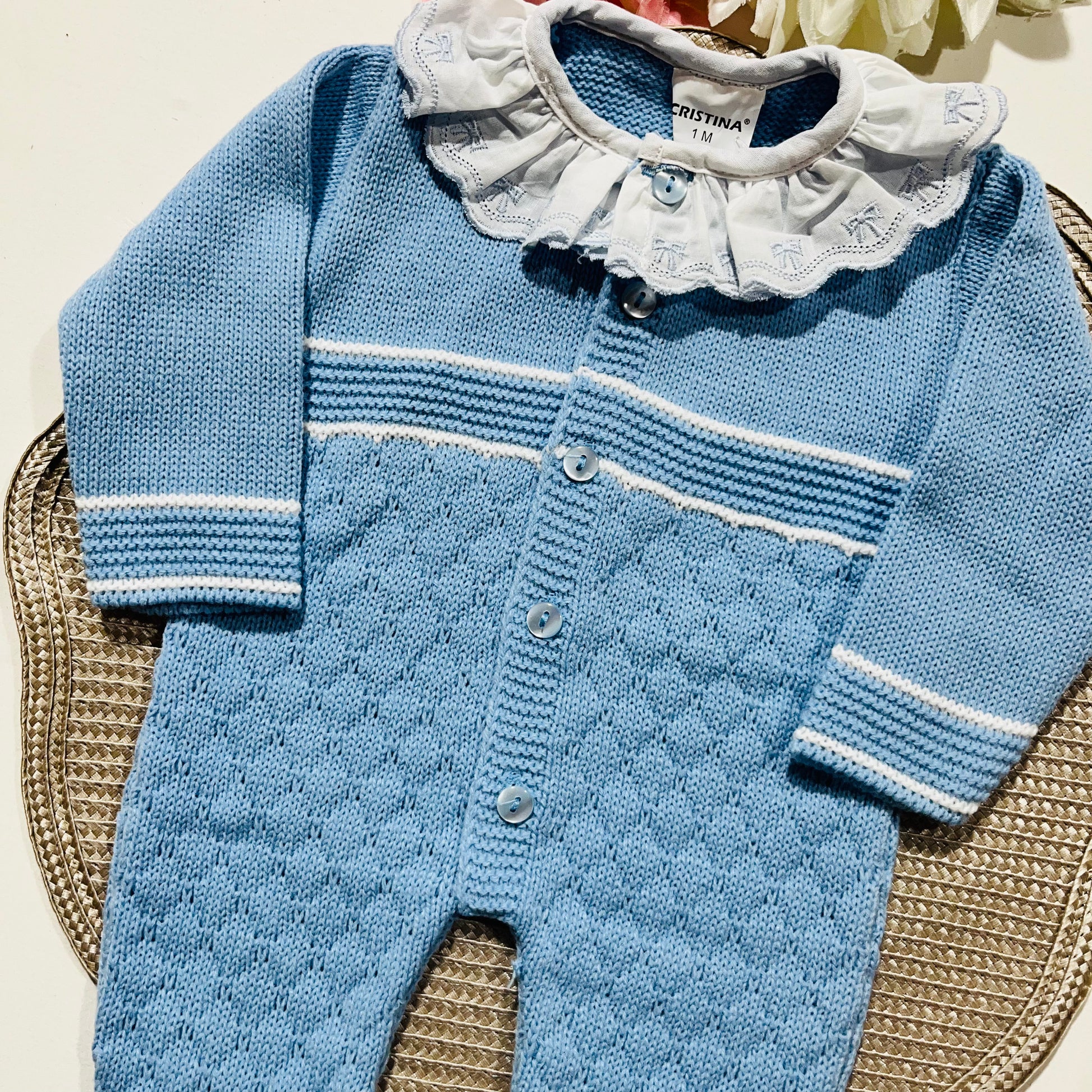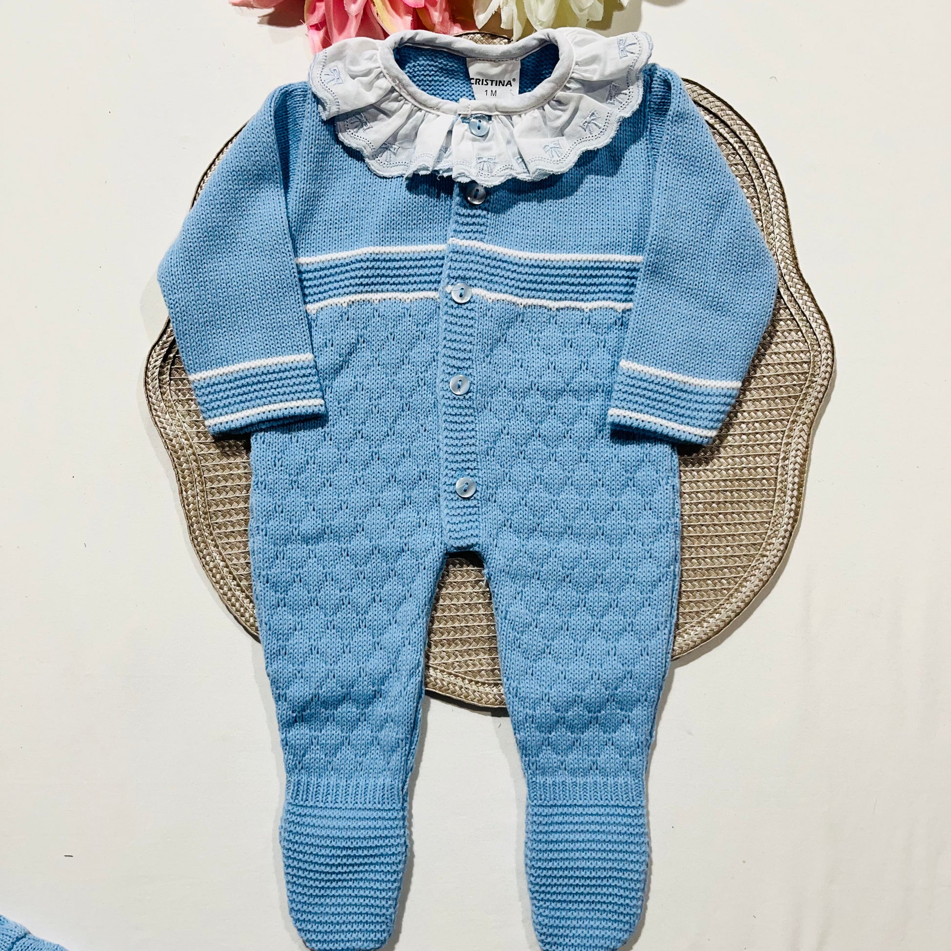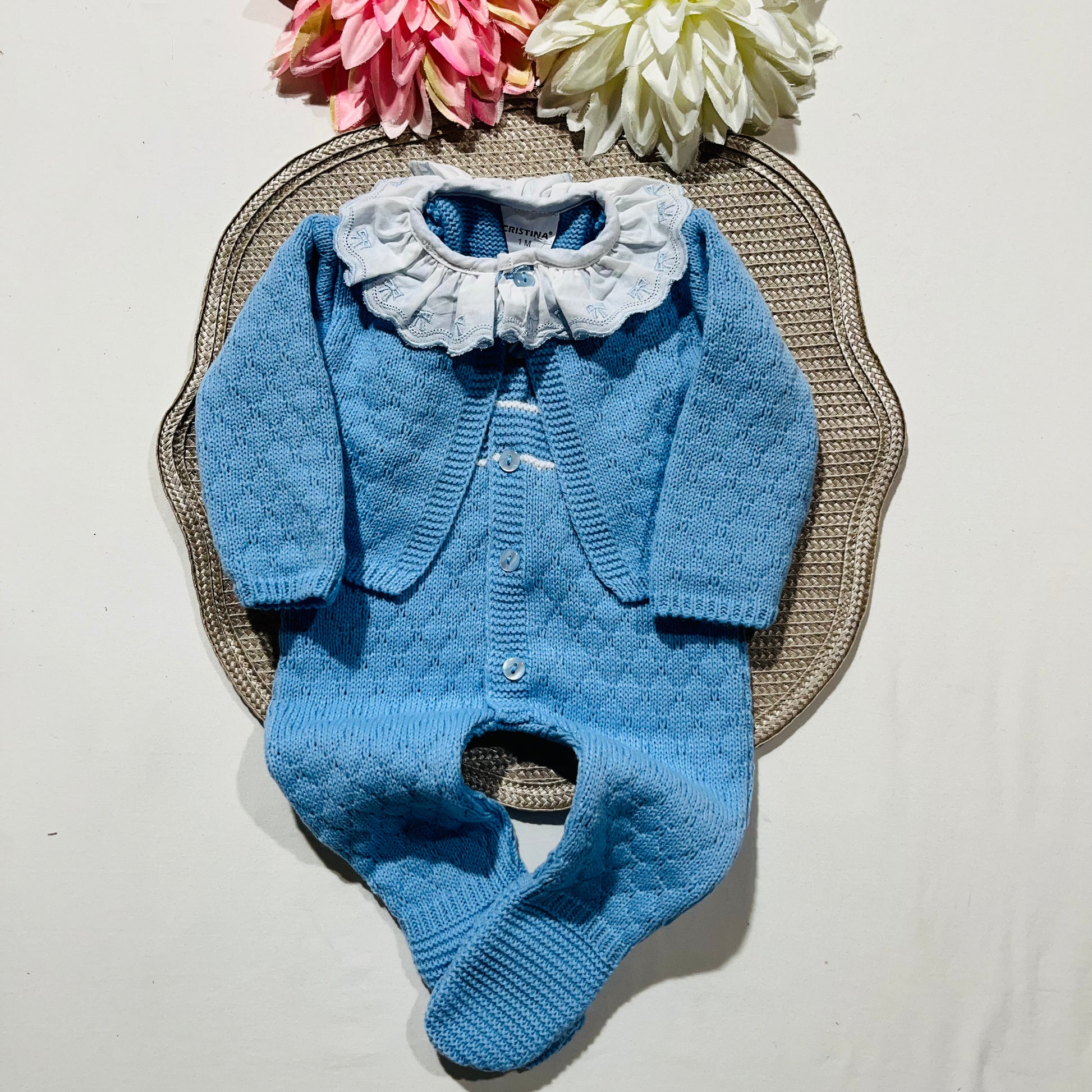 Conjunto Dinis em malha para bebé - 1,3 e 6M -Azul