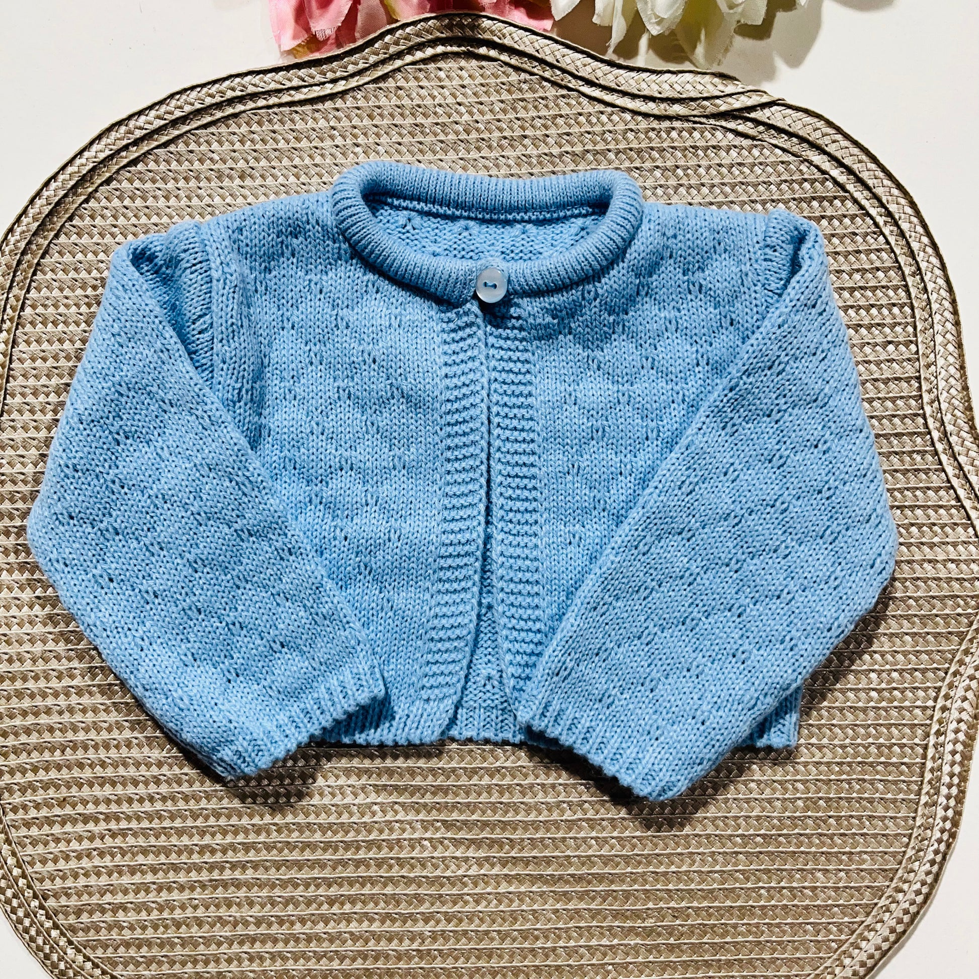 A malha é suave e quentinha. É uma linda e óptima sugestão para saída de maternidade.