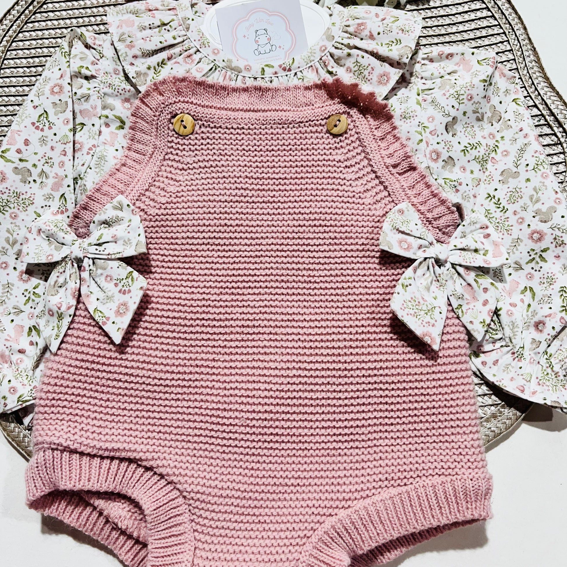 Conjunto Flor para bebé - Rosa velho - 1 aos 12M