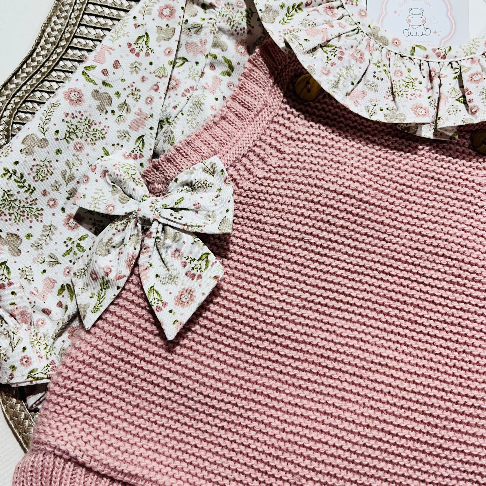 Composto por: Fofo em malha suave com lacinhos e camisa com padrão de flores com golinha.