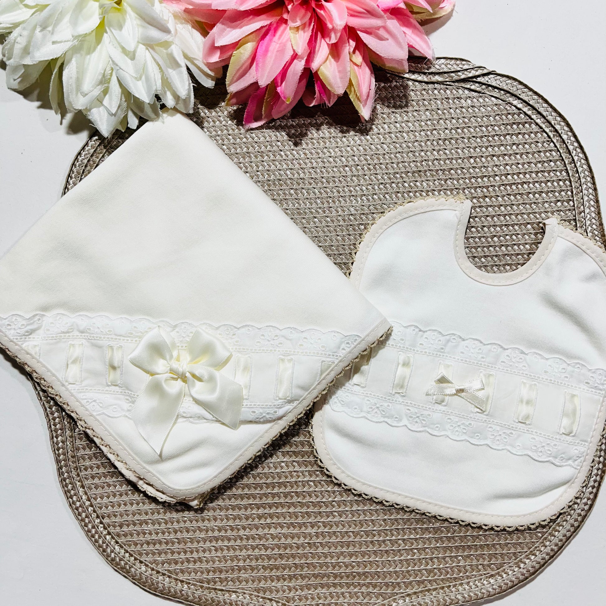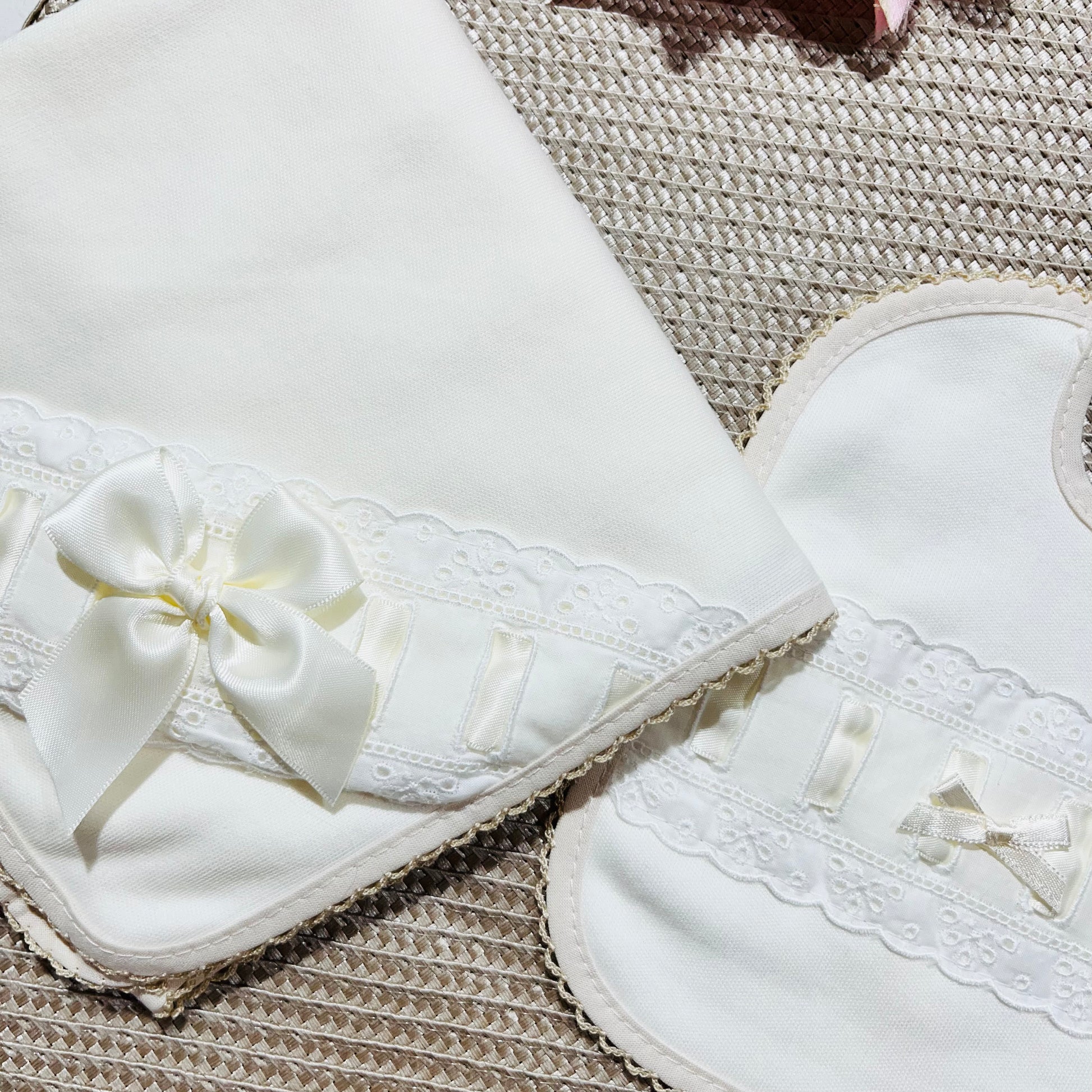Conjunto fralda e babete bordado inglês - Com ou Sem personalização