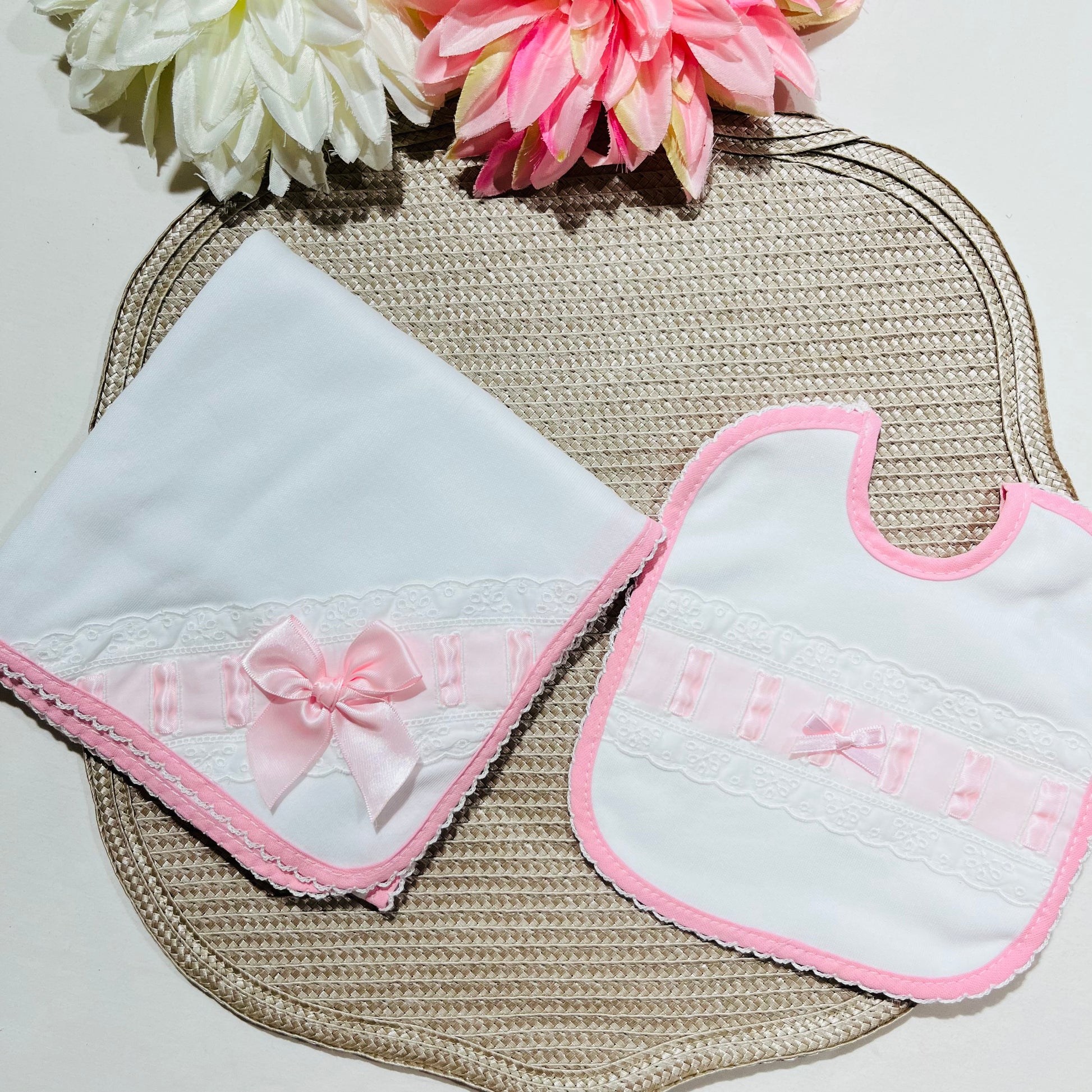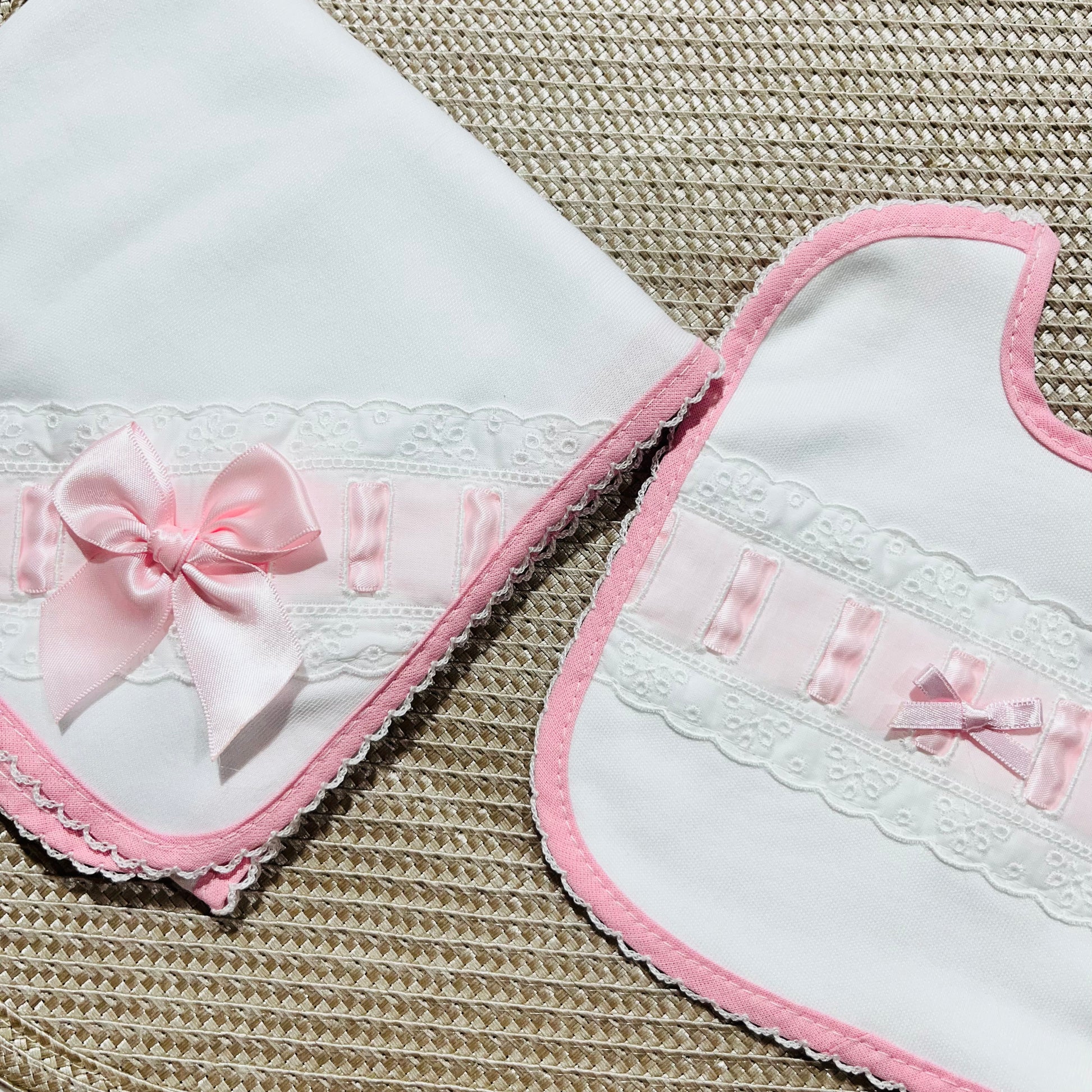Conjunto fralda e babete bordado inglês - Com ou Sem personalização