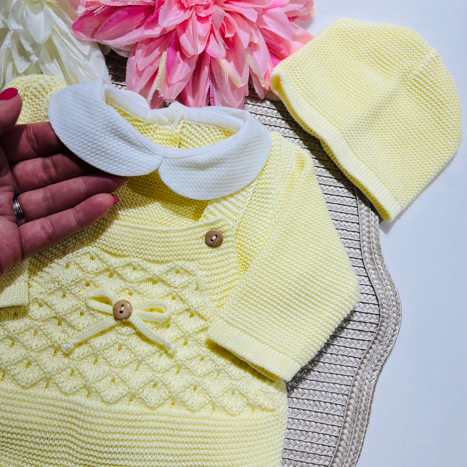 Conjunto jardineira em algodão para bebé - 3 peças -Amarelo bebé