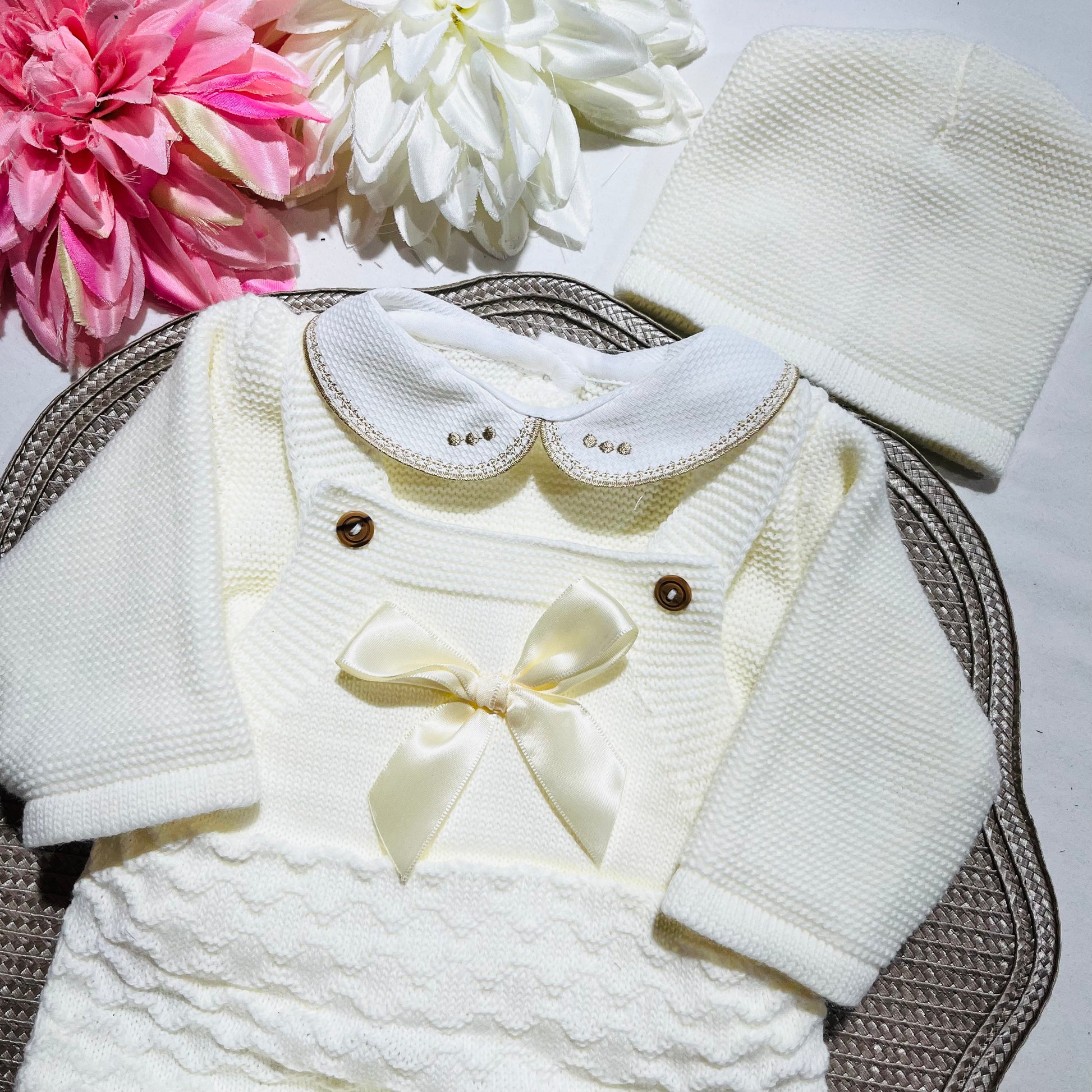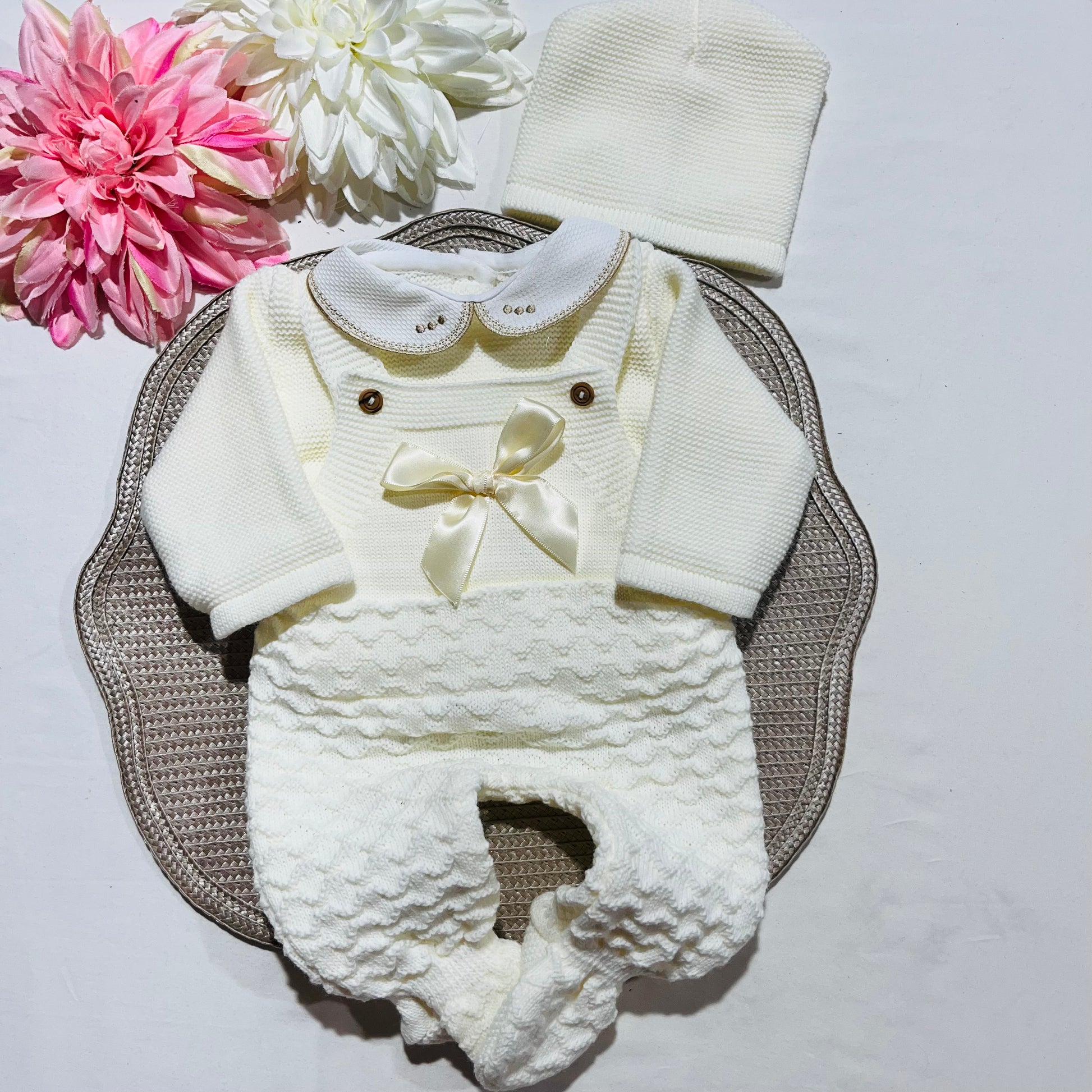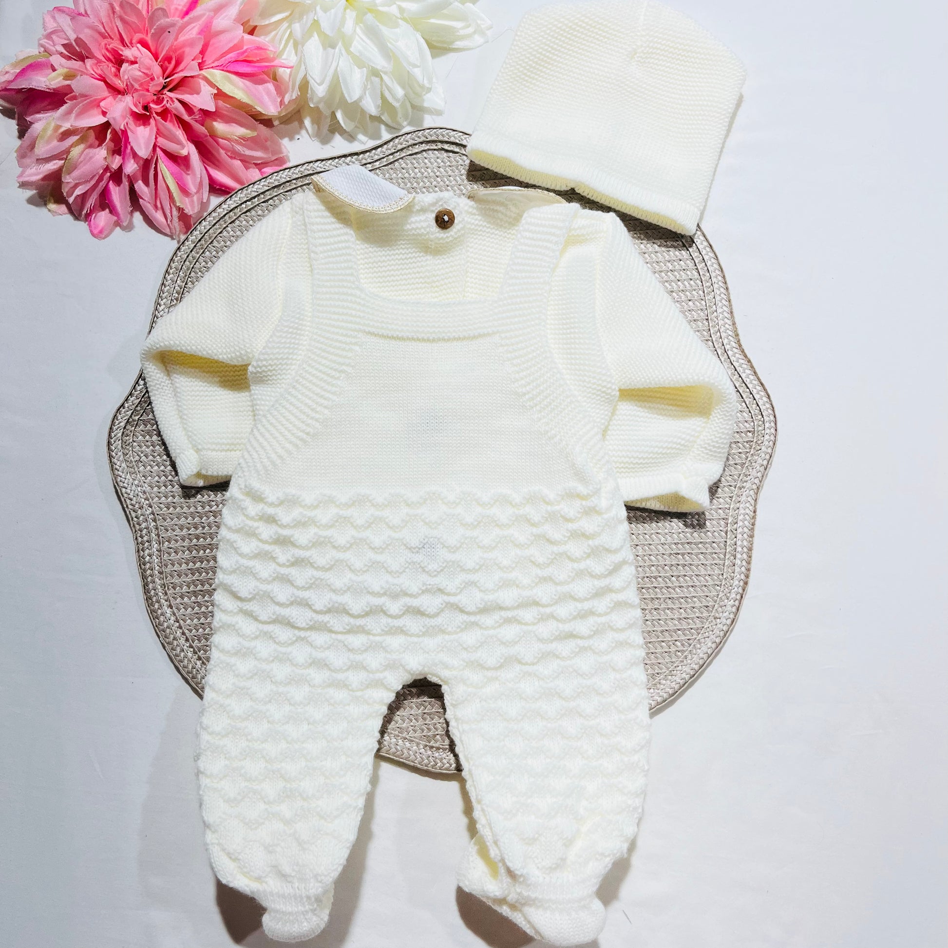 Conjunto jardineira para bebé em malha - 3 peças - 1/3M - Pérola