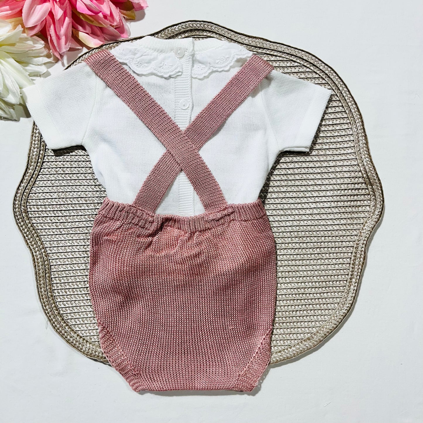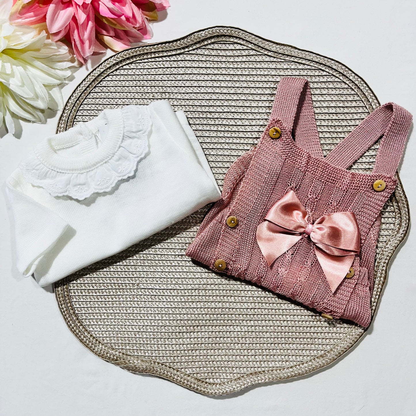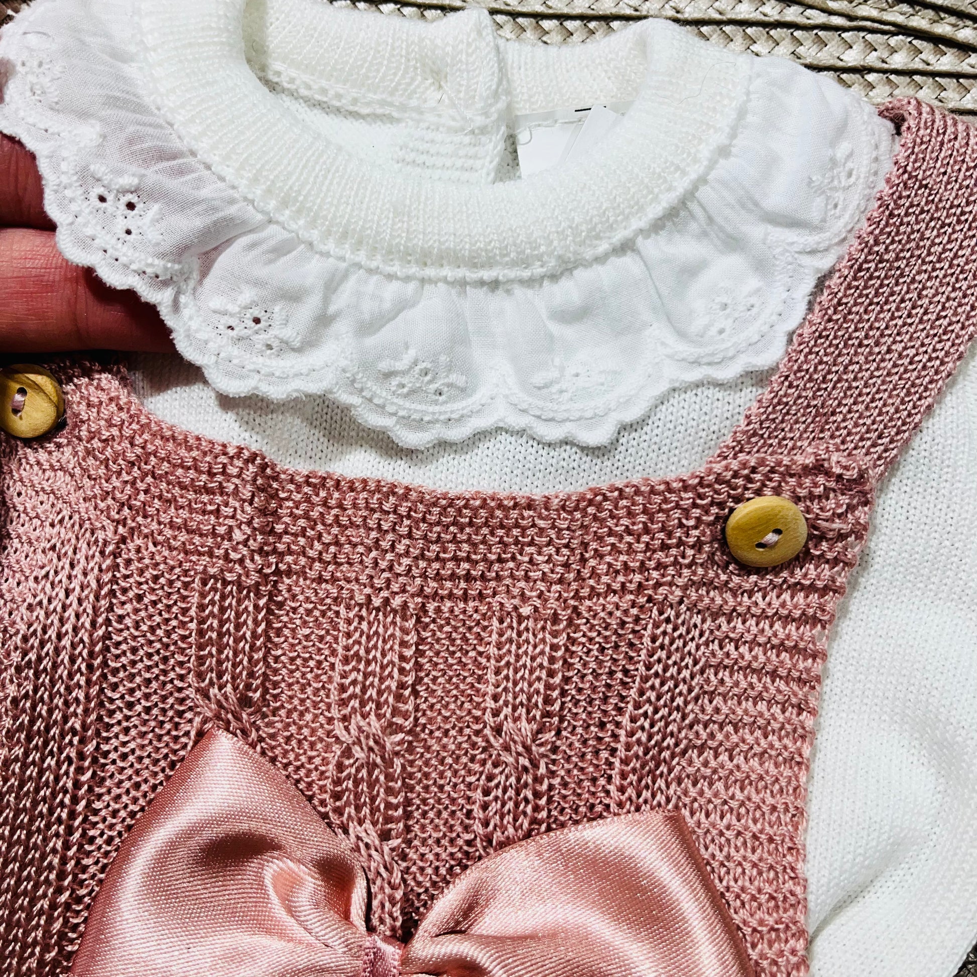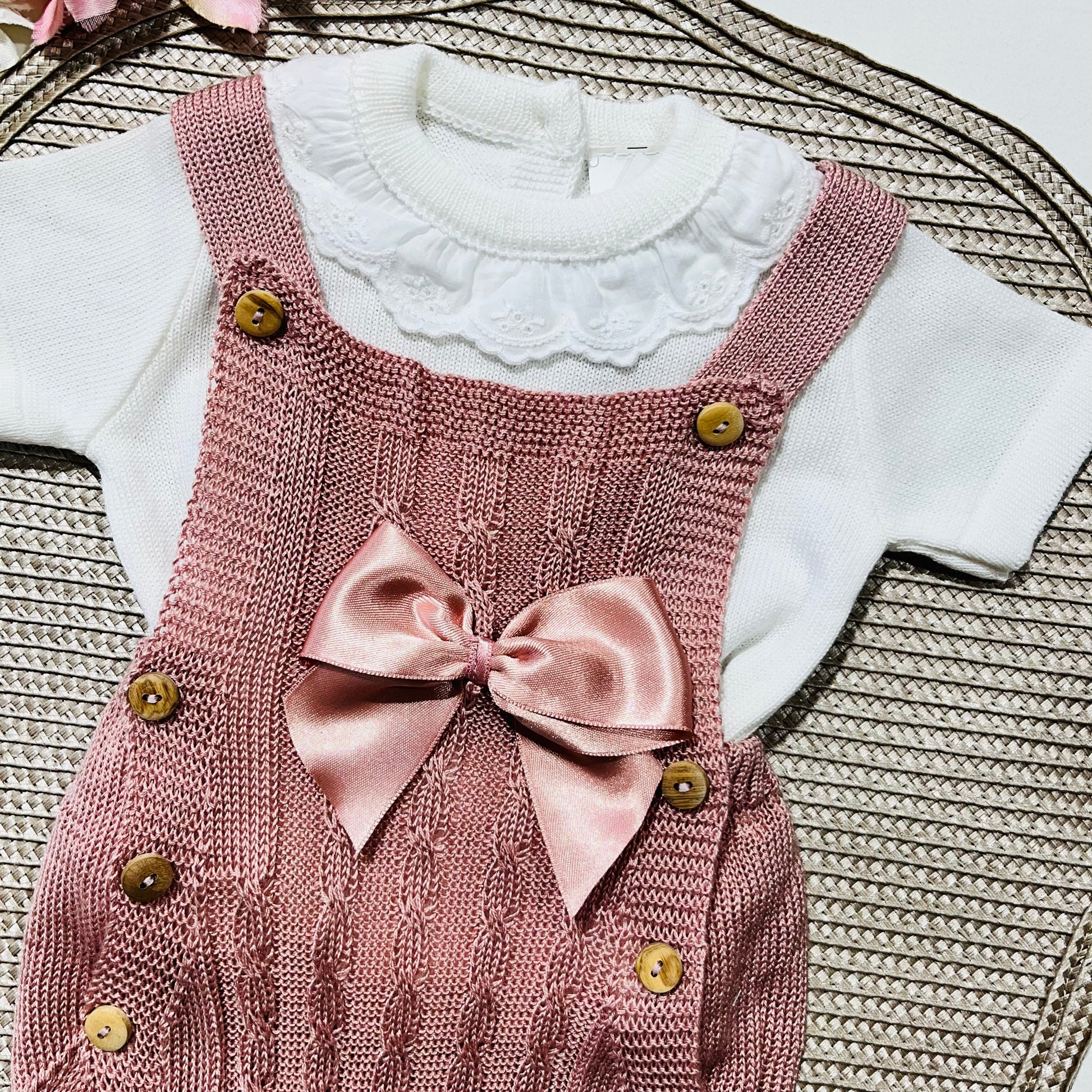 Conjunto saída de maternidade para bebé - Conjunto Laço de bebé em malha - Rosa velho - 2 peças