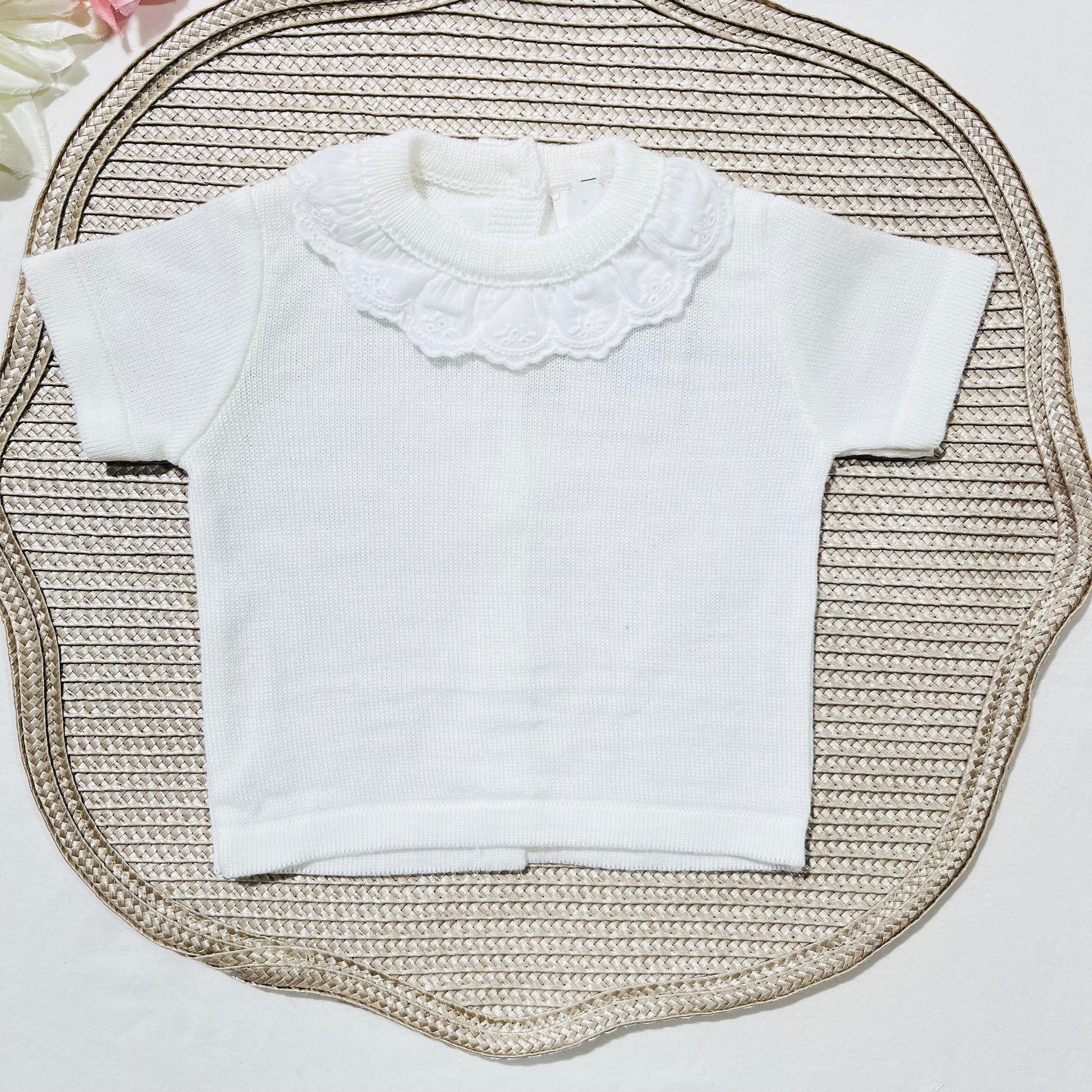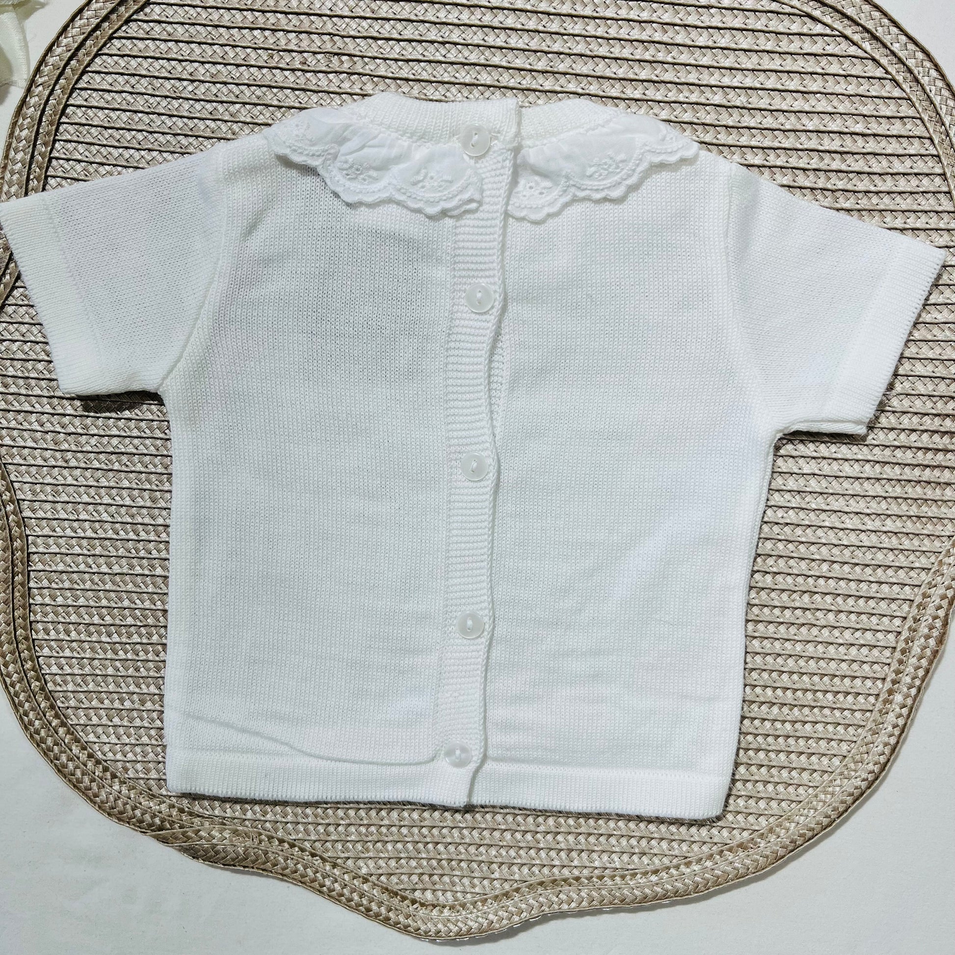 Composto por: Fofo de alças ajustáveis com abertura fácil para troca da fralda e camisola de manga curta com gola de bordado inglês e abertura fácil atrás.