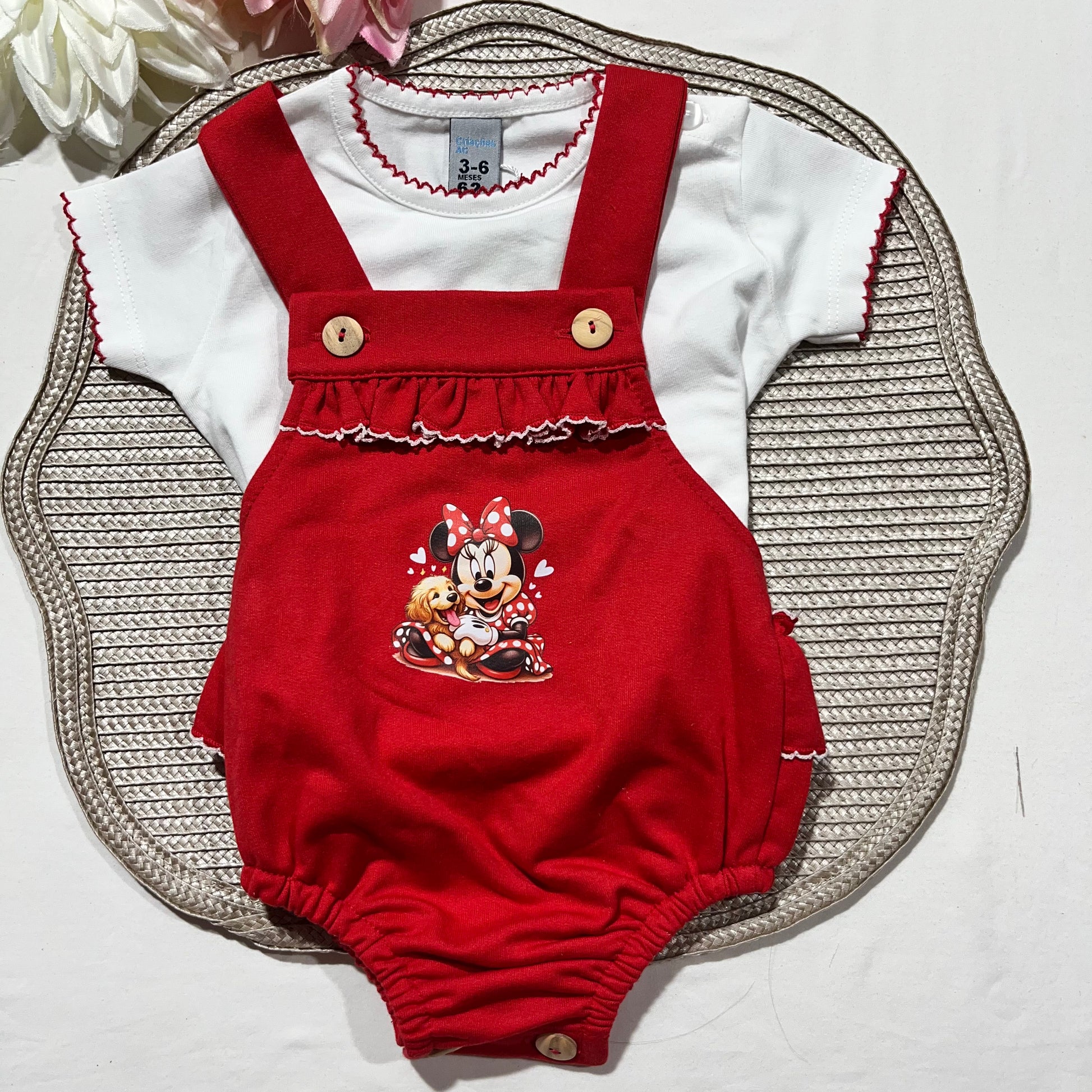 Conjunto para bebé Minnie - Algodão em Vermelho