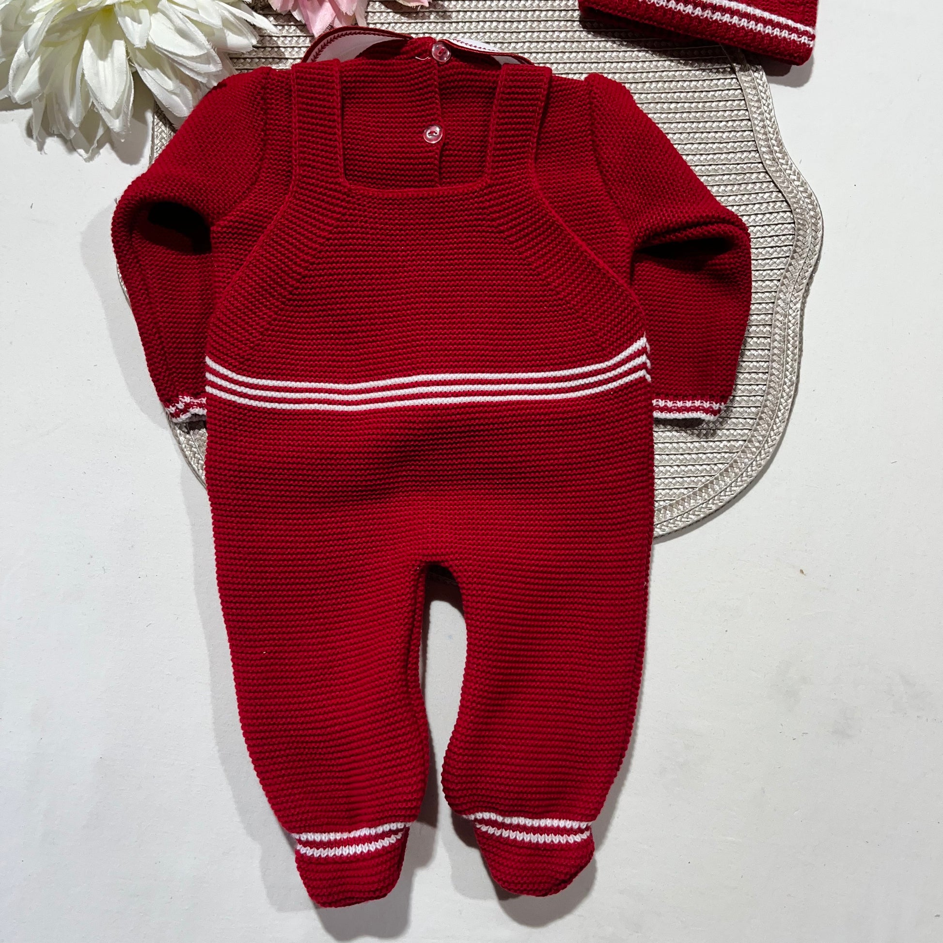 Conjunto Pompom de malha para bebé - Vermelho - 0/2M