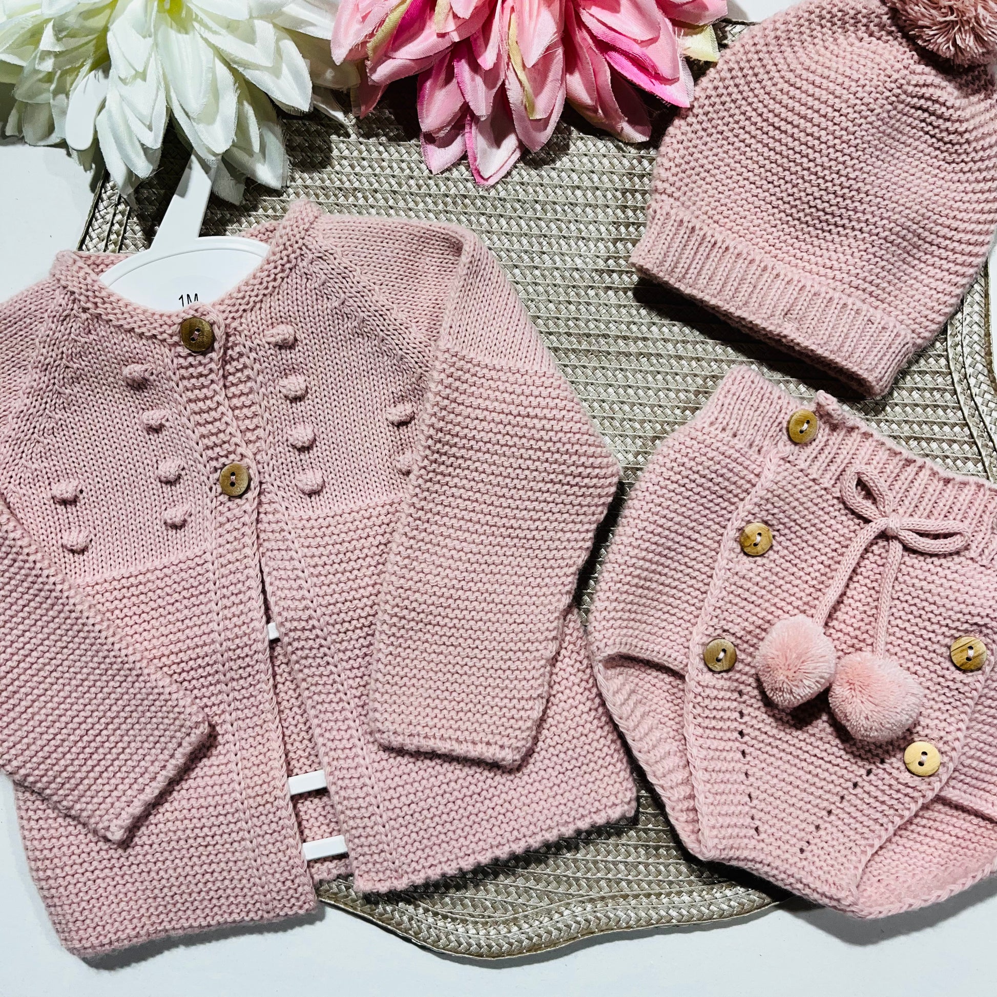 Este amoroso conjunto é ideal para saída de maternidade, em malha suave vai manter o seu bebé quente e confortável nos dias frios de Outono/Inverno.