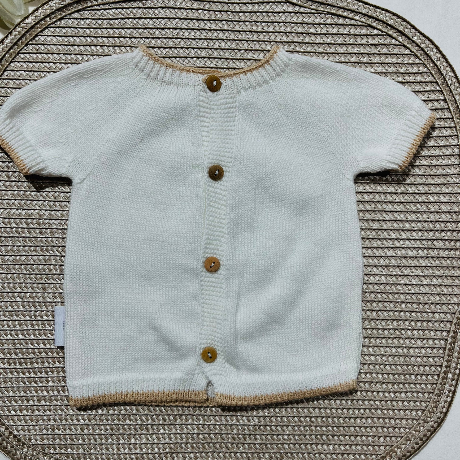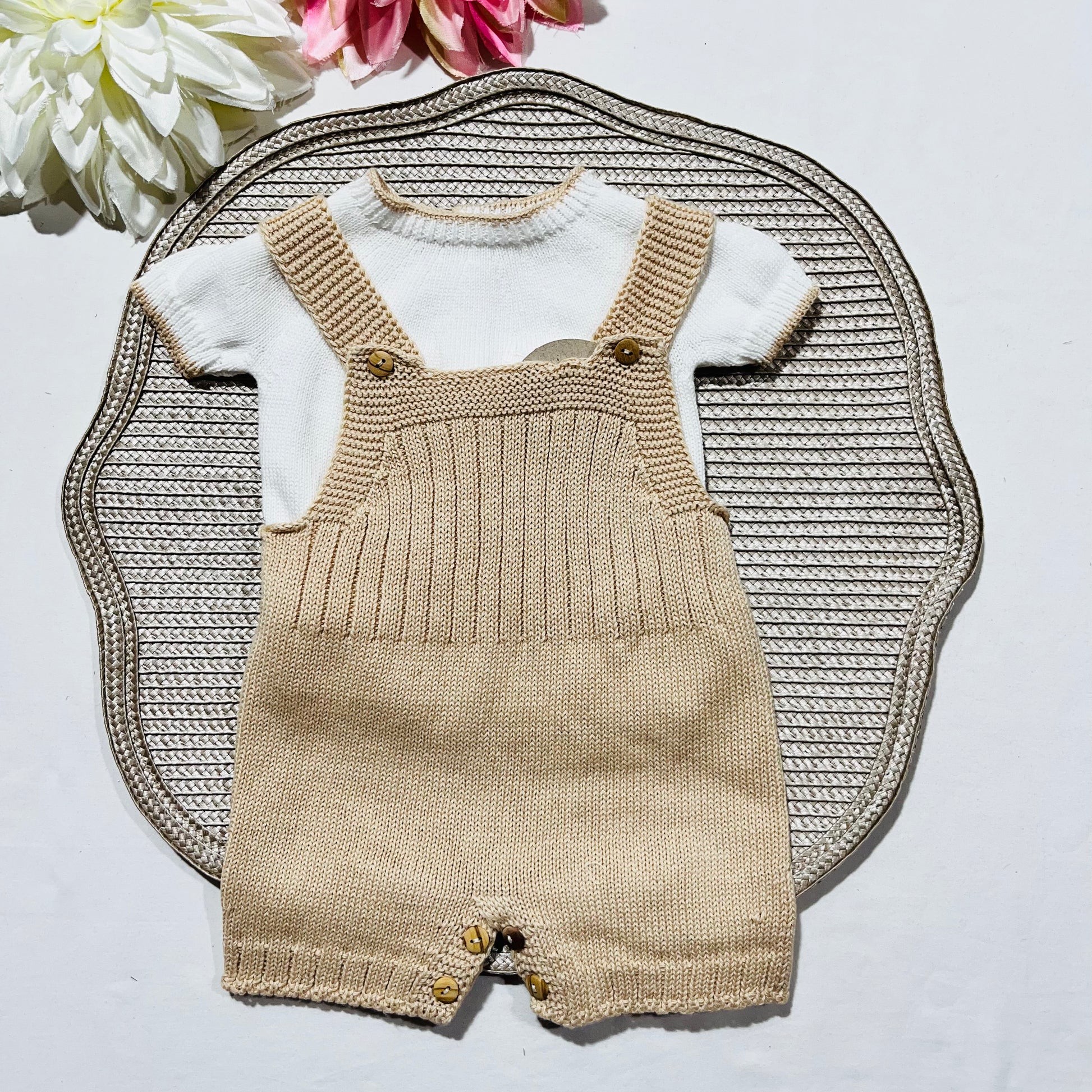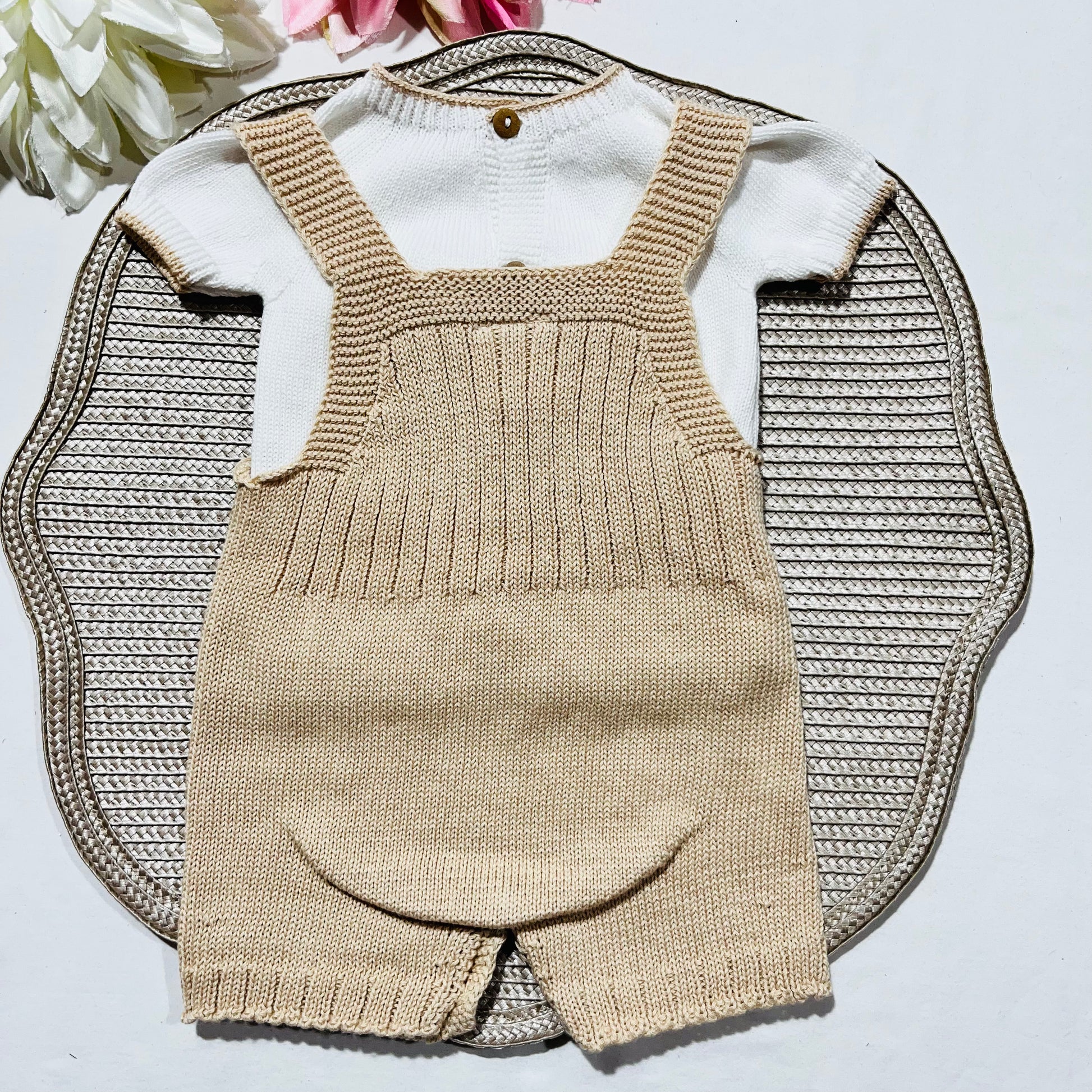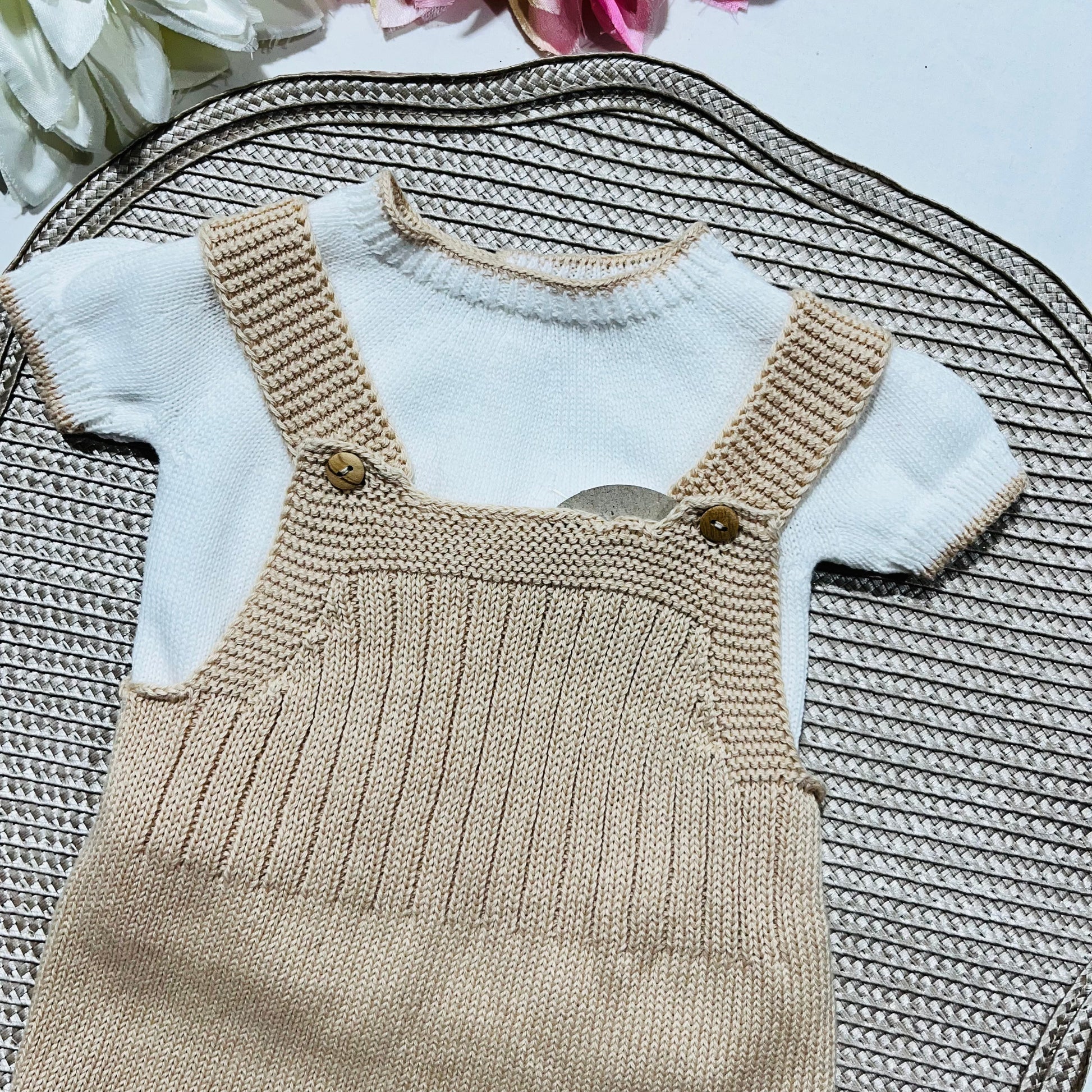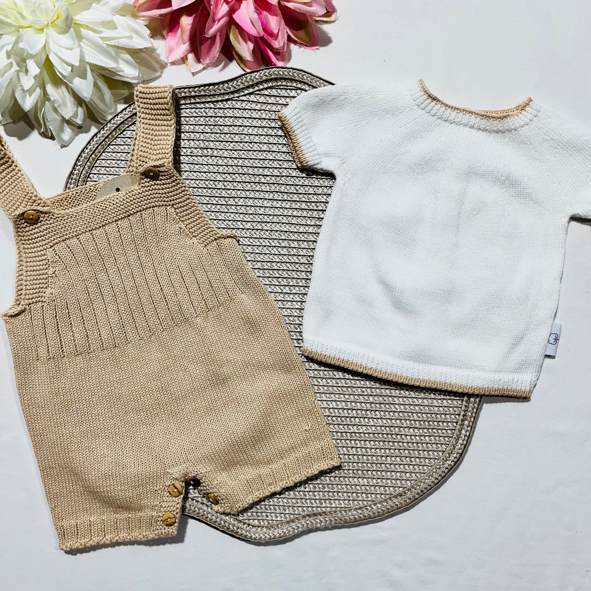 Conjunto saída de maternidade para bebé - Conjunto de malha para Bebé - Camisola e calção em Algodão - Areia