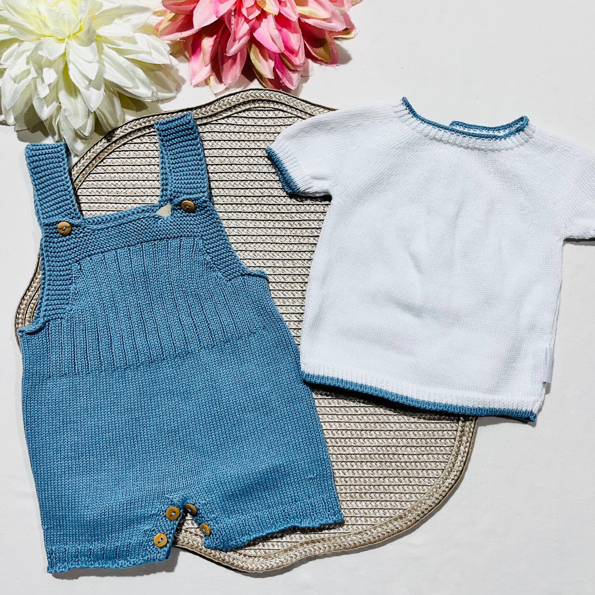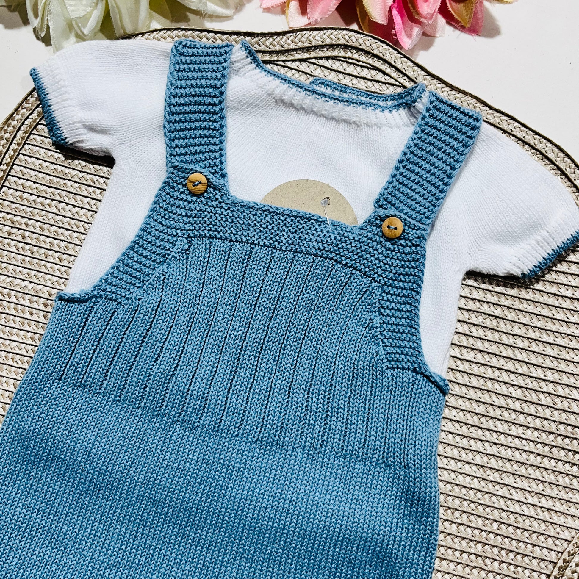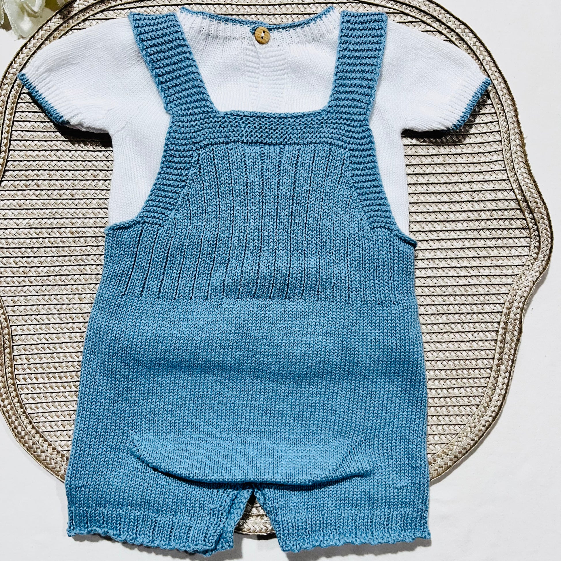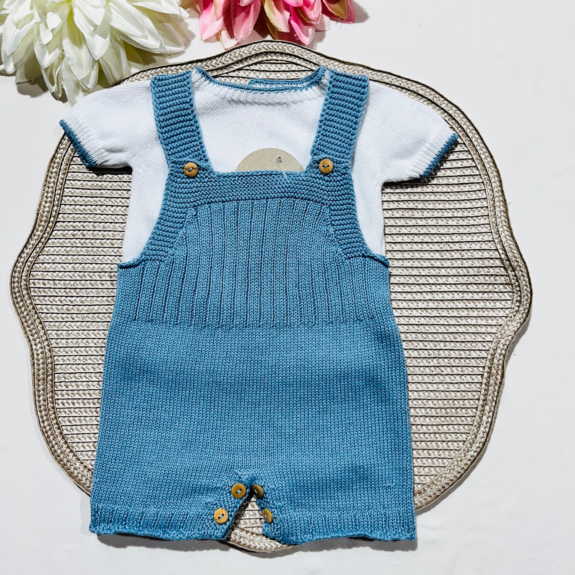 Conjunto saída de maternidade para bebé - Conjunto de malha para Bebé - Camisola e calção em Algodão - Azul Cobalto