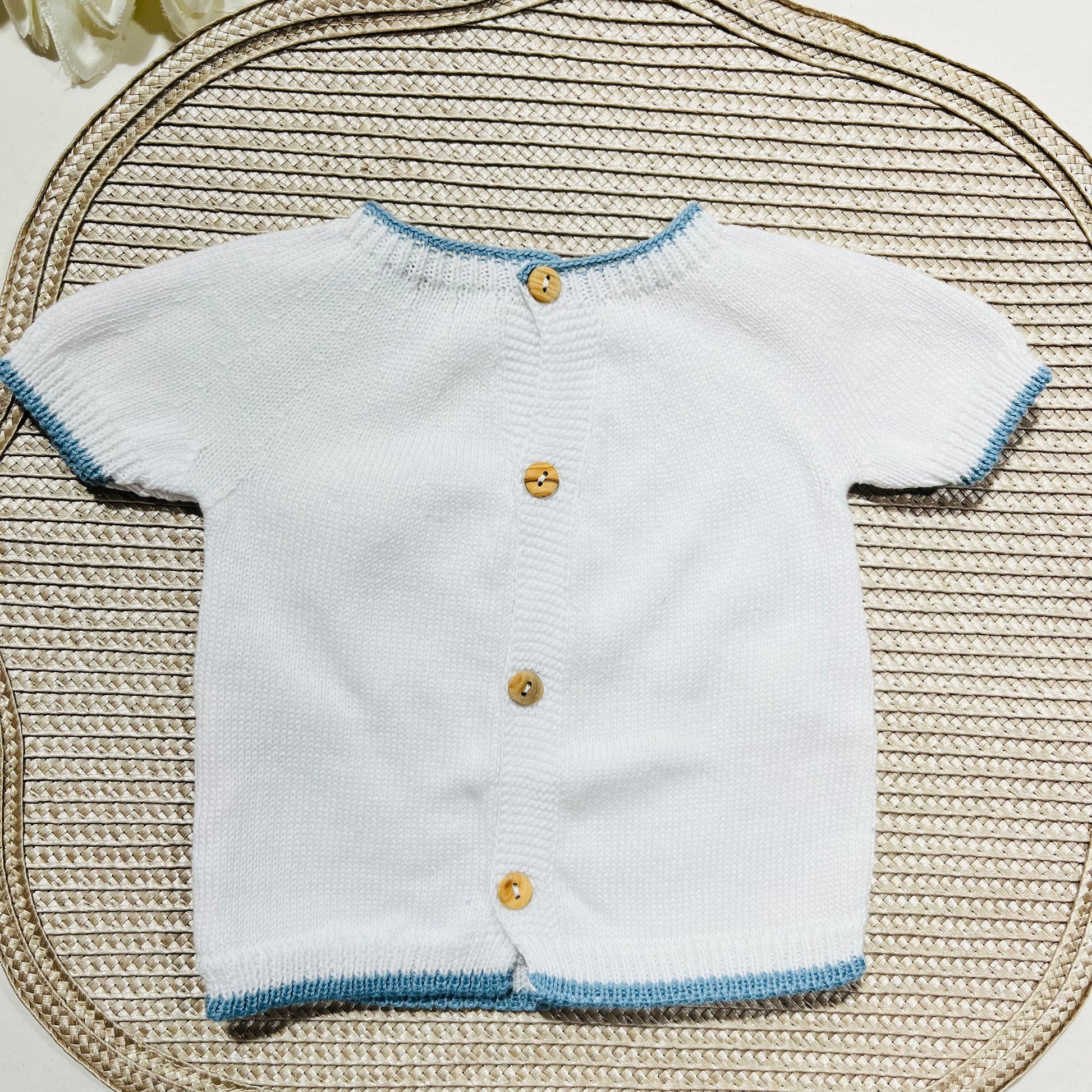 Composto por camisola de manga curta que abotoa atrás e calção com malha canelada no peito e com abertura fácil nas alças e entre as pernas. Além disso atrás tem uma costura no própria para a fralda assentar o que o torna um amor.