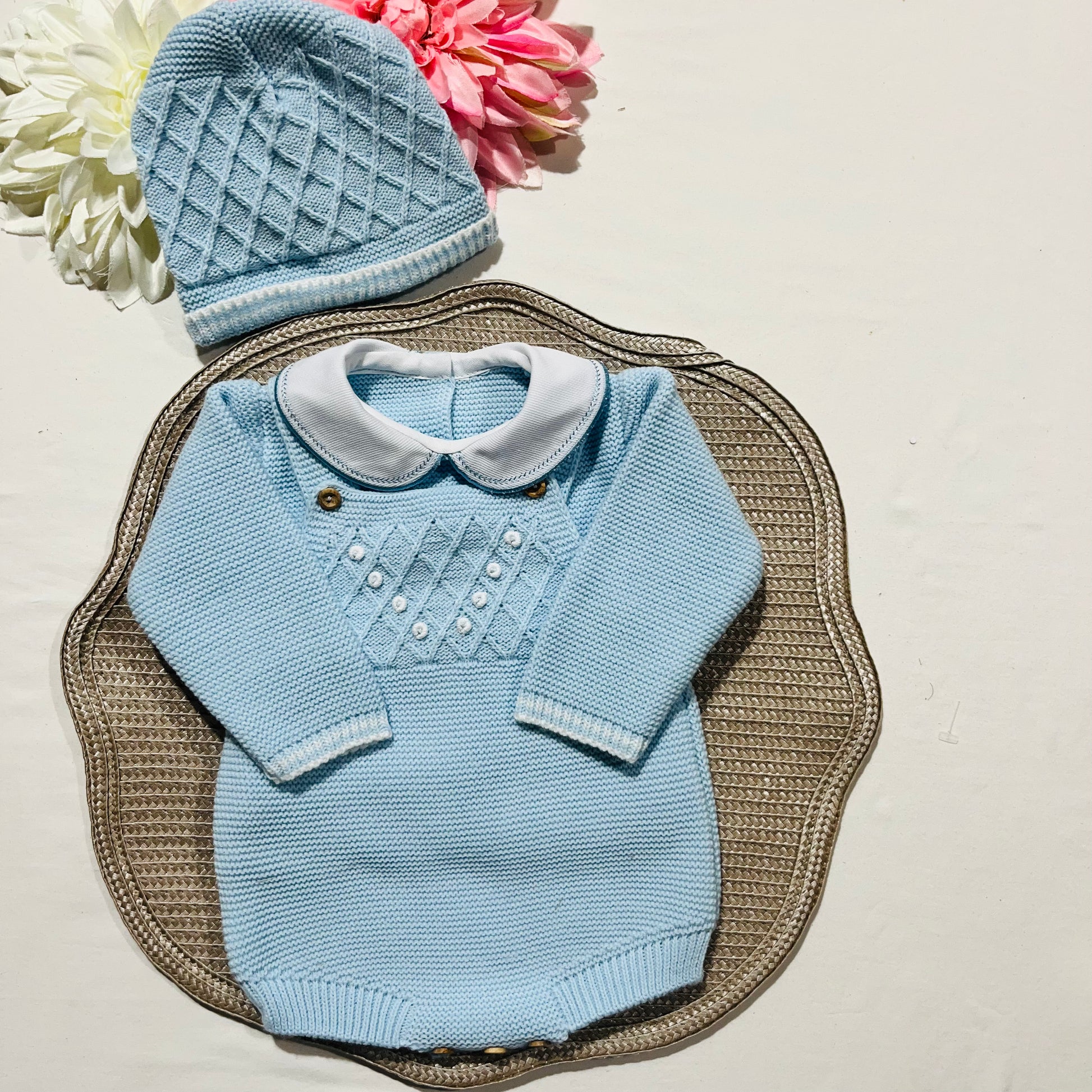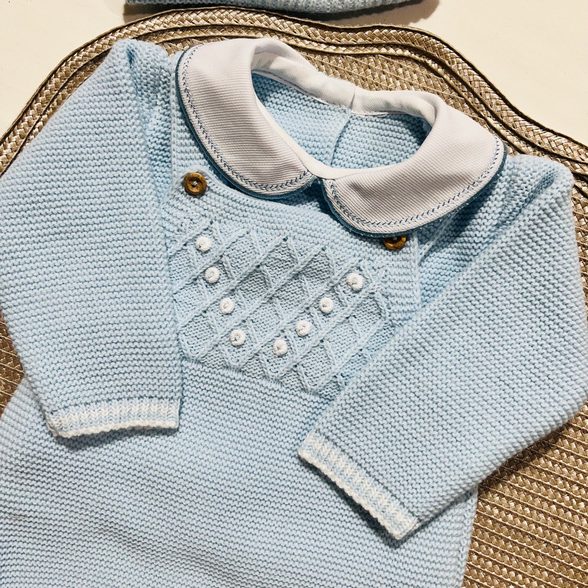 Disponível em cores suaves e elegantes, esta malha é uma opção encantadora para levar o bebé para casa com todo o carinho que ele merece.