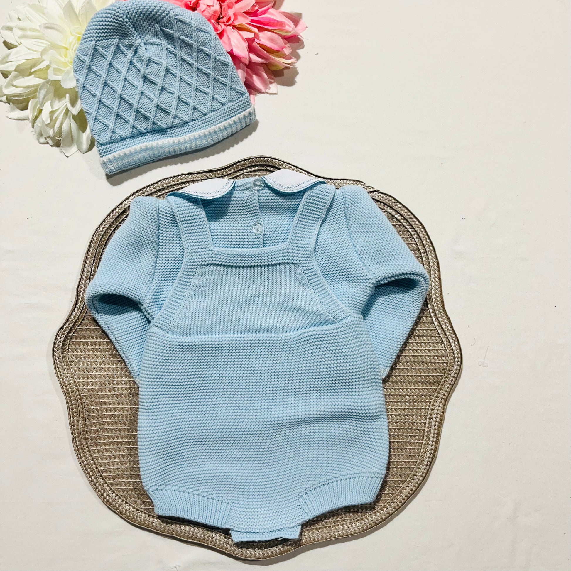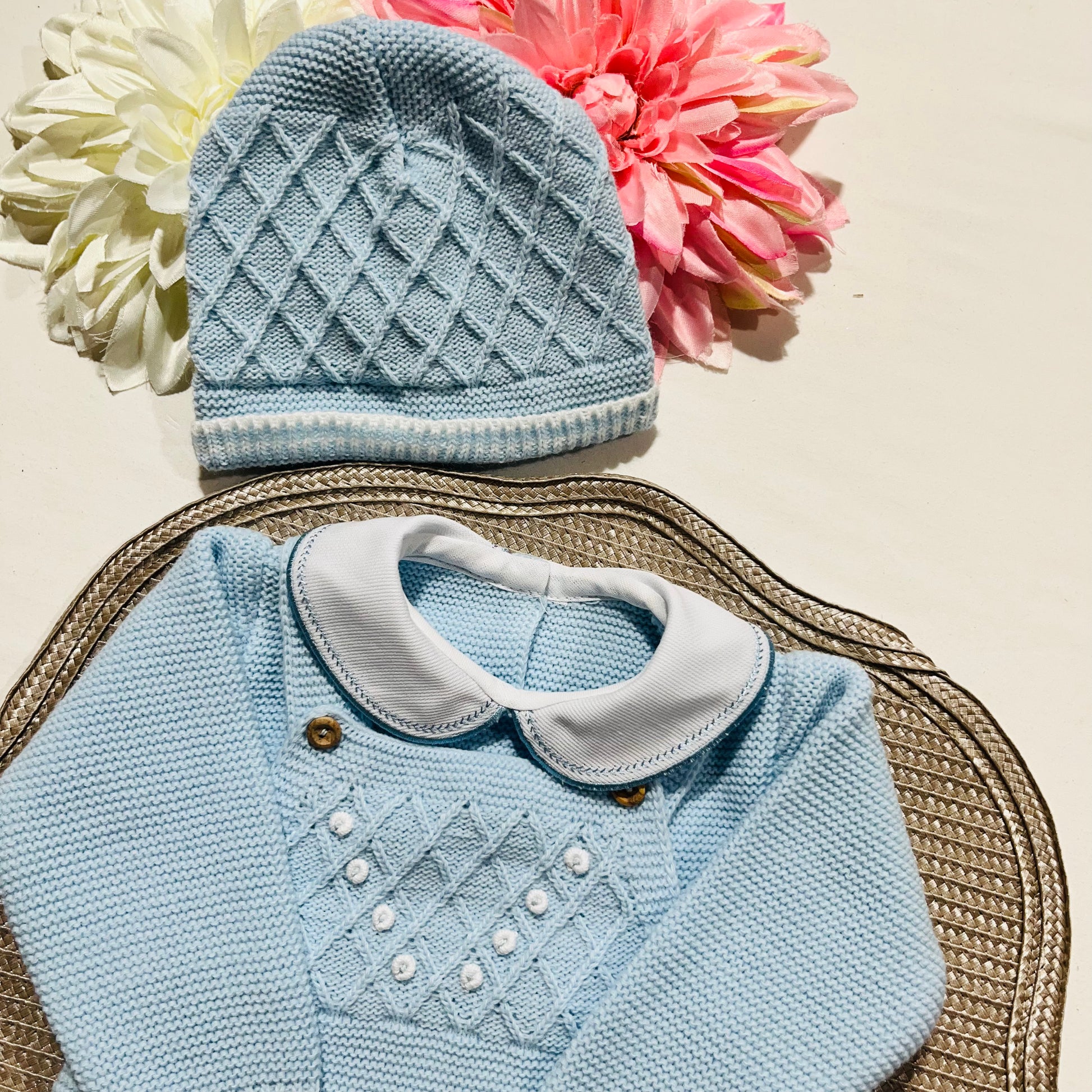 Conjunto saída de maternidade para bebé - Fofo, camisola e gorro em malha