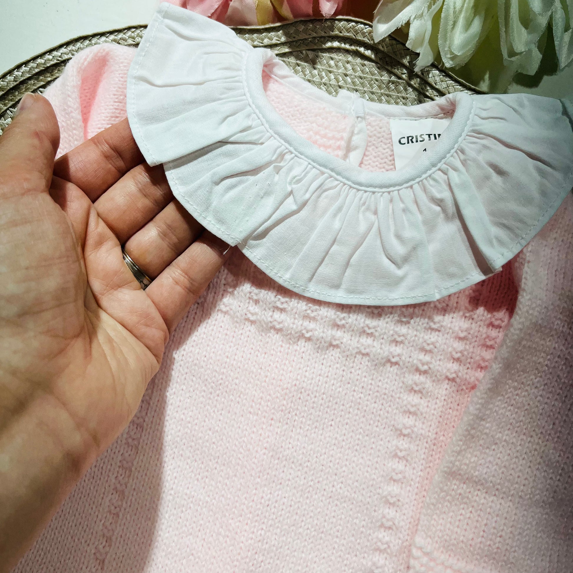 A malha é suave e quentinha. É uma linda e óptima sugestão para saída de maternidade.