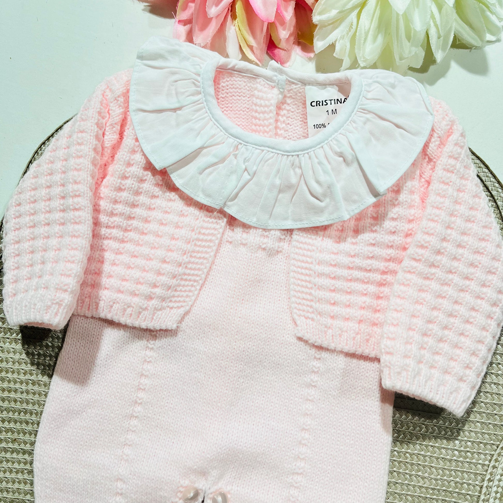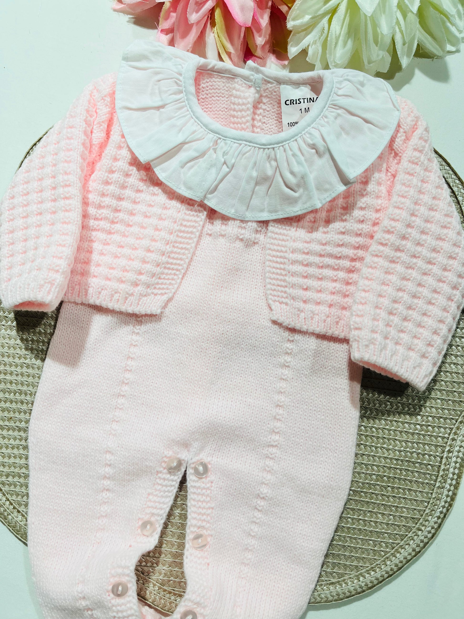 Conjunto Sofia em malha para bebé - 1,3 e 6M - Rosa