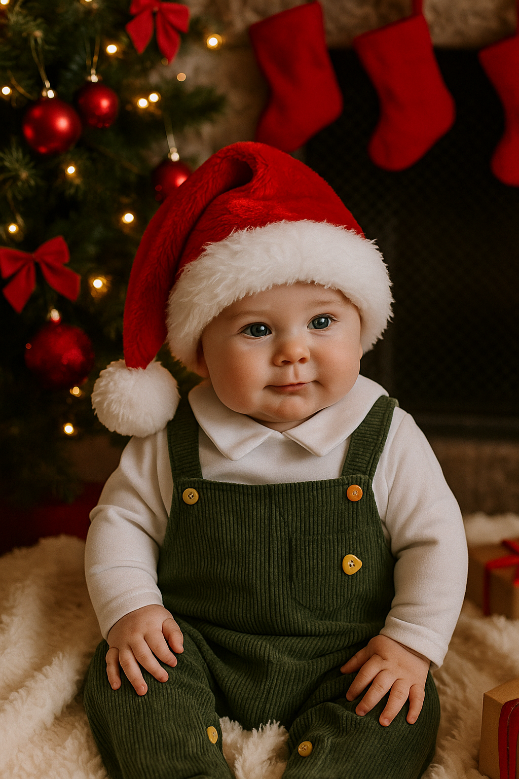 Composto por jardineira com bolso na frente em bombazina que abotoa entre as pernas facilitando assim a troca da fralda e camisa cardada.