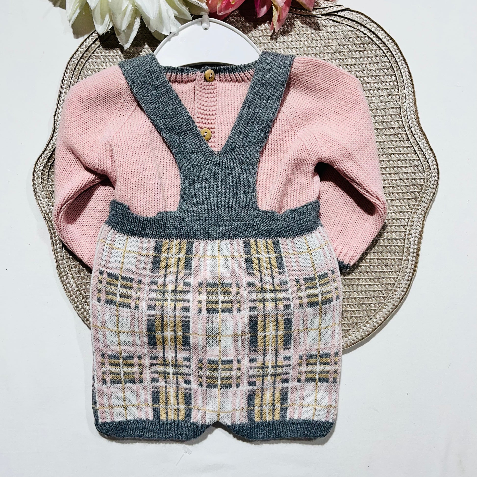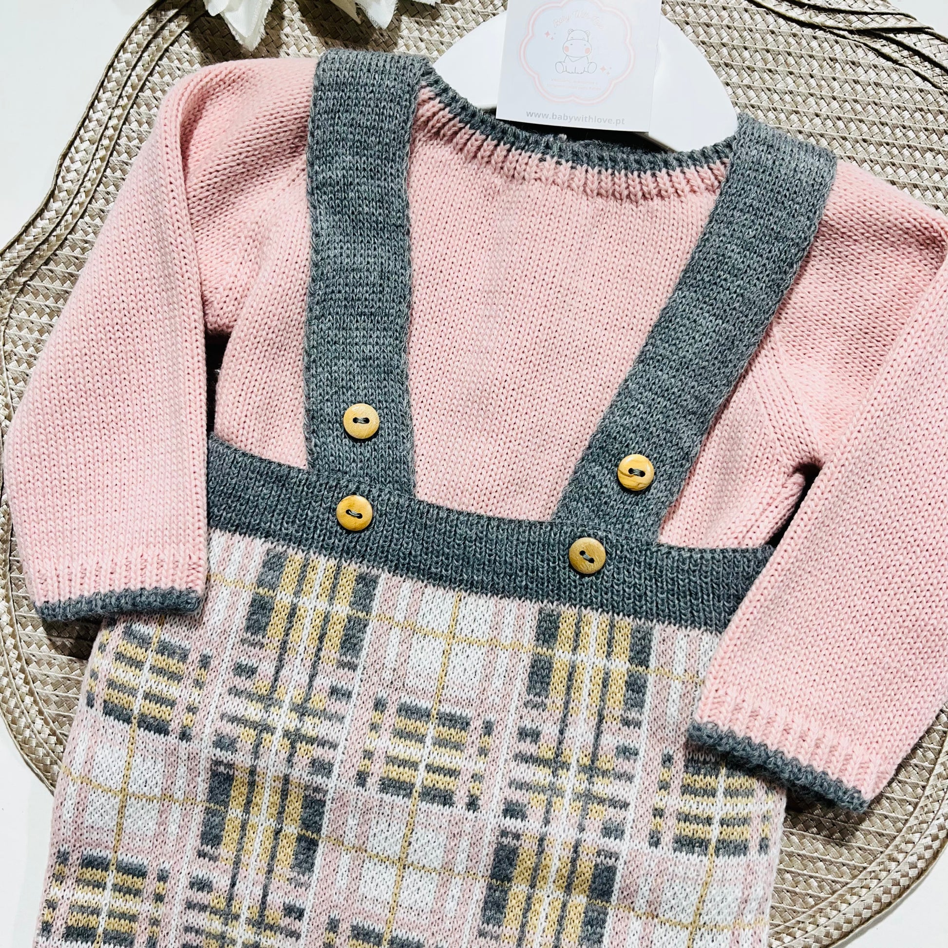 Conjunto xadrez para bebé em malha - 1/3M e 3/6M - Rosa velho