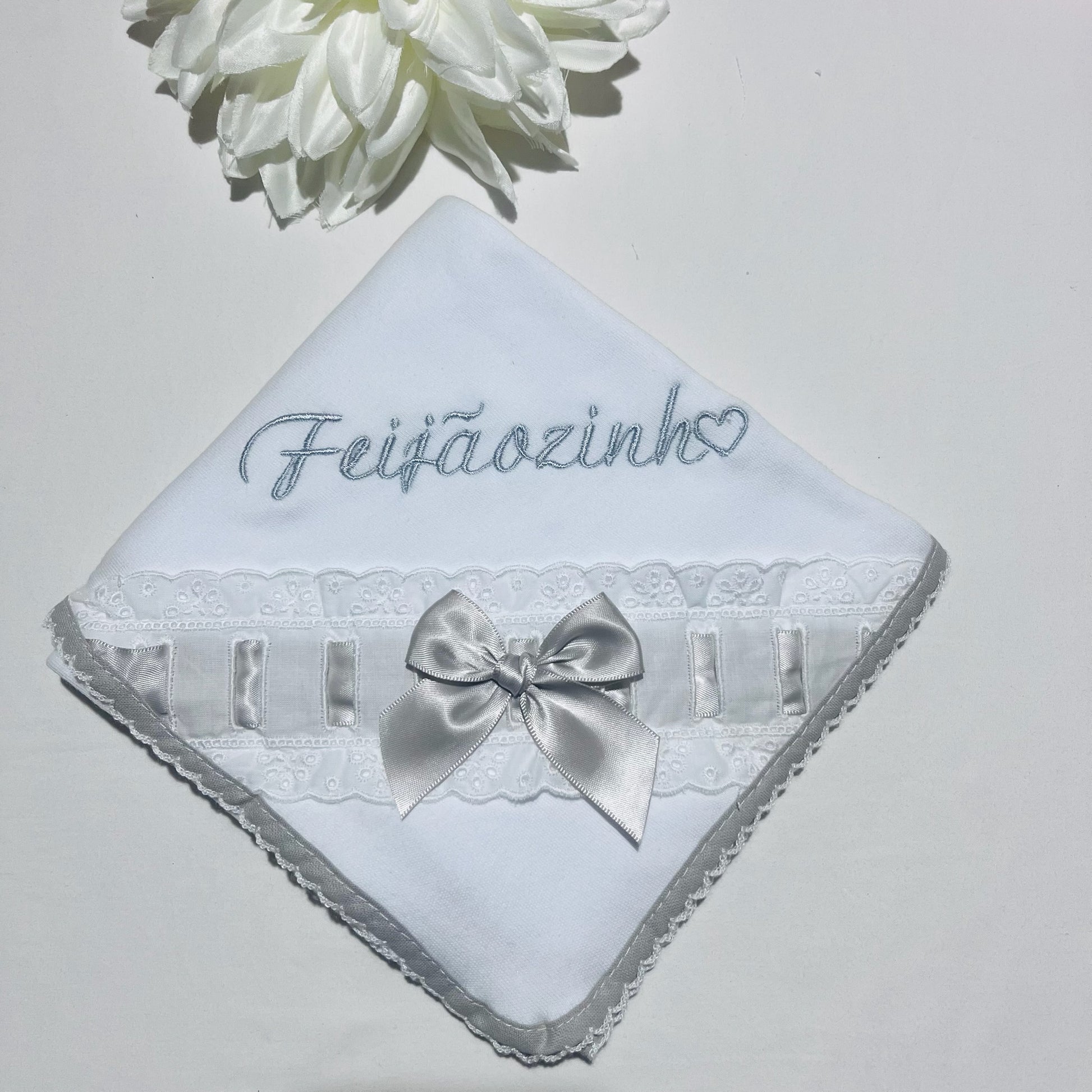 Fralda em algodão com bordado inglês e laço -.Várias cores - Com ou Sem personalização