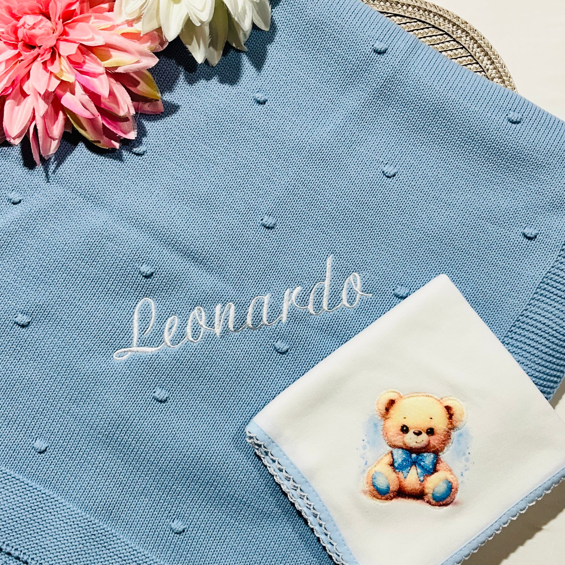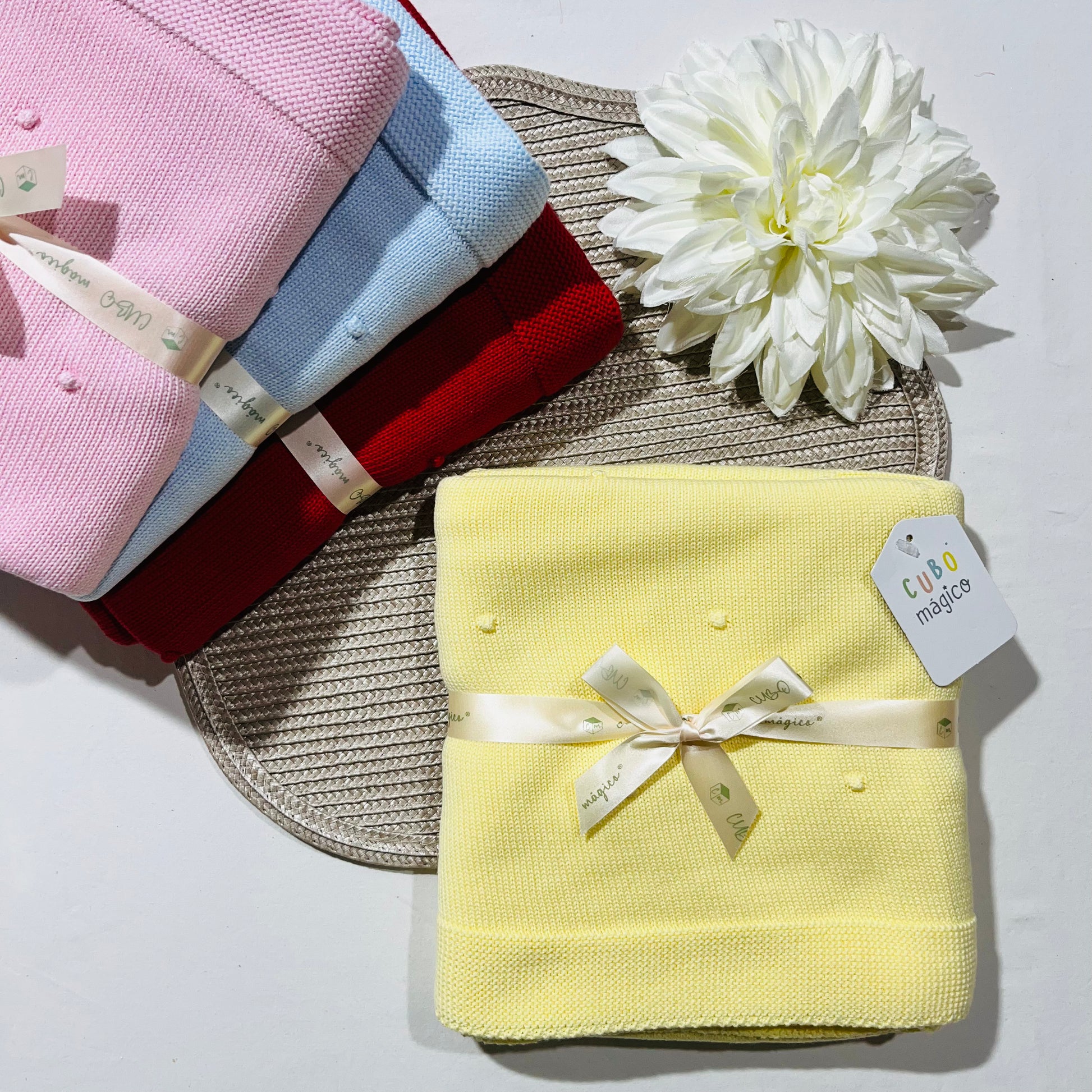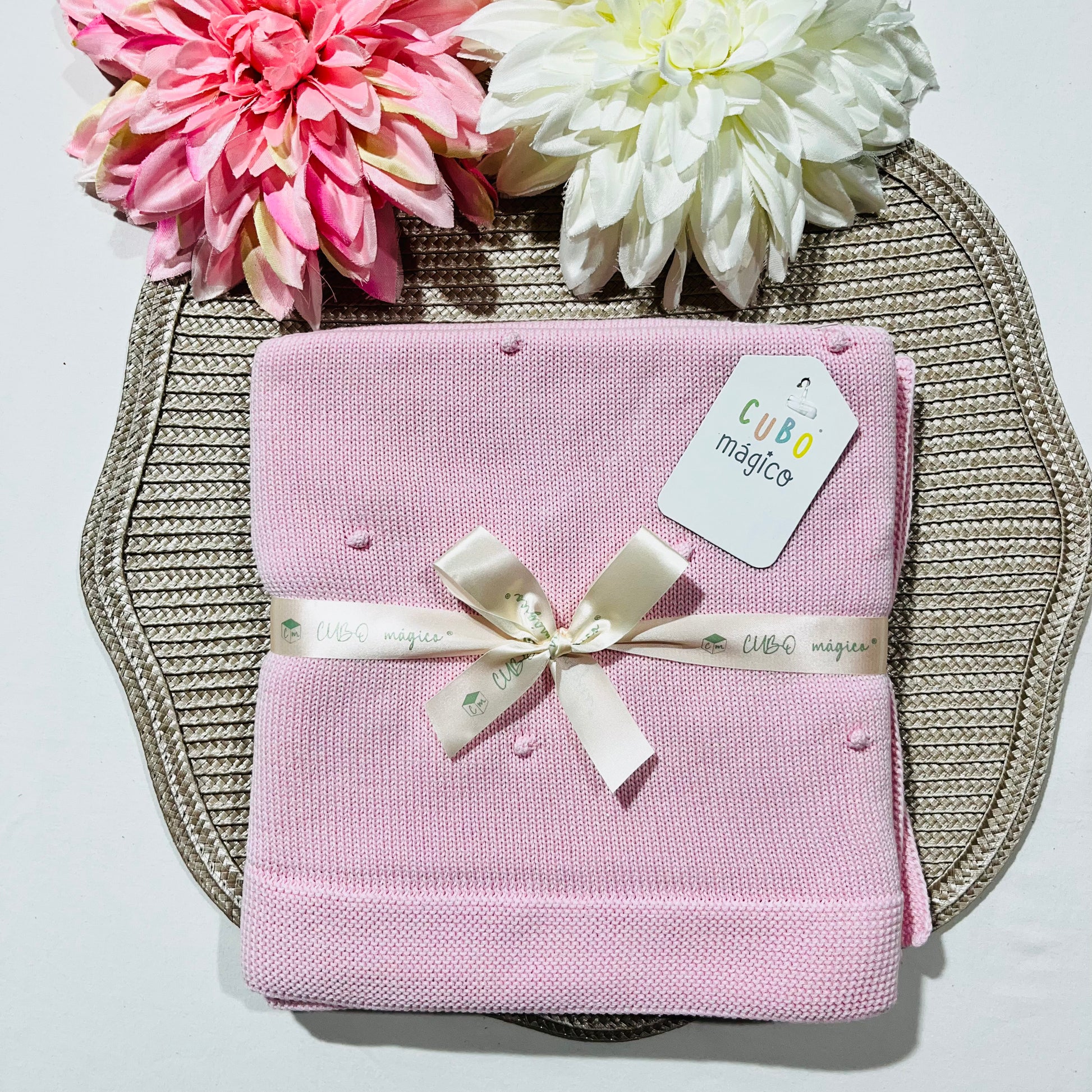 Manta de malha pompom bebé - 100% algodão - Com ou Sem personalização